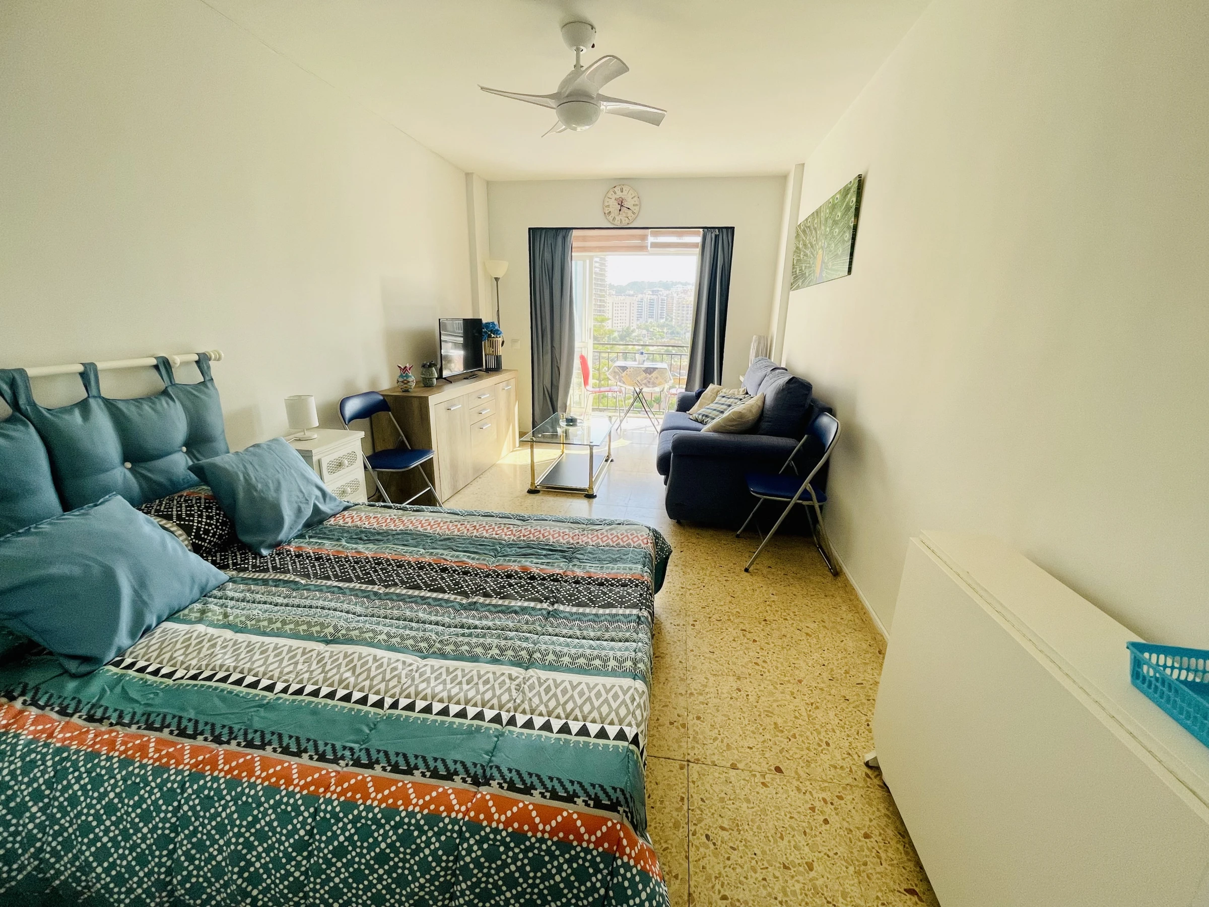 Agréable studio avec terrasse dans l’immeuble Hannibal, Cala de Finestrat, Benidorm. 6ᵉ étage, 25 m², capacité pour 2 personnes, avec un lit double. Cuisine ouverte équipée d’un réfrigérateur, congélateur, lave-linge, micro-ondes, bouilloire, presse-agrumes, cafetière, grille-pain, vaisselle et ustensiles de cuisine. Salle de bains avec douche. Climatisation et chauffage central pour un séjour confortable toute l’année. Place de parking communautaire dans le même immeuble incluse dans le prix. Animaux acceptés jusqu’à 20 kg 🐶. Résidence avec jardin, aire de jeux et grande piscine commune + pour enfants 🏊♀️. À seulement 350 m de la plage de Cala de Finestrat, 500 m du supermarché et 100 m de l’arrêt de bus 🚌. Idéal pour des vacances au bord de la mer !