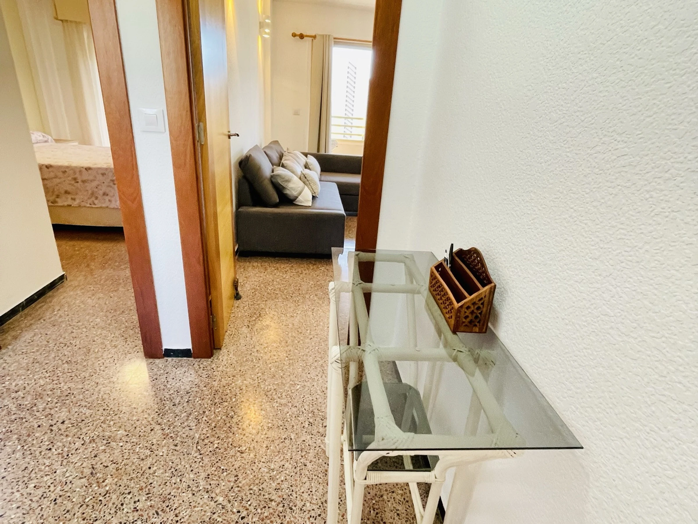 🏠 Appartement moderne avec terrasse dans le bâtiment Cardenal 4, Cala de Finestrat, Benidorm. Situé au 5ème étage, il offre 70 m² et peut accueillir jusqu’à 6 personnes. Comprend 🛏 2 chambres (une avec un lit double et l’autre avec deux lits simples) ainsi qu’un 🛋 canapé-lit double dans le salon. Salle de bain avec 🚿 douche.