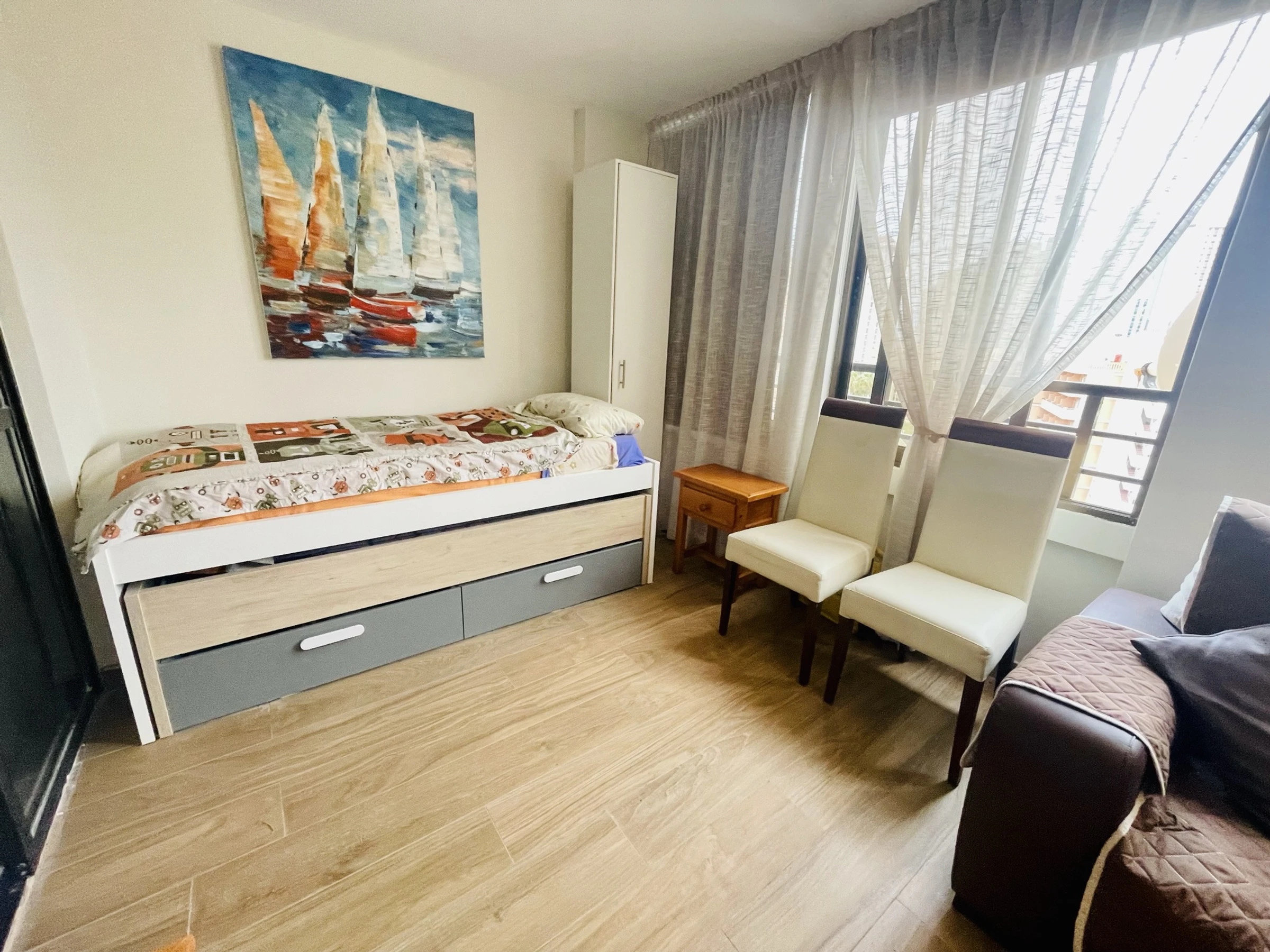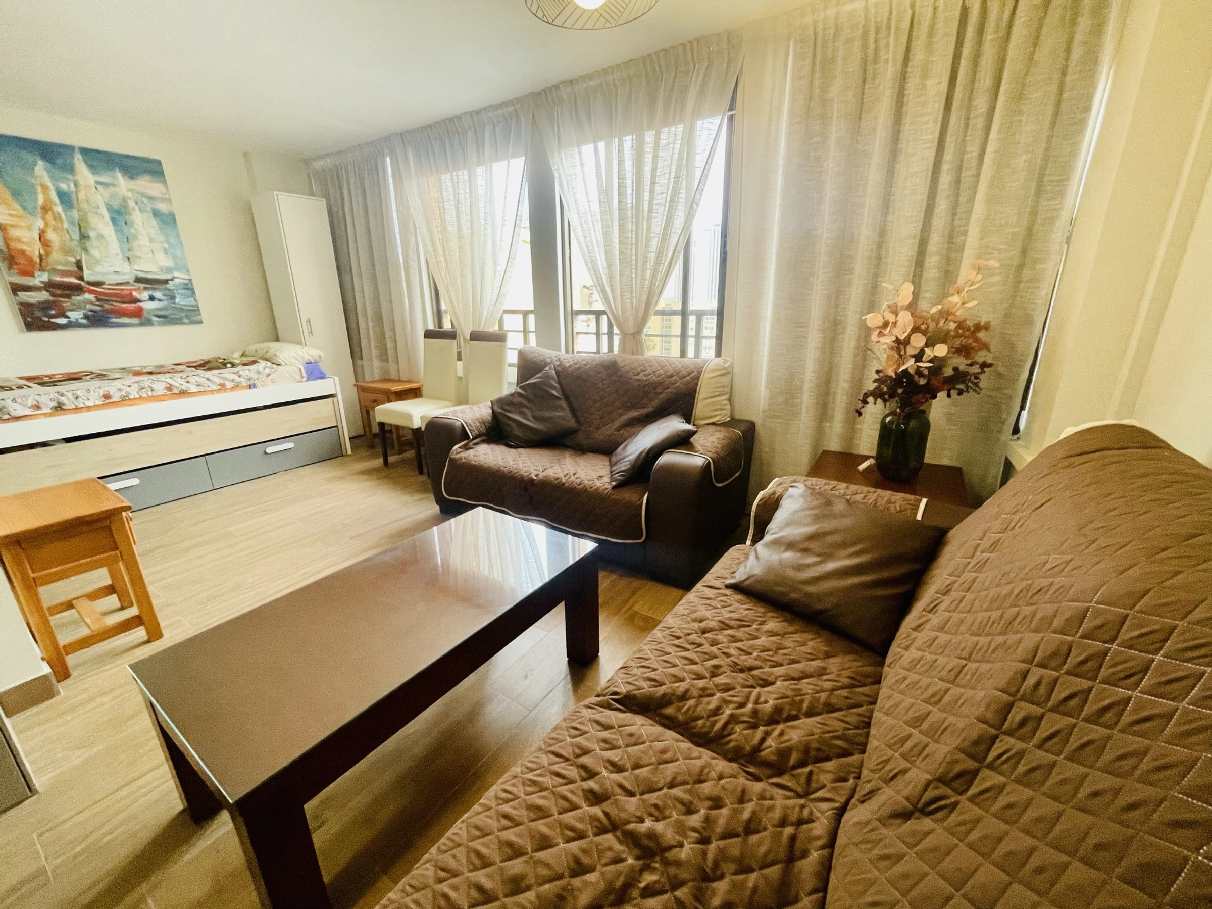 Cet appartement à Cala de Finestrat dispose d'une chambre et peut accueillir jusqu'à 4 personnes. Il est situé au 7ème étage et a une superficie de 55 m², c'est un espace confortable et entièrement équipé pour un séjour agréable. Il est localisé à 800 mètres de la plage de Cala de Finestrat et à 1 km de la plage de Poniente.