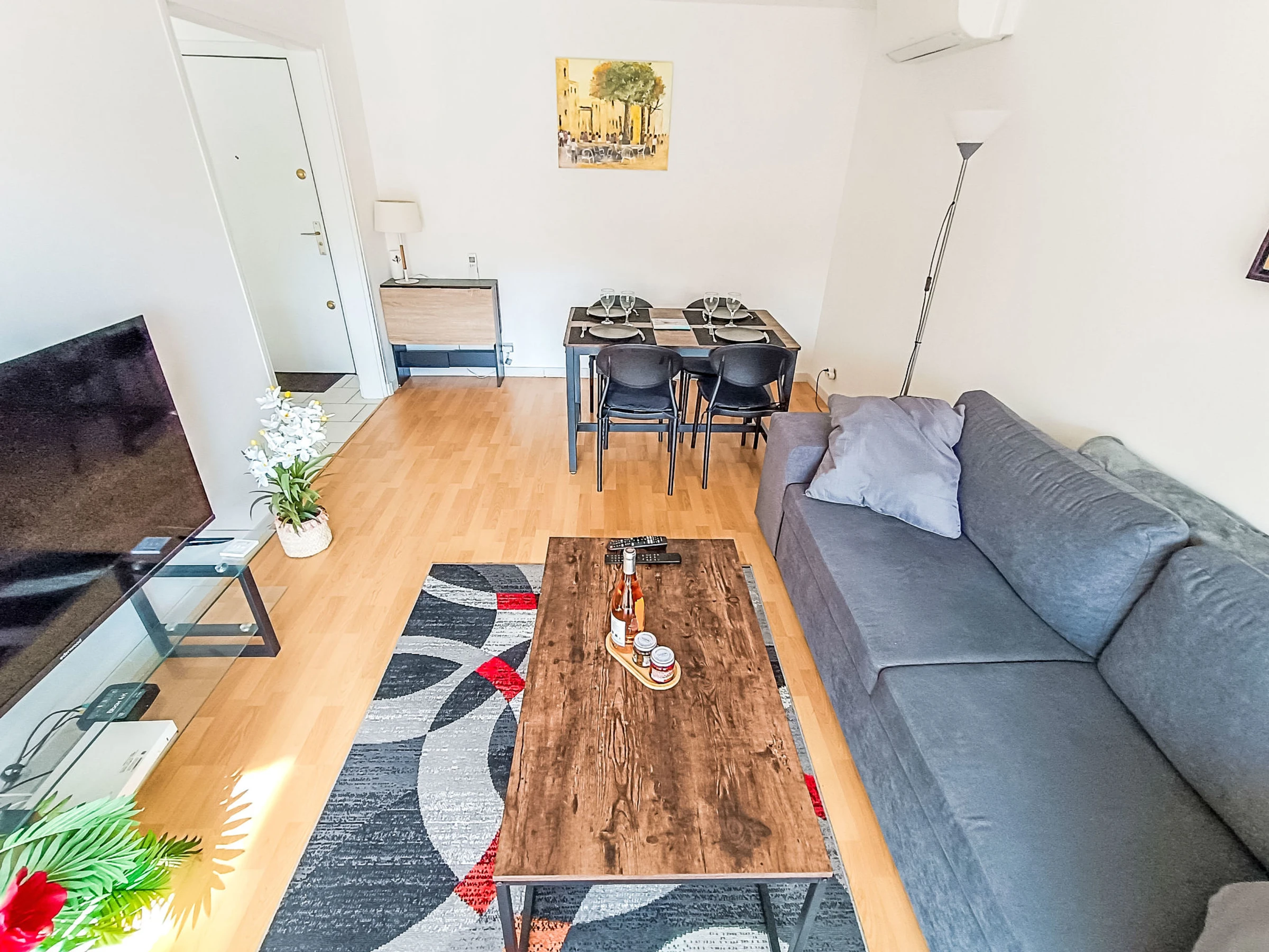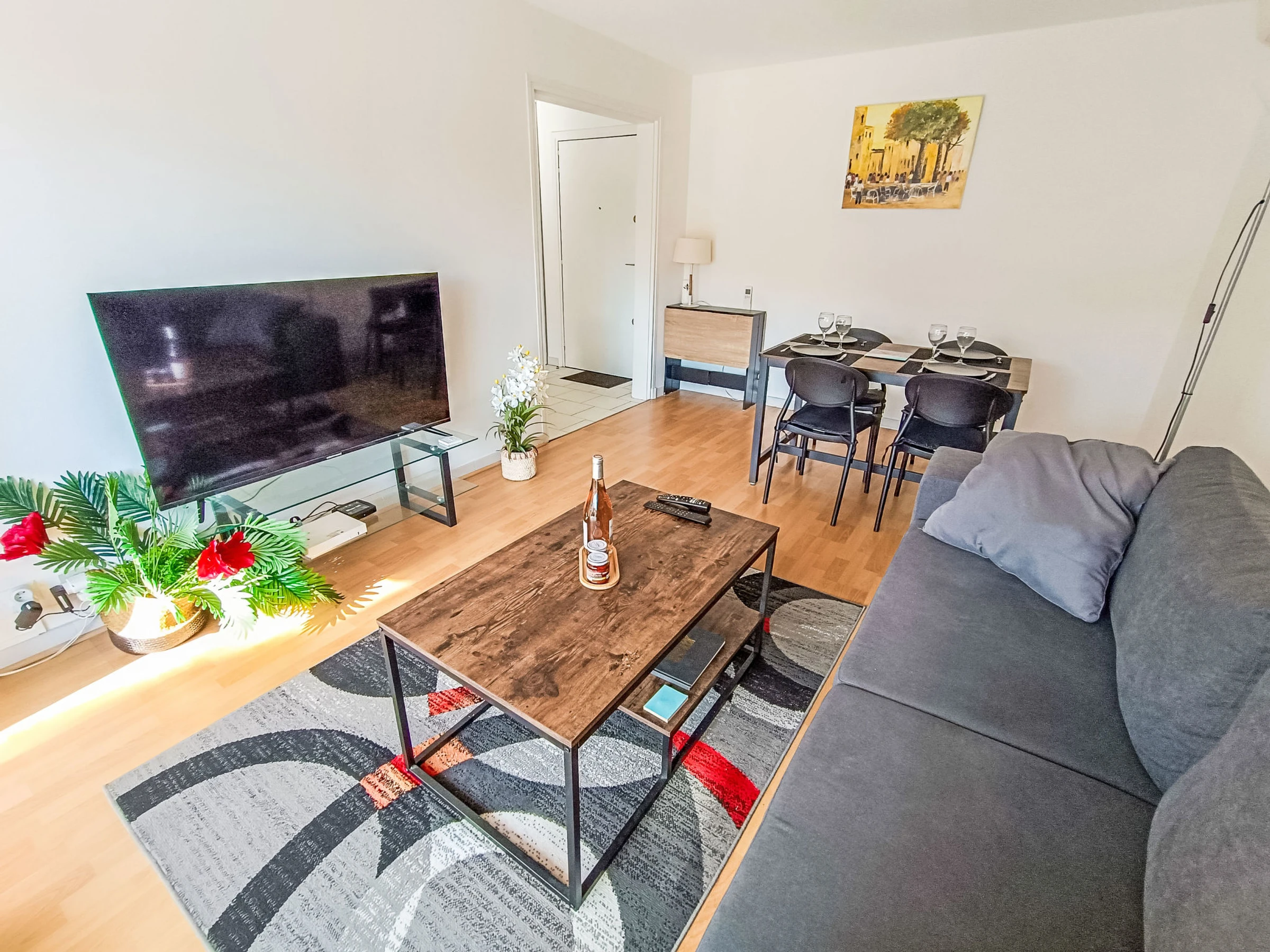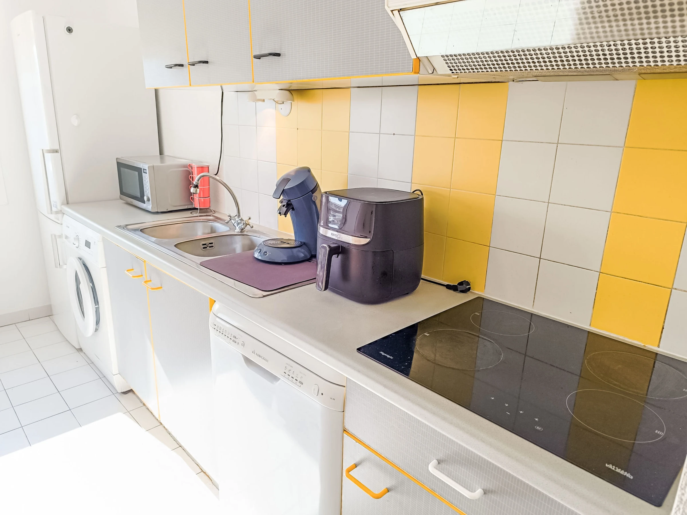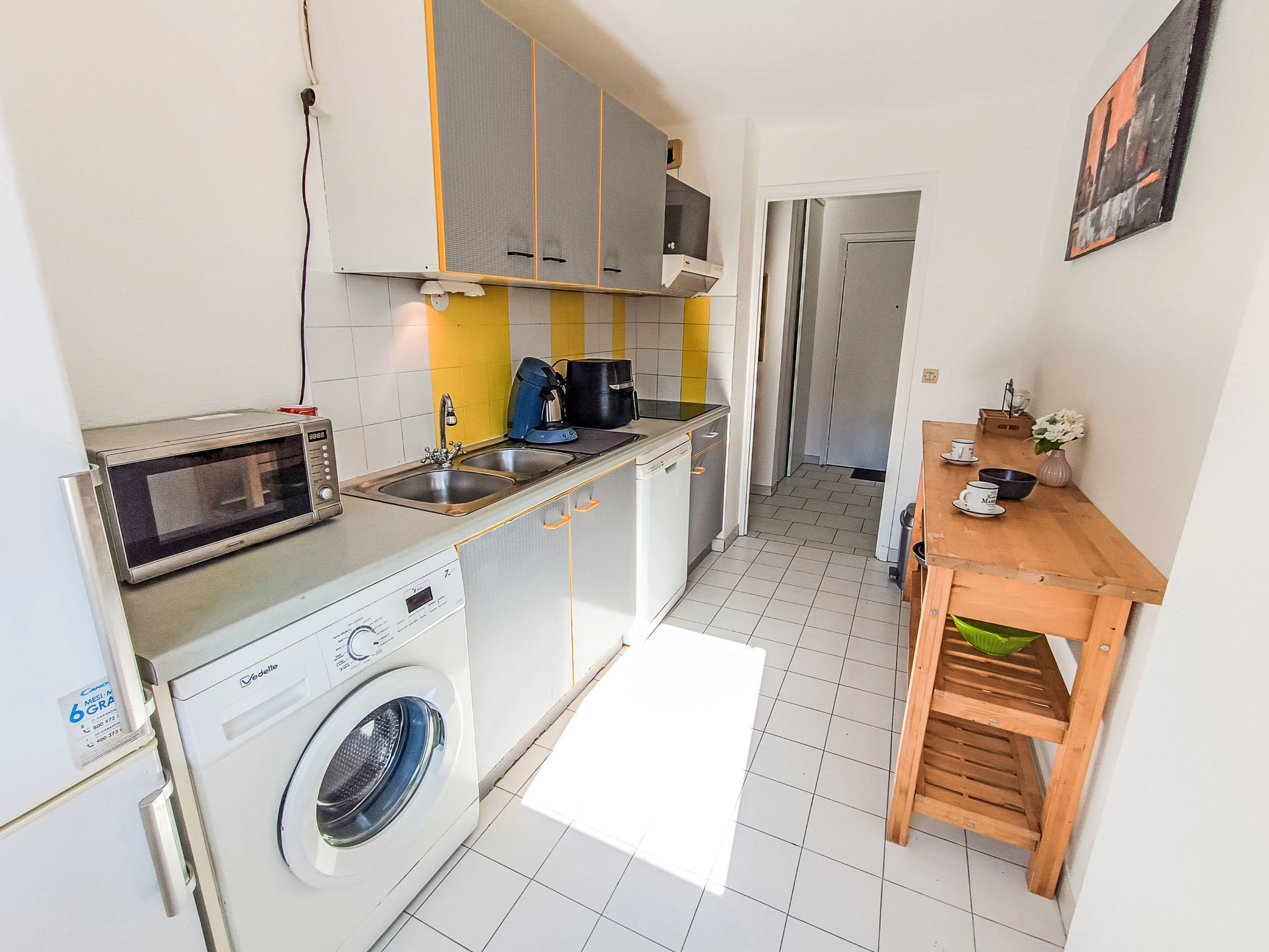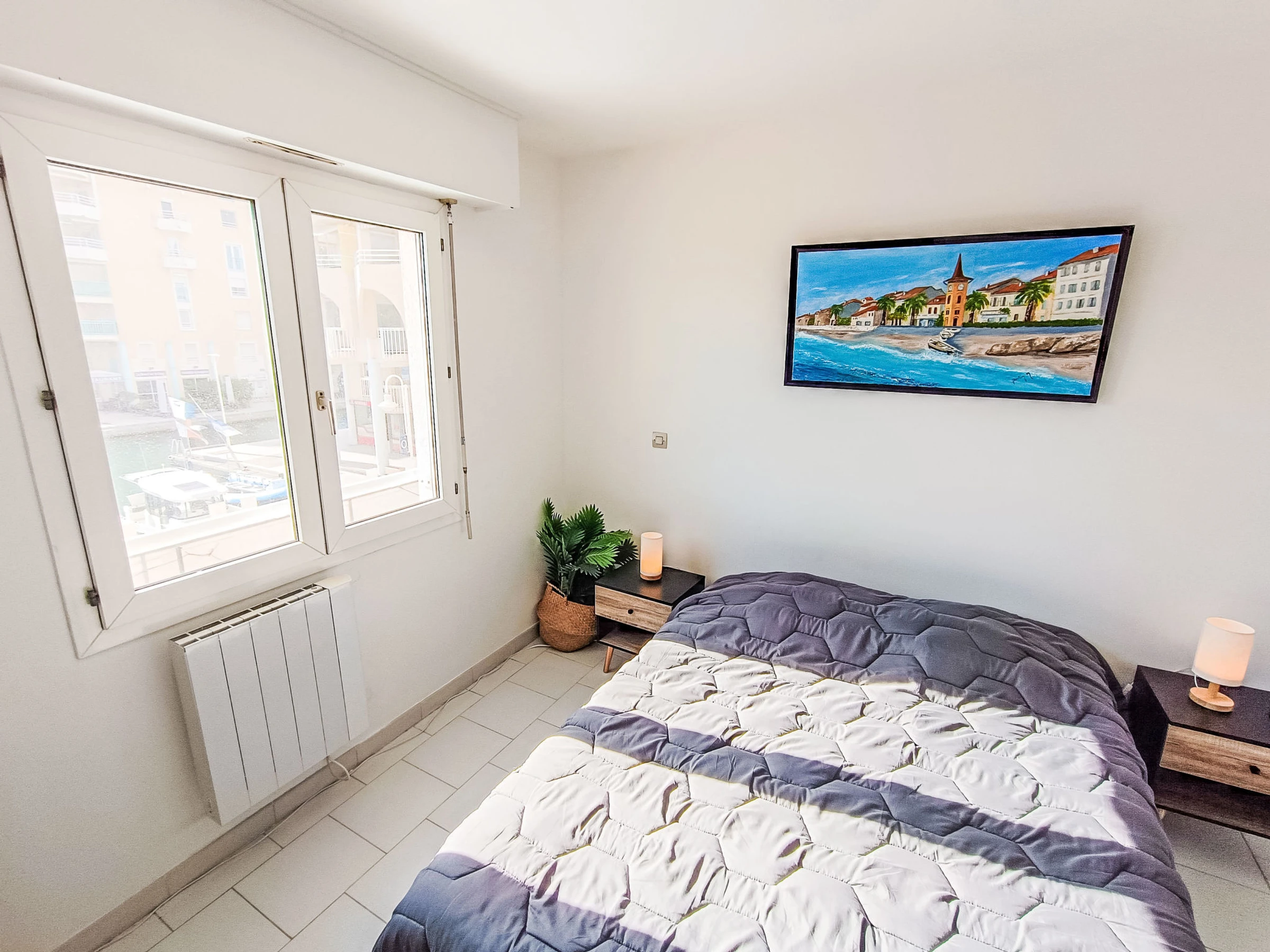 Apt 2 pièces 44 m2 au 1er étage. Séjour/salle à manger avec 1 divan-lit (140 cm, longueur 190 cm), TV (écran plat), chauffage électrique et air-conditionné. Sortie sur la terrasse, orientée ouest. 1 chambre avec 1 grand-lit (1 x 140 cm, longueur 200 cm), TV (écran plat). (lave-vaisselle, 4 plaques vitrocéramiques, micro-ondes, cafetière électrique, Capsules pour machine à café (Senseo) (NON INCLUSES)). Sortie sur la terrasse. Salle de bains, WC séparé. Chauffage électrique. Terrasse 6 m2. Meubles de terrasse. Vue sur le port. A disposition: lave-linge, sèche-cheveux. Internet (Connexion WIFI, gratuit). Garage No 10, hauteur 190 cm, largeur 235 cm. Veuillez noter: logement non-fumeur. Détecteur de fumée. Annonce d'un particulier (art 155, IV du CGI).