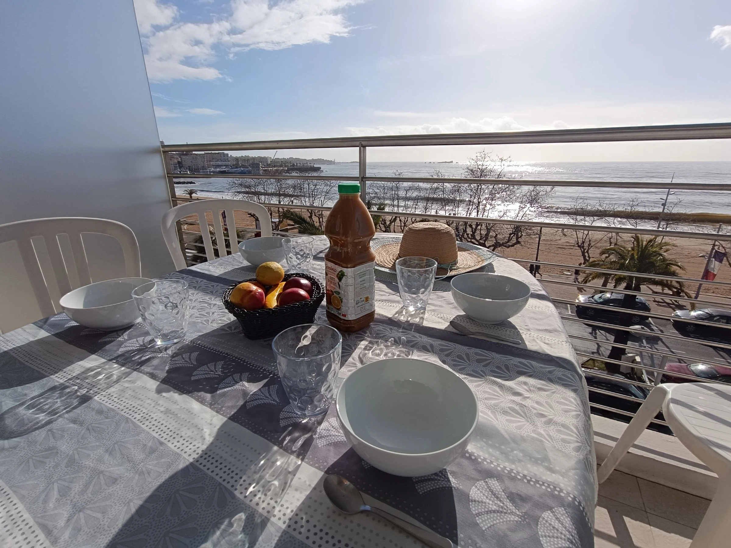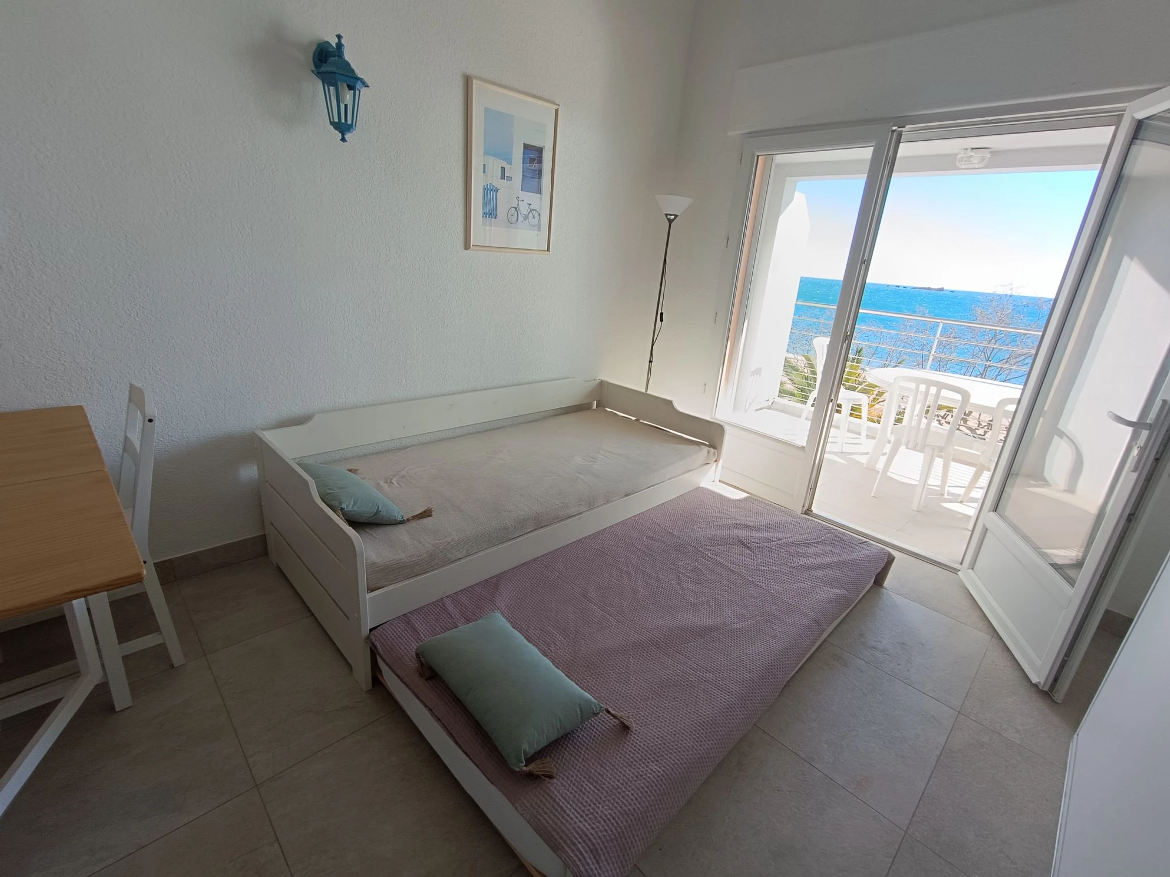 "Le domino", apt 2 pièces 40 m2 sur 2 niveaux au 3ème étage. Rénové en 2026: séjour/salle à manger avec 1 lit gigogne (2 pers. 2 x 90 cm, longueur 200 cm), TV et air-conditionné. Sortie sur la terrasse. Cuisine ouverte (four, lave-vaisselle, 3 plaques à induction, bouilloire électrique, micro-ondes, cafetière électrique). À l'étage supérieur: galerie mansardée avec 1 lit double (160 cm, longueur 200 cm), air-conditionné. Douche, WC séparé. Chauffage électrique. Terrasse 7 m2, situation sud et situation ouest. Meubles de terrasse. Vue panoramique sur la mer. A disposition: lave-linge, fer à repasser. Internet (Connexion WIFI, gratuit). Garage (en sus) près de la maison. Veuillez noter: détecteur de fumée. Annonce d'un particulier (art 155, IV du CGI).