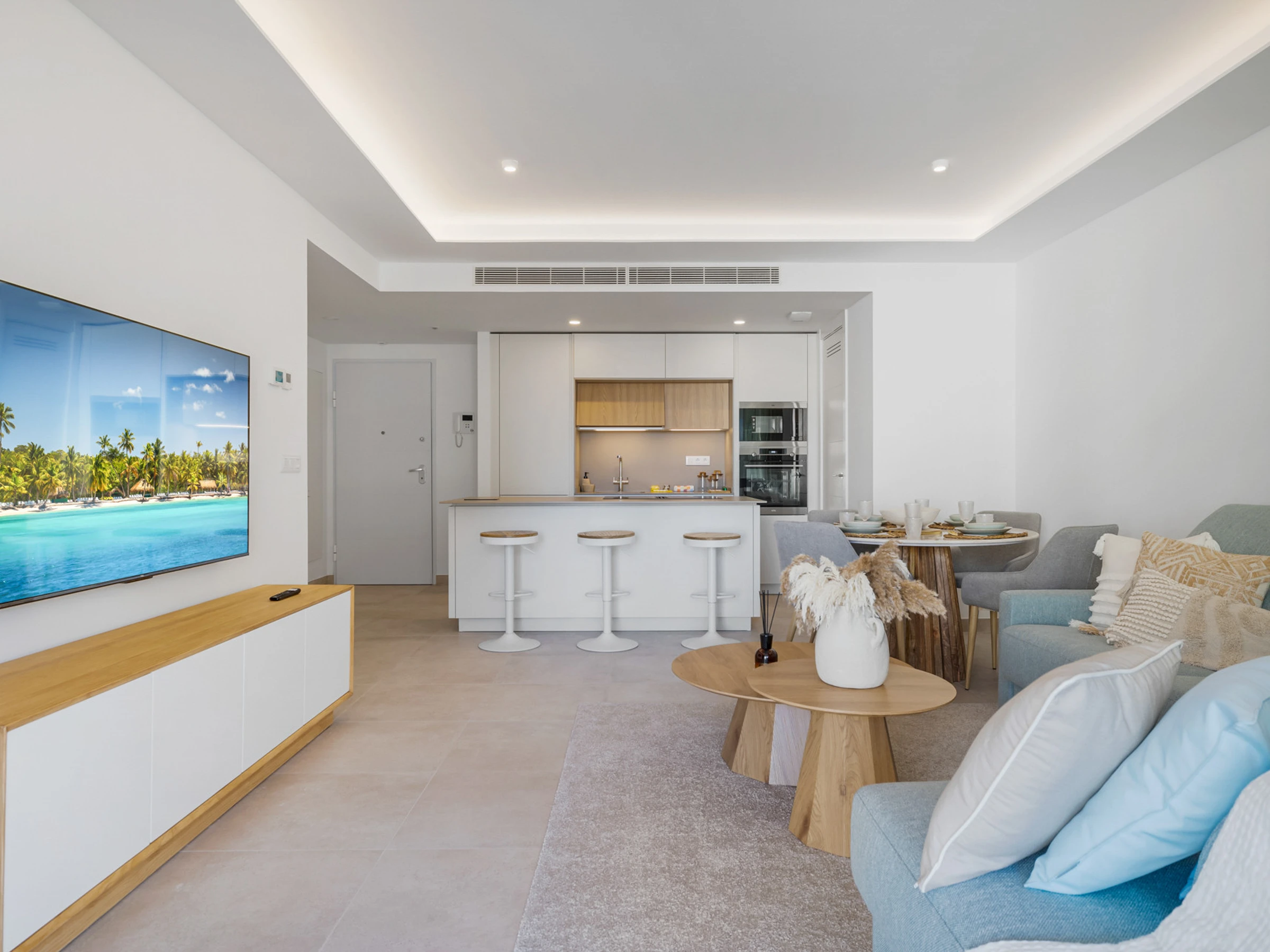 Logement de 132 m² accueillant et de construction récente, situé en front de plage, avec vue sur la mer et la montagne.