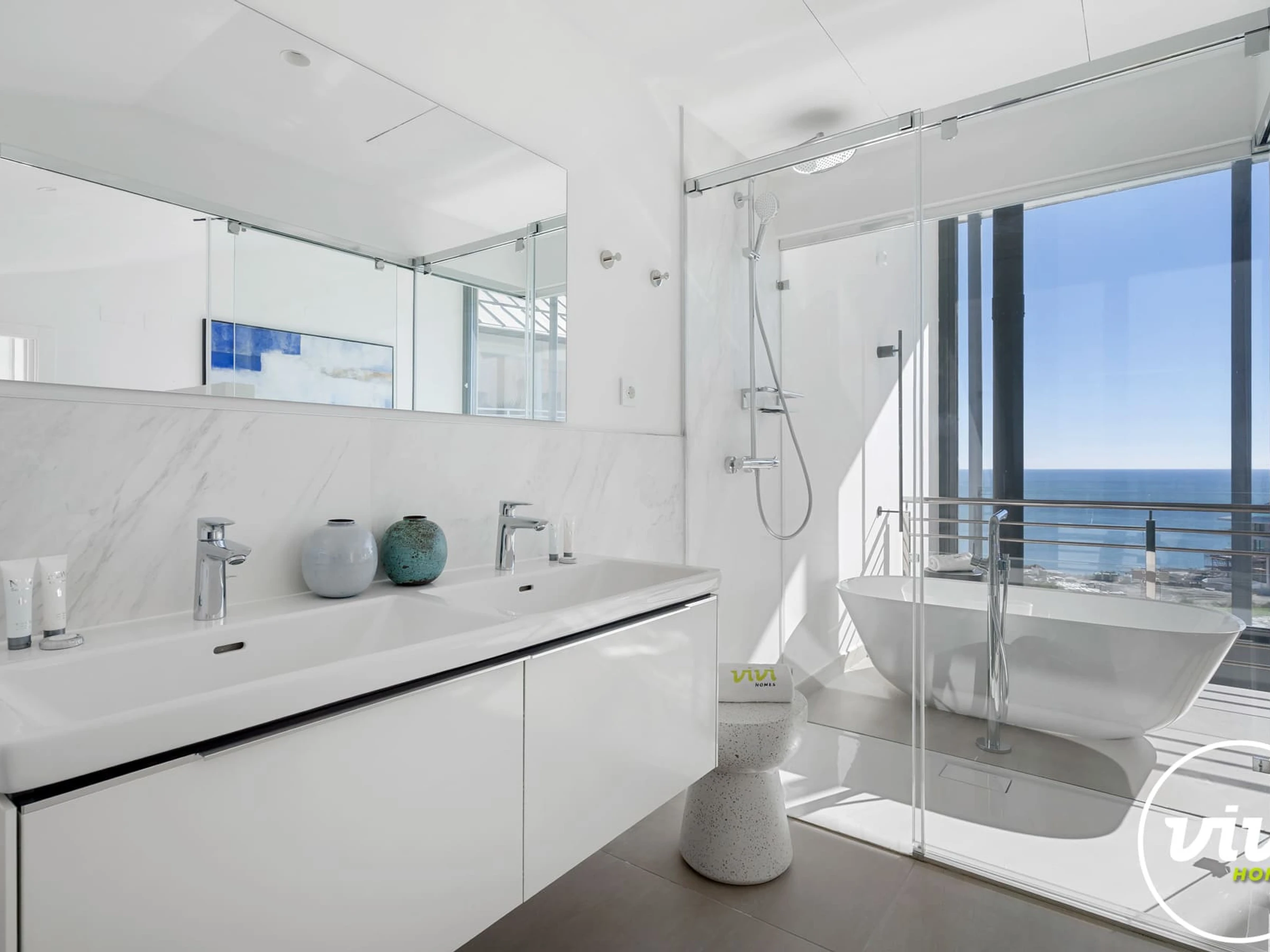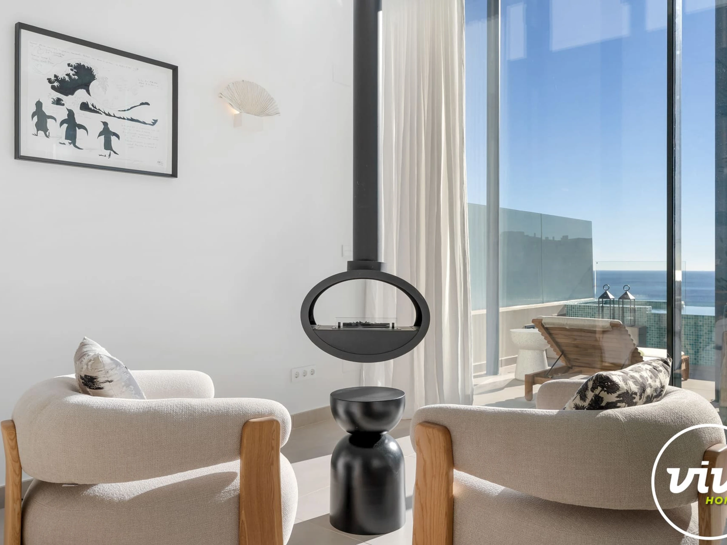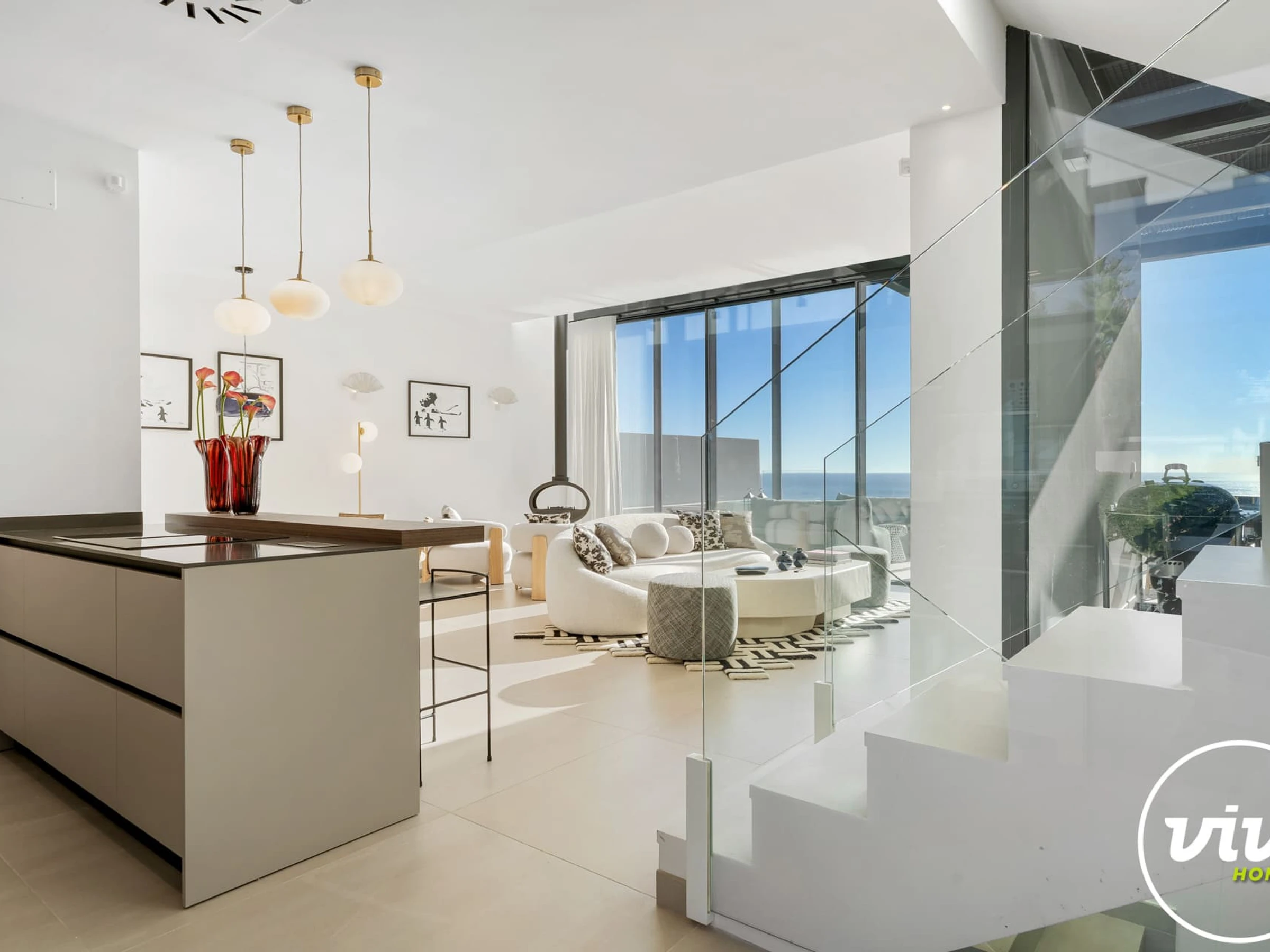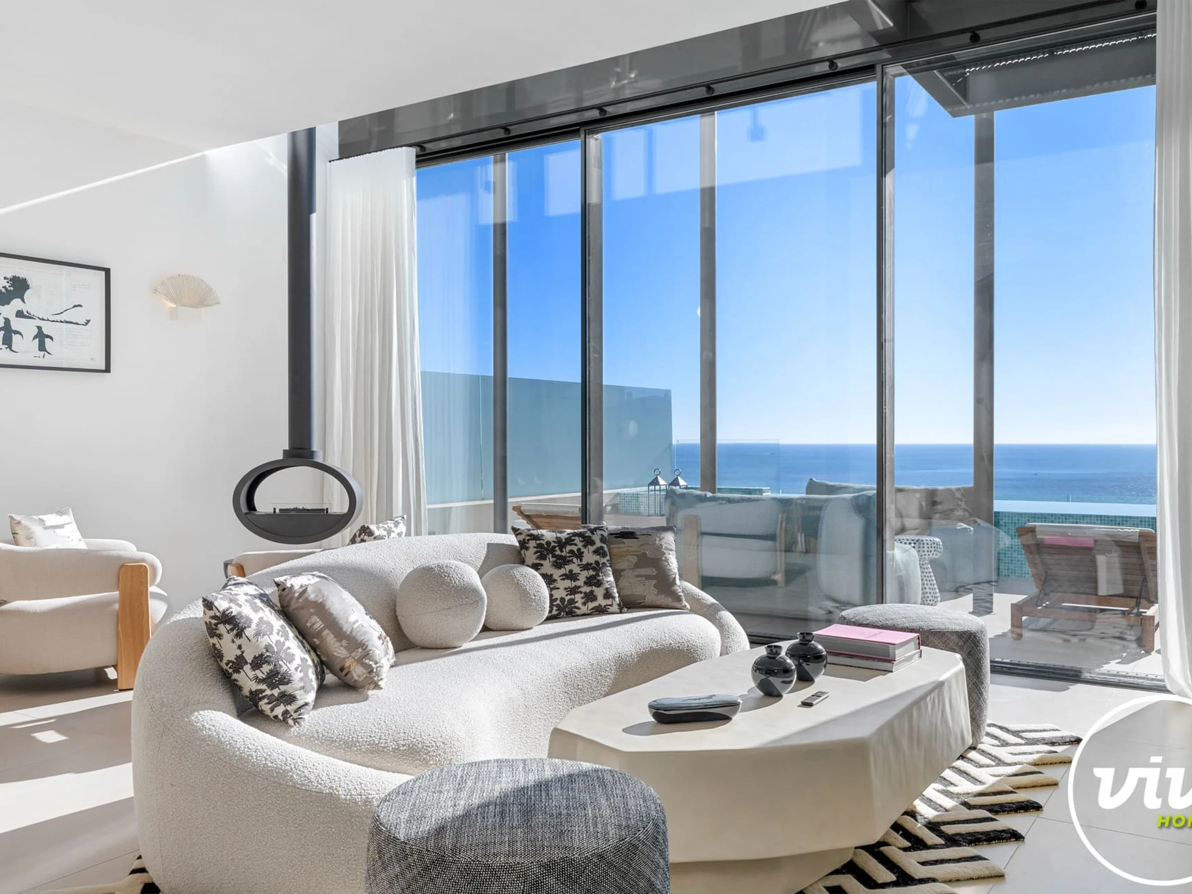 Logement de 300 m² meublé avec goût et de construction récente, avec vue sur la mer et la piscine.