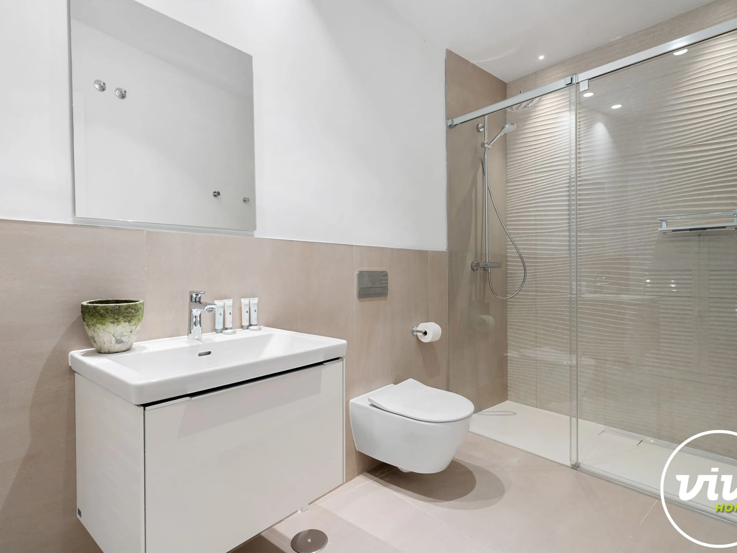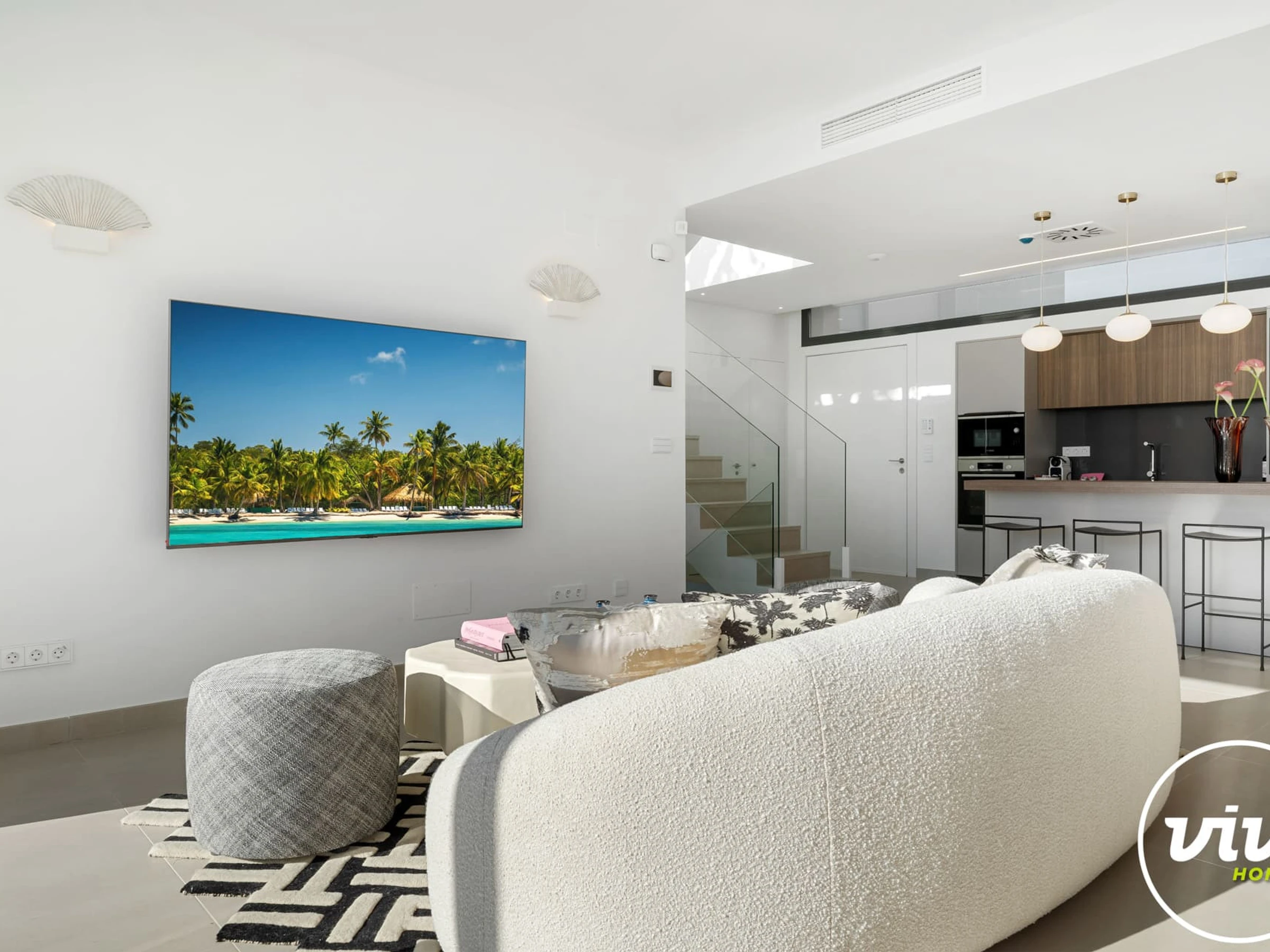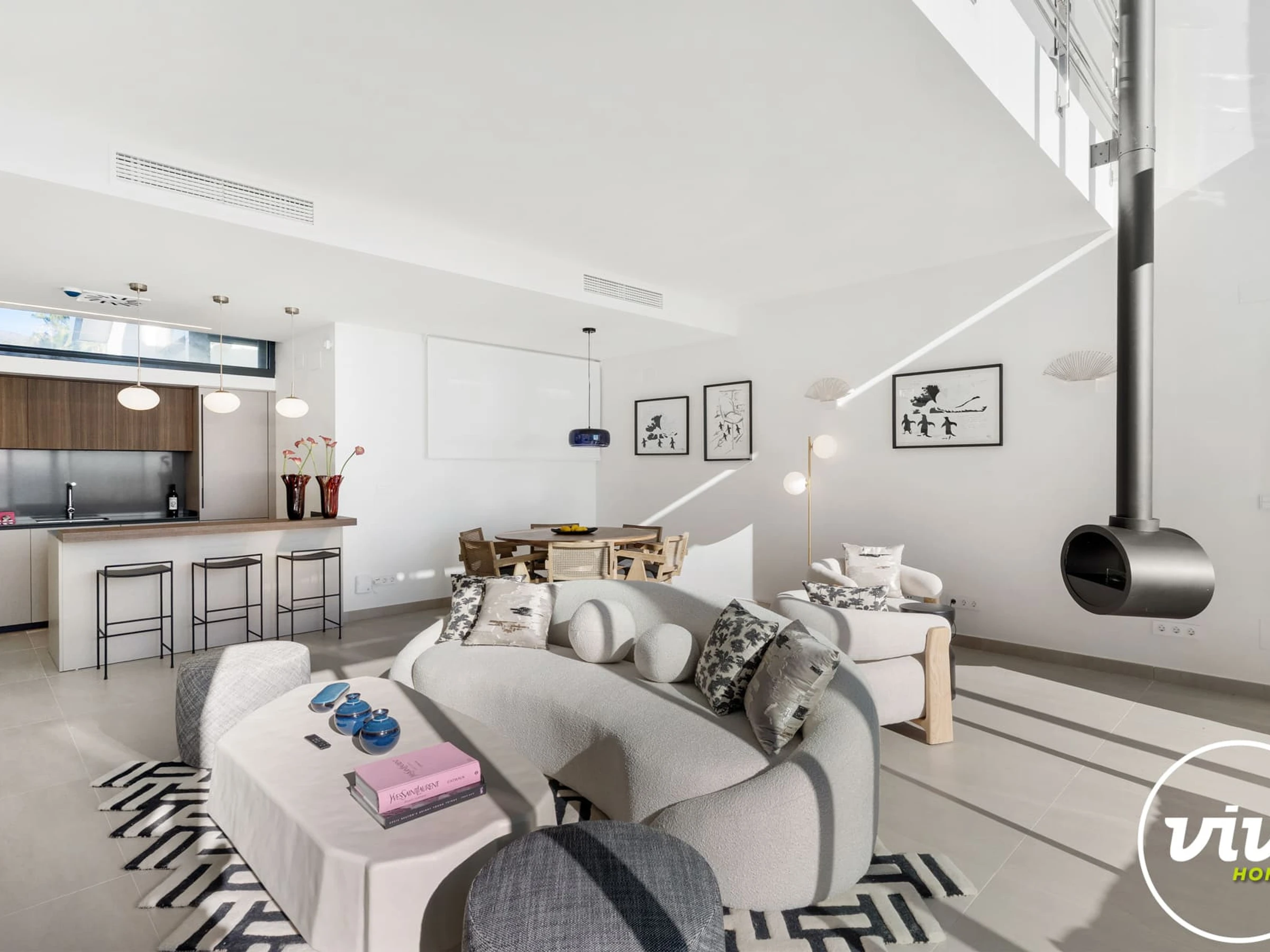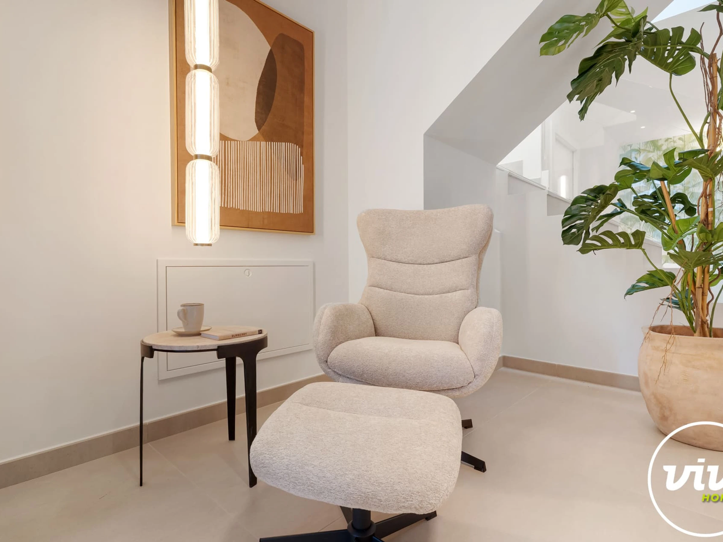 Logement de 300 m² meublé avec goût et de construction récente, avec vue sur la mer et la piscine.