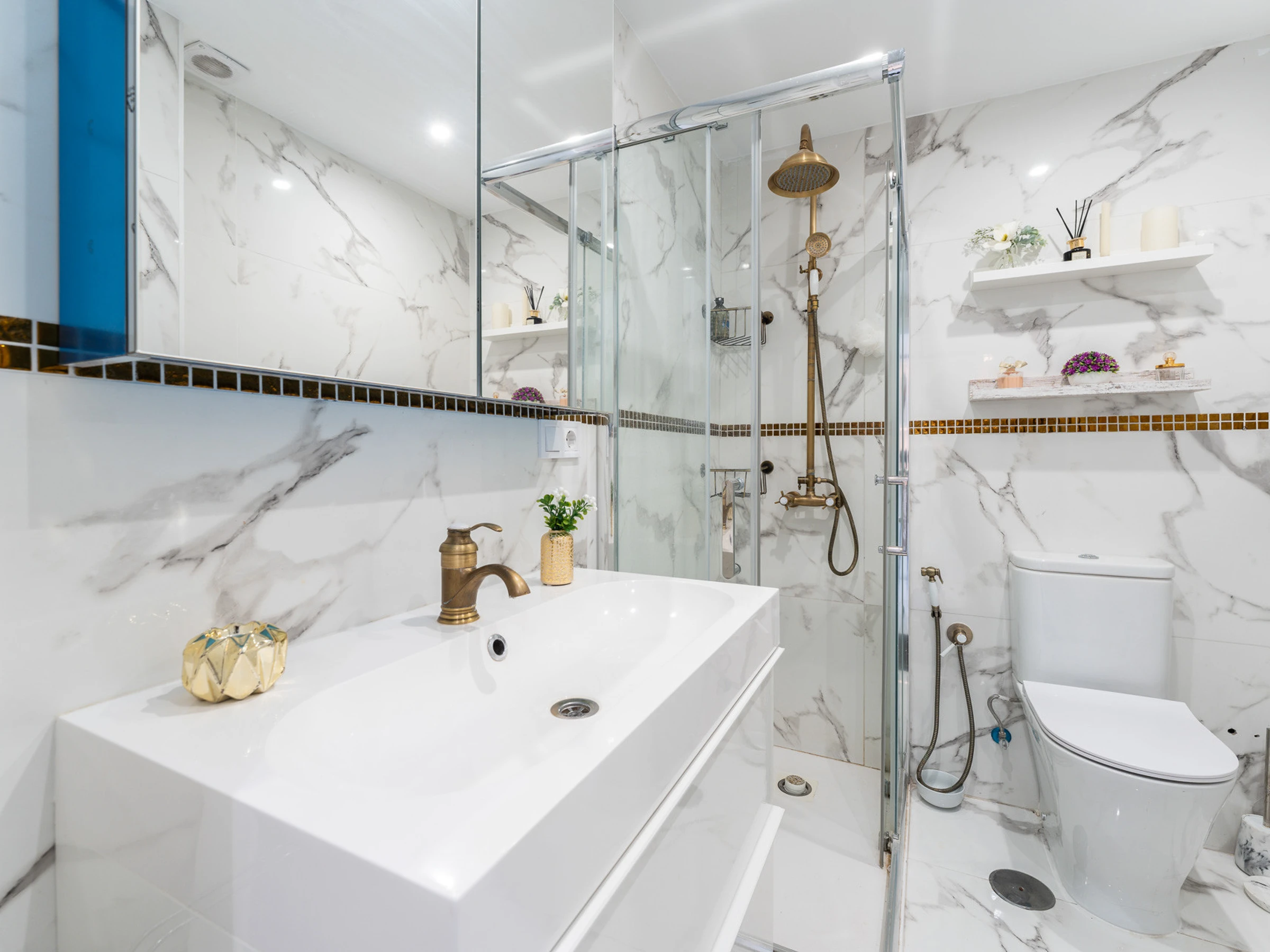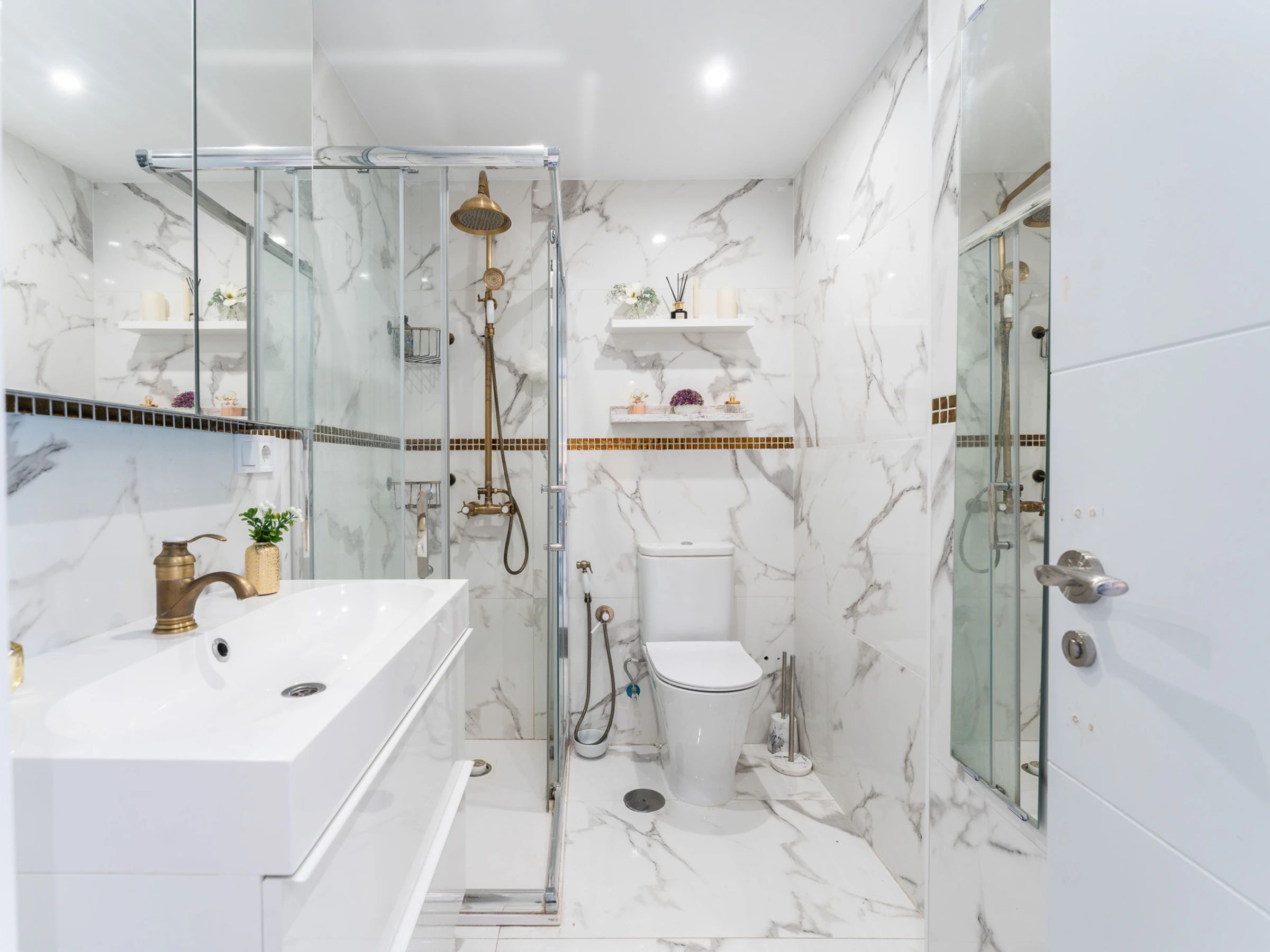 Et une salle de bain luxueuse avec douche, moderne et confortable.