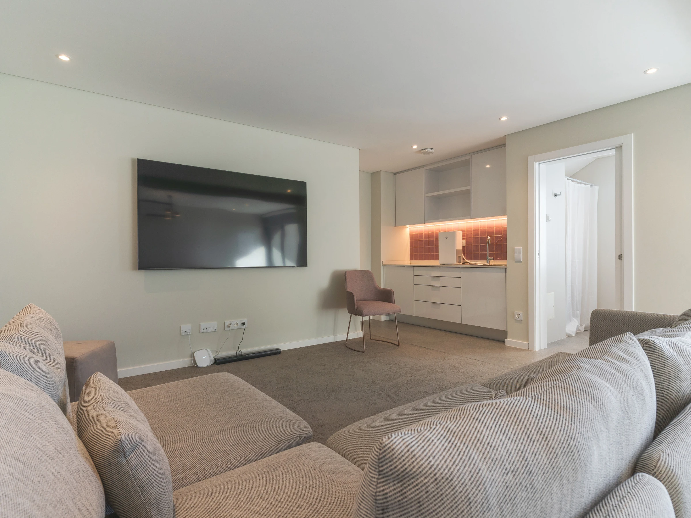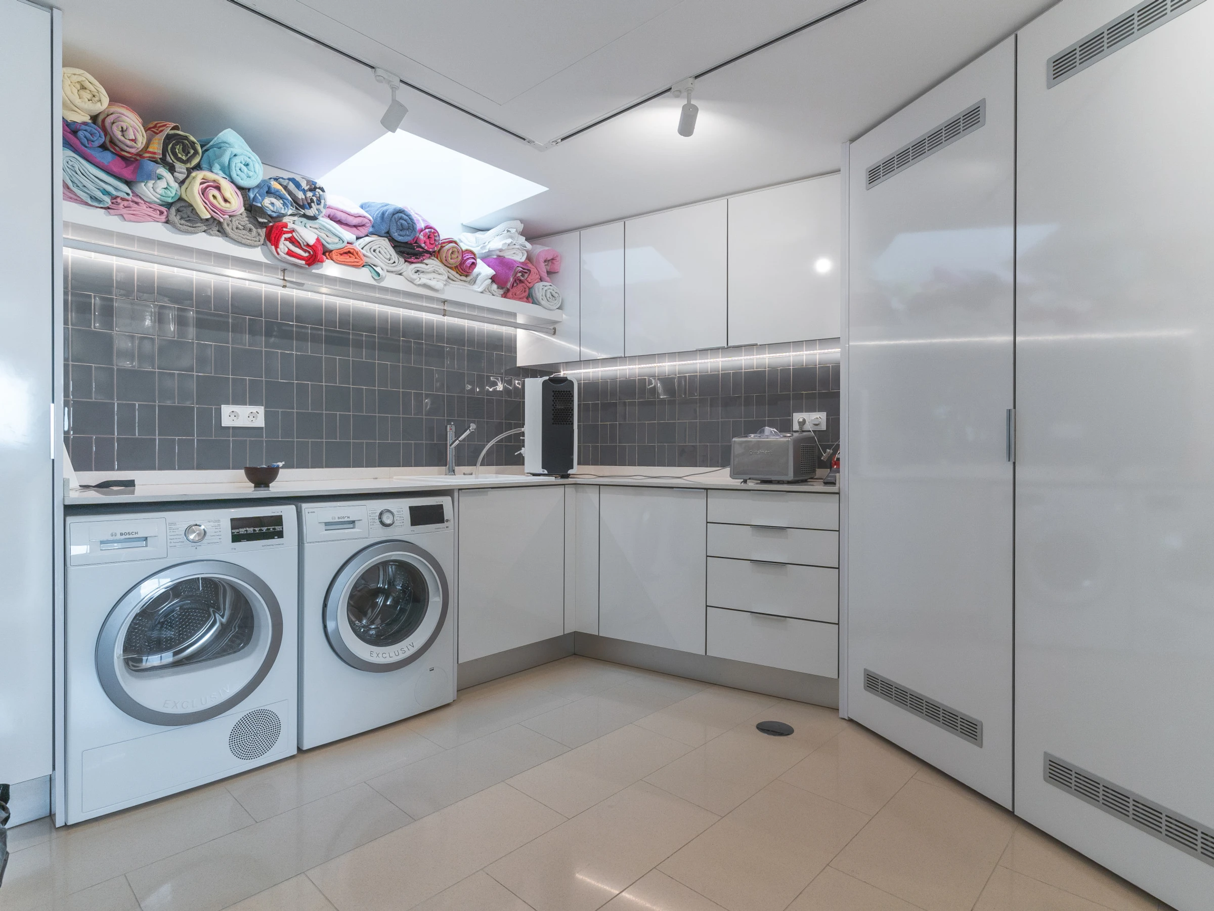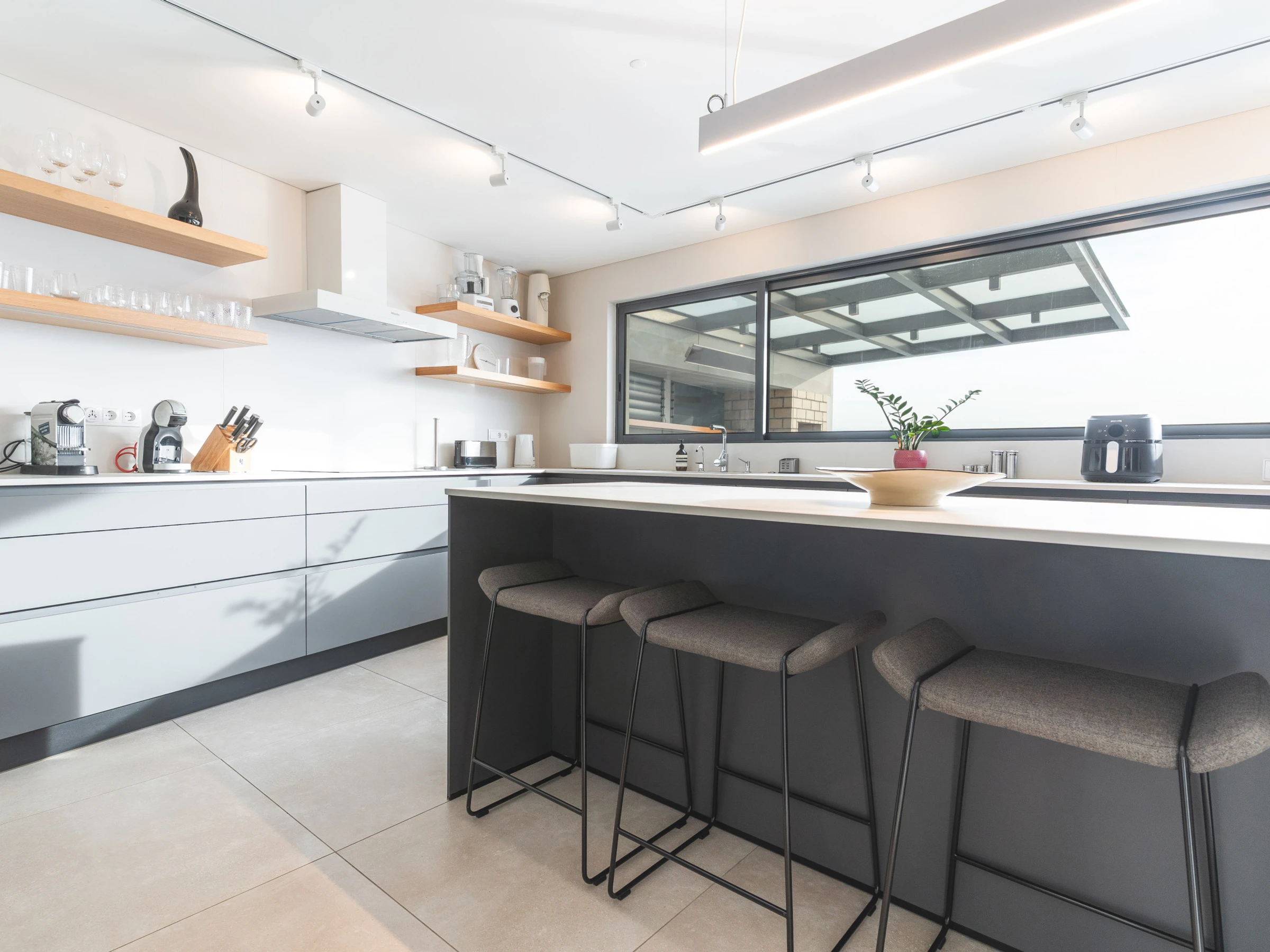 La cuisine entièrement équipée comprend un réfrigérateur, un congélateur, un four, un micro-ondes, une plaque de cuisson, des couverts, des assiettes, un lave-vaisselle et tous les ustensiles essentiels nécessaires à la cuisine maison. Les espaces de vie sont lumineux et confortables, et le téléviseur intelligent avec boîtier garantit le divertissement pendant votre séjour. La climatisation vous permet de réguler la température intérieure tout au long de l'année.