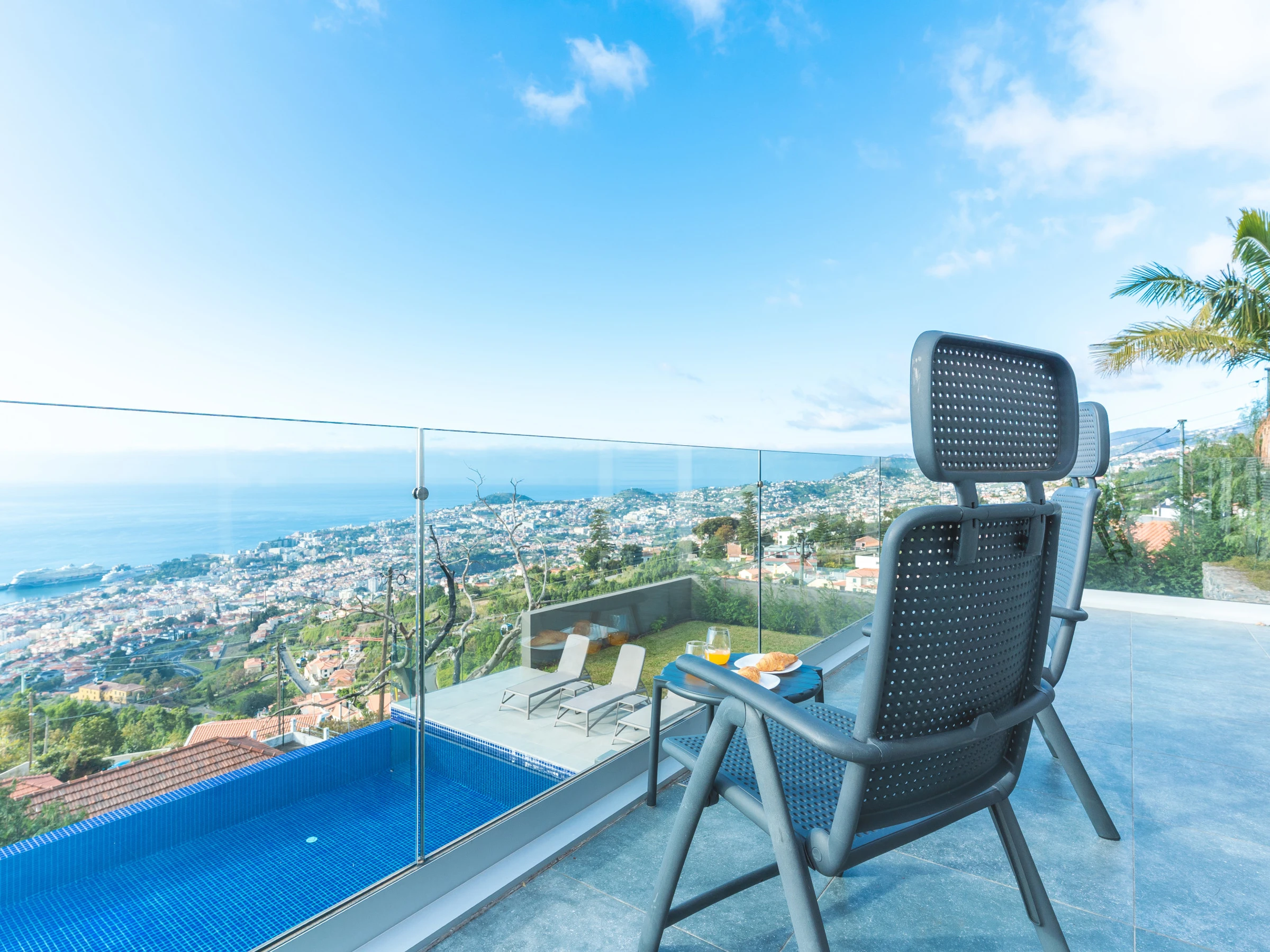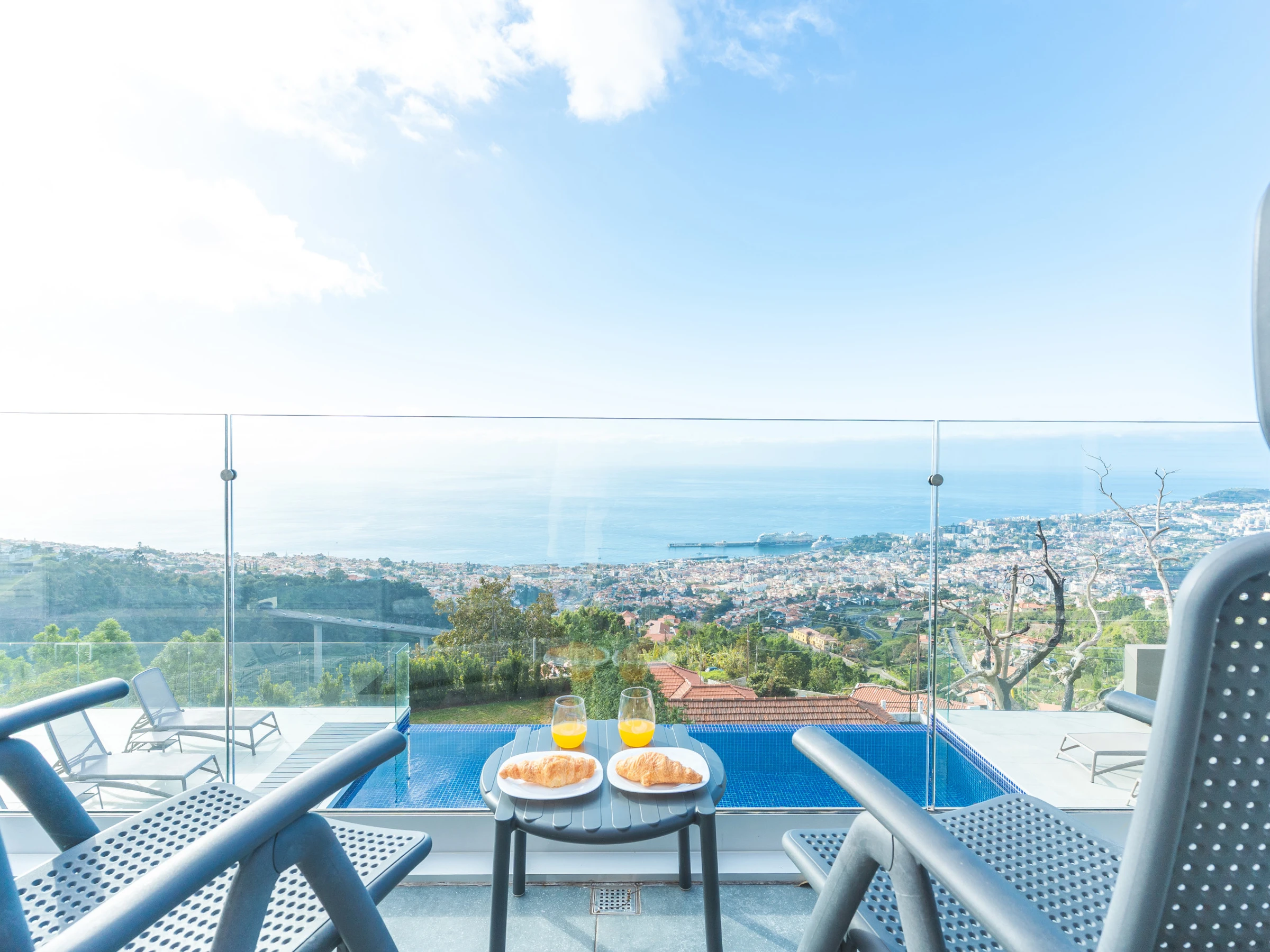 À l'extérieur, les invités peuvent profiter d'une piscine chauffée maintenue à environ 26 ºC, d'une zone de barbecue à côté de la piscine et d'espaces ouverts idéaux pour se détendre tout en admirant la vue sur Funchal. Veuillez noter que la cheminée est uniquement décorative et ne doit pas être utilisée.