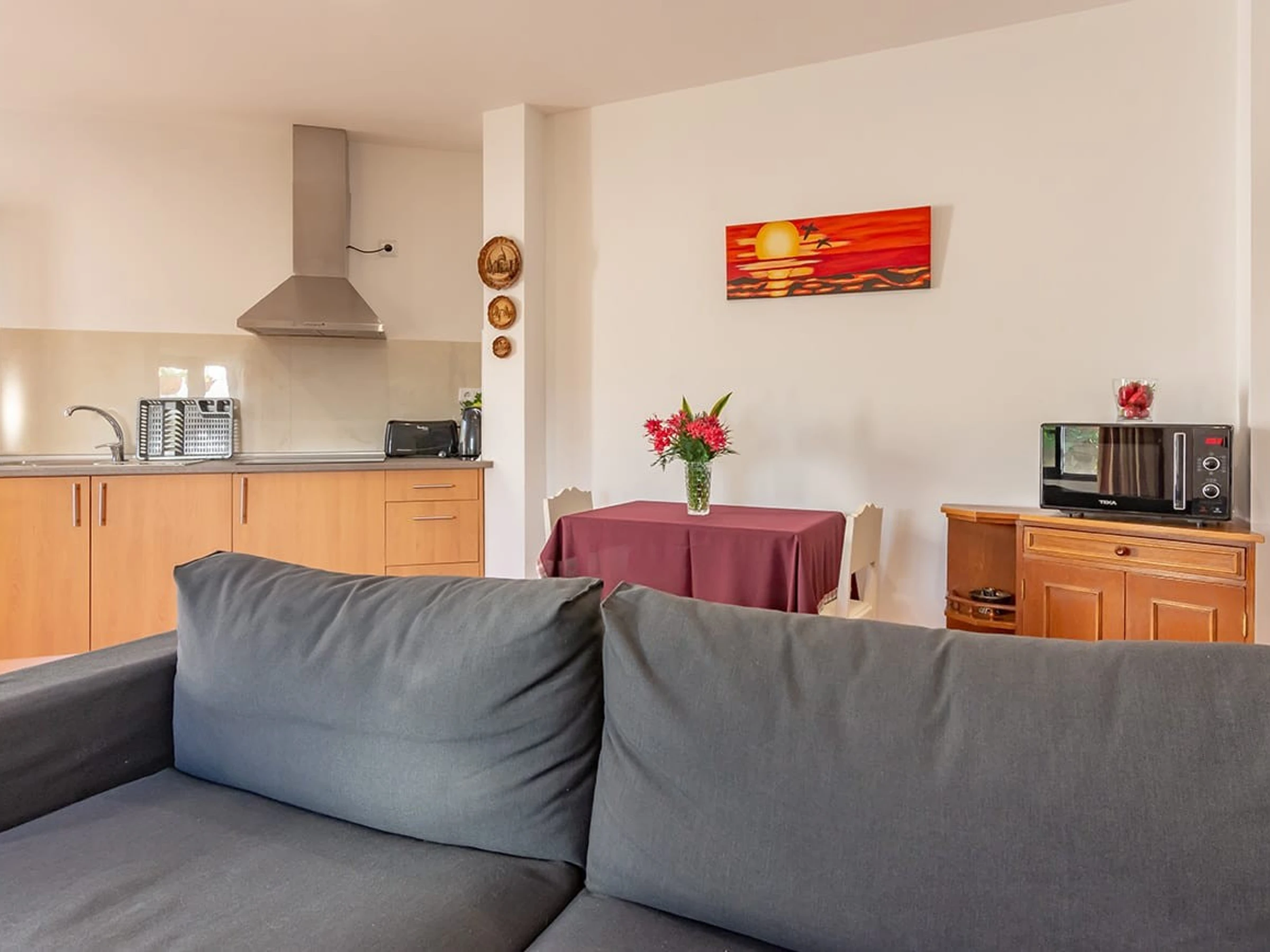 Logement de 30 m² meublé avec goût et très lumineux, avec vue sur la mer et la montagne.