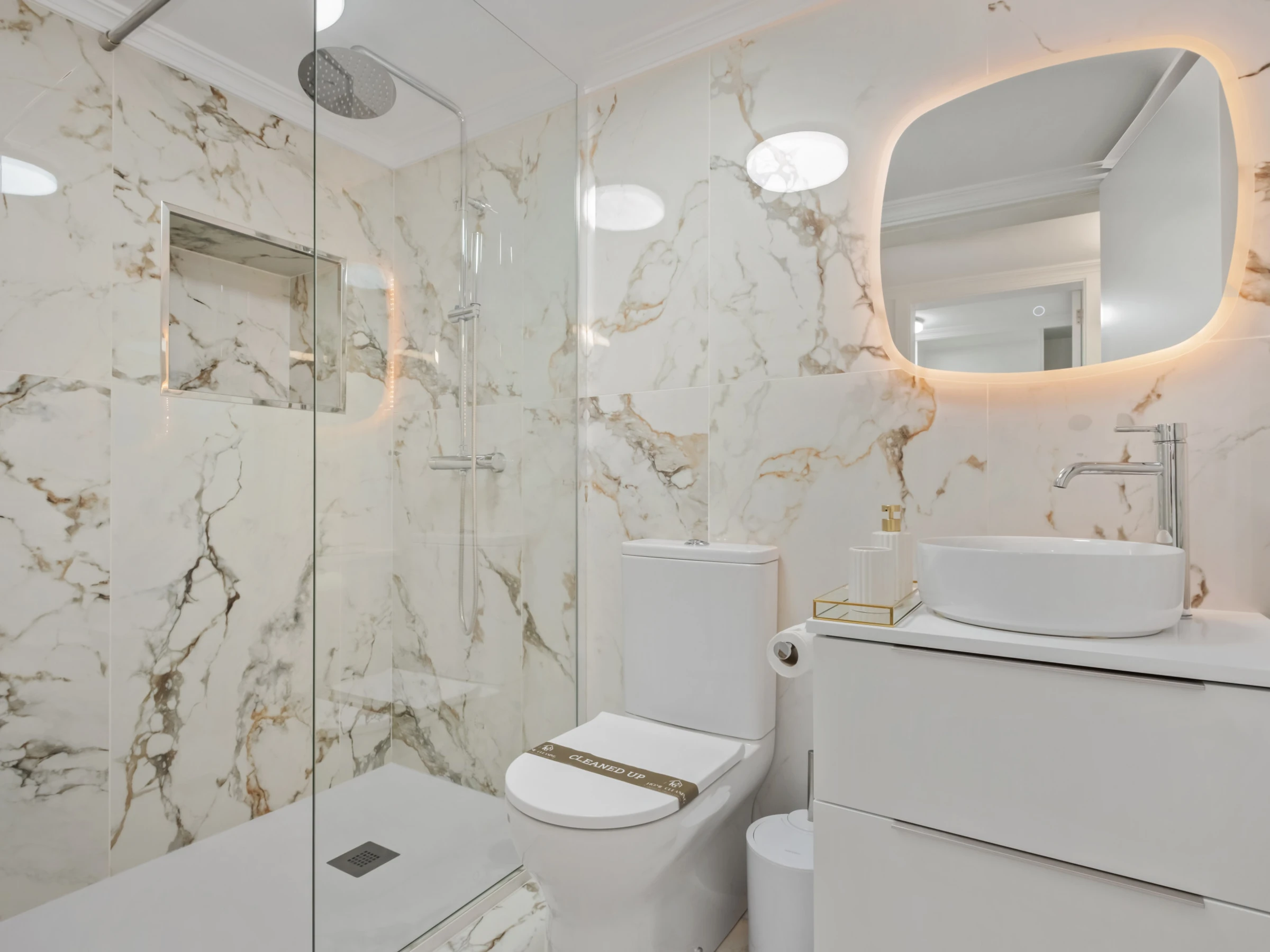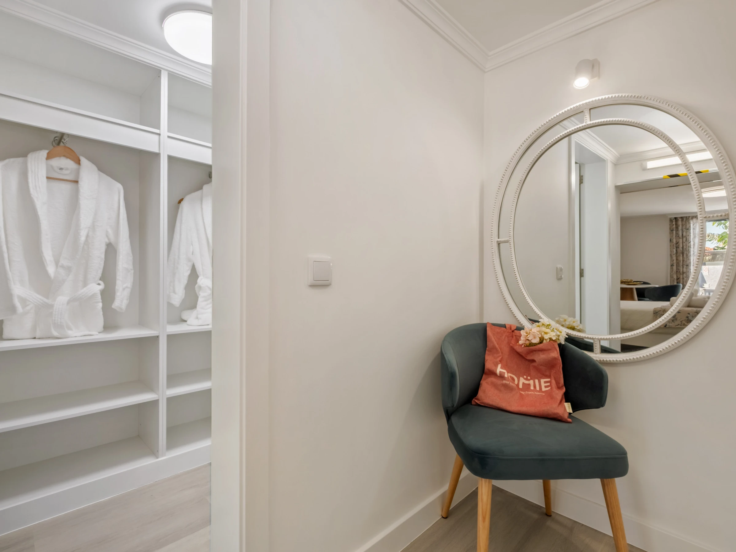 La salle de bain spacieuse et le dressing assurent une organisation et une commodité tout au long du séjour, faisant de la Blue Room un espace harmonieux, fonctionnel et mémorable pour ceux qui recherchent une expérience complète à Funchal.