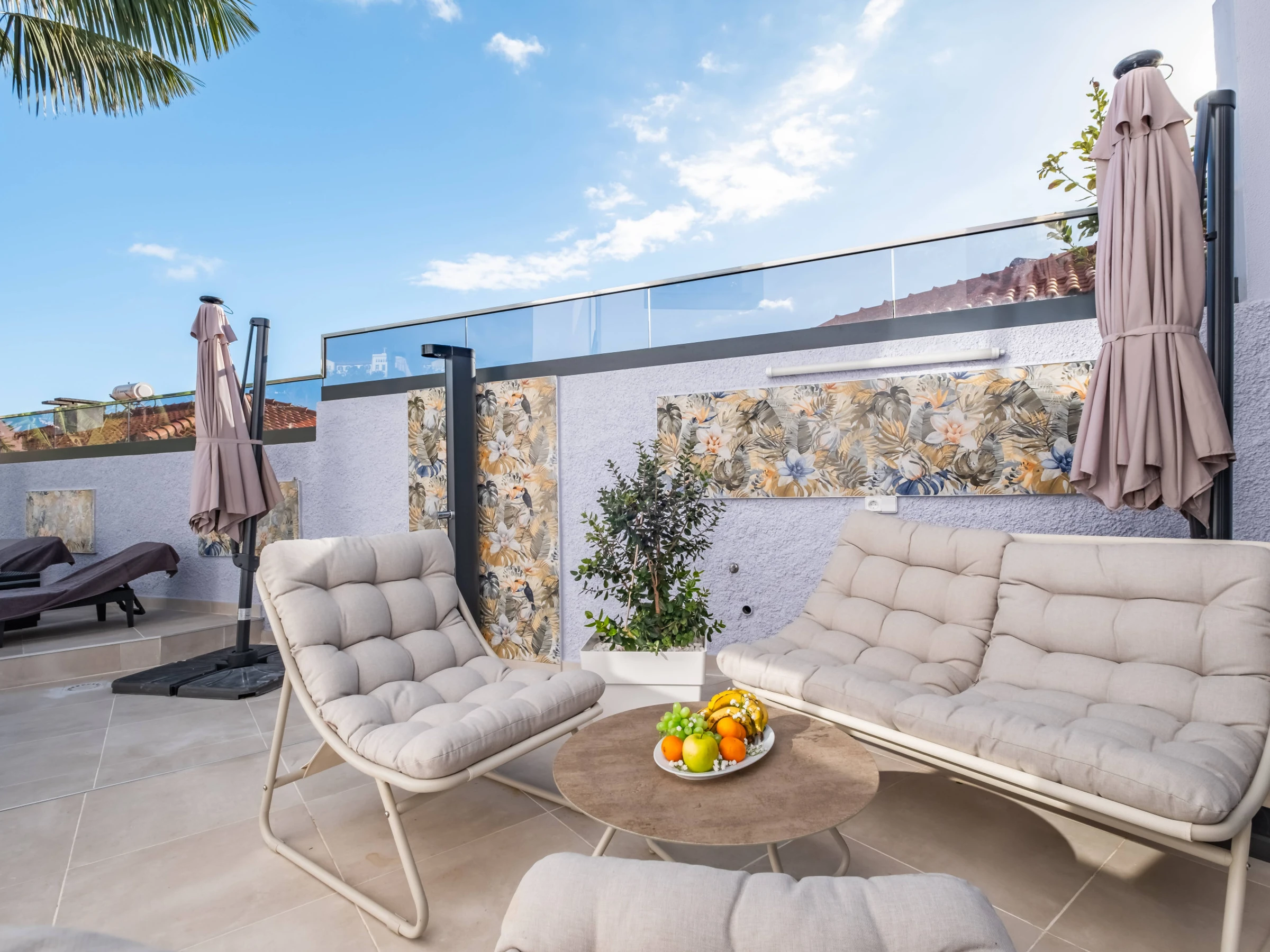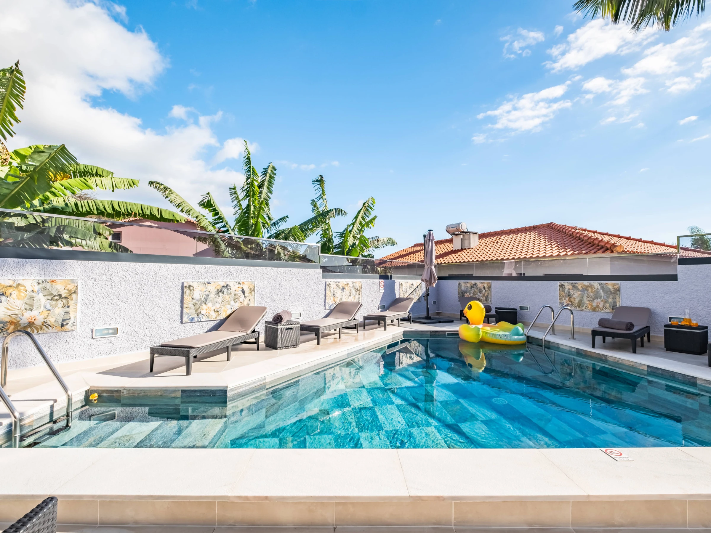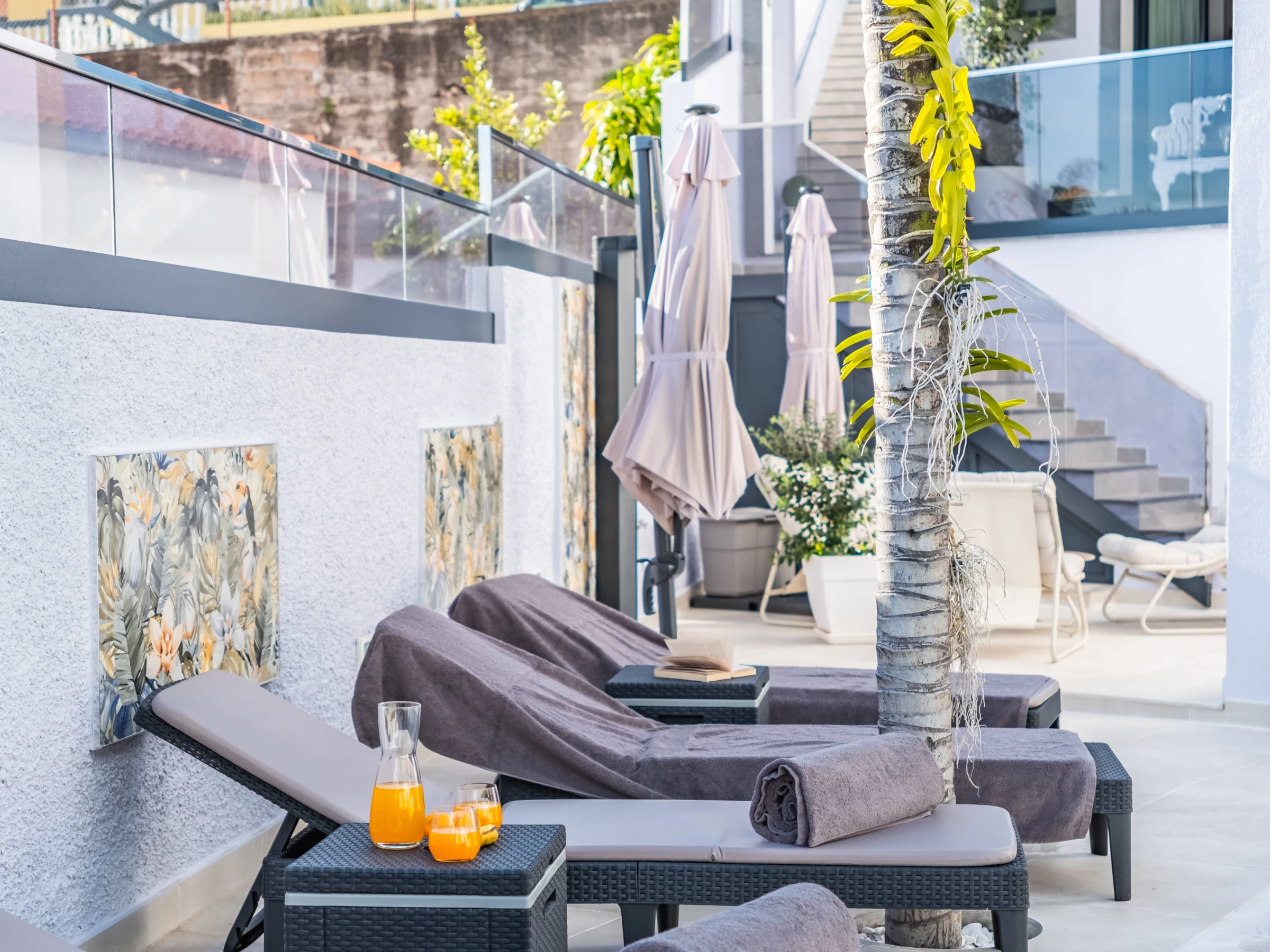 À l'extérieur, les Camacho Studios surprennent avec un agréable espace commun, où se trouve la piscine partagée par tous les studios. Entourée de mobilier d'extérieur, comprenant des tables, des chaises et des transats, cette zone est parfaite pour profiter du soleil, se rafraîchir après une journée de promenade ou profiter de moments calmes en bonne compagnie. La piscine est disponible toute l'année, étant chauffée uniquement de avril à octobre.