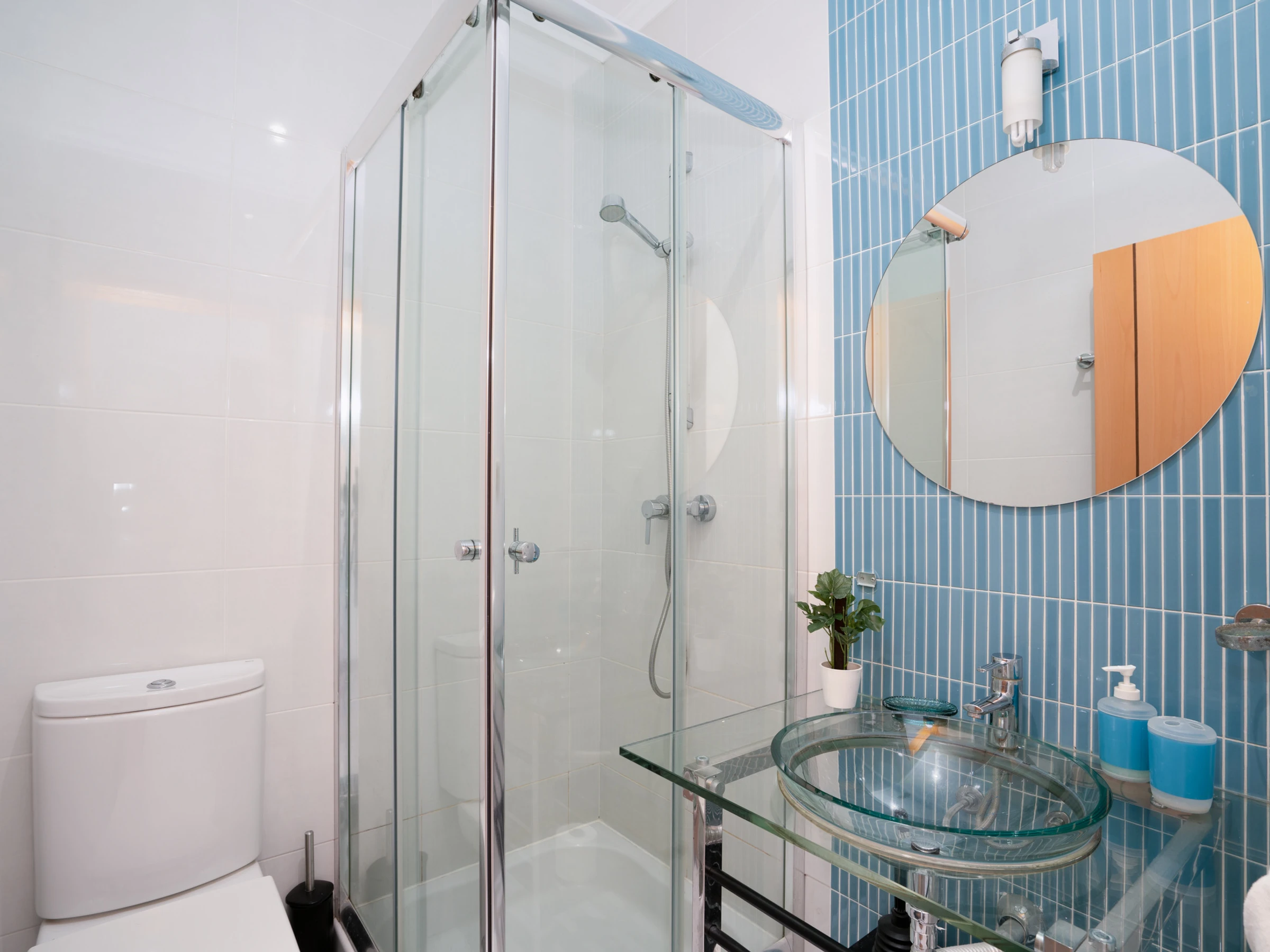 À l'arrière, vous trouverez deux chambres spacieuses et confortables avec de nombreux espaces de rangement et la climatisation. La chambre principale dispose de sa propre salle de bain attenante, tandis qu'une salle de douche séparée dessert la deuxième chambre et les invités.