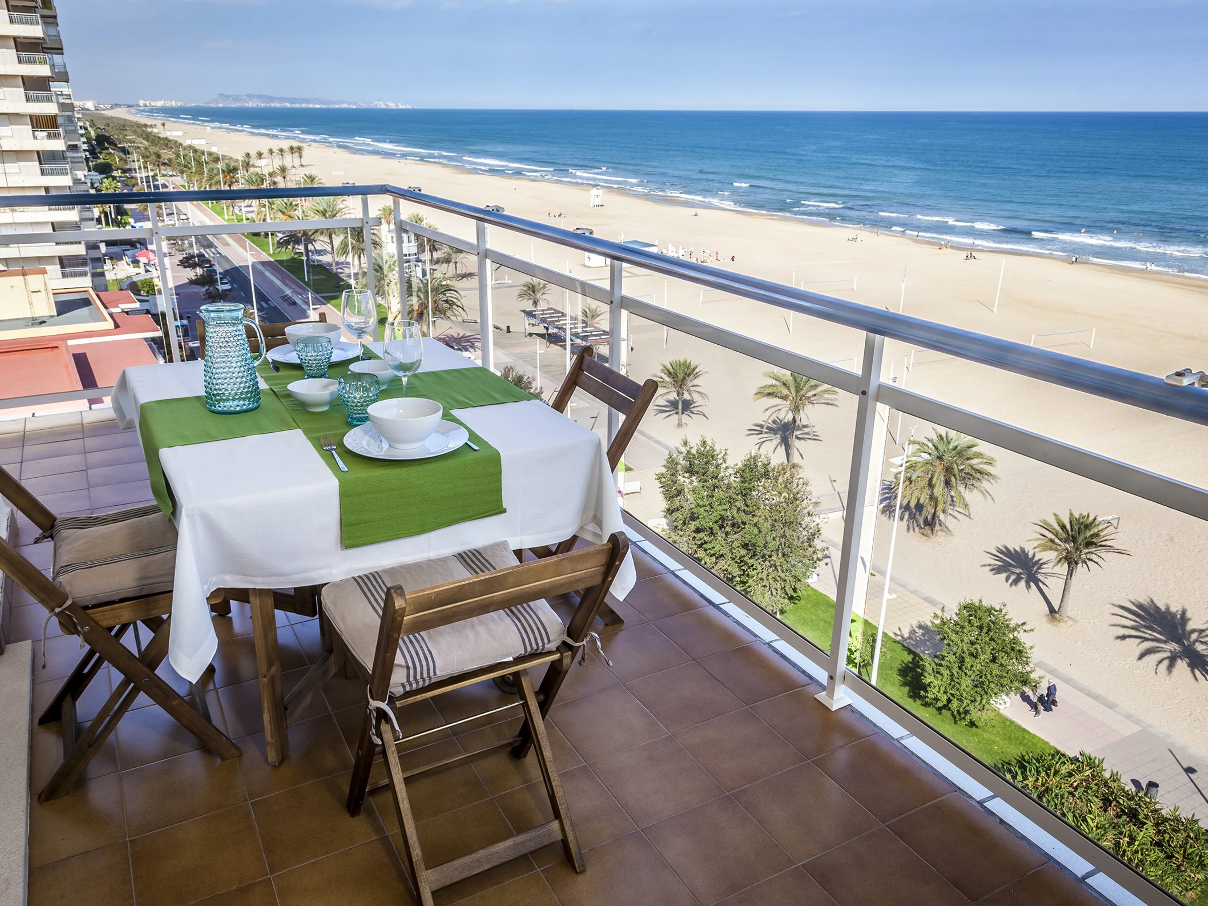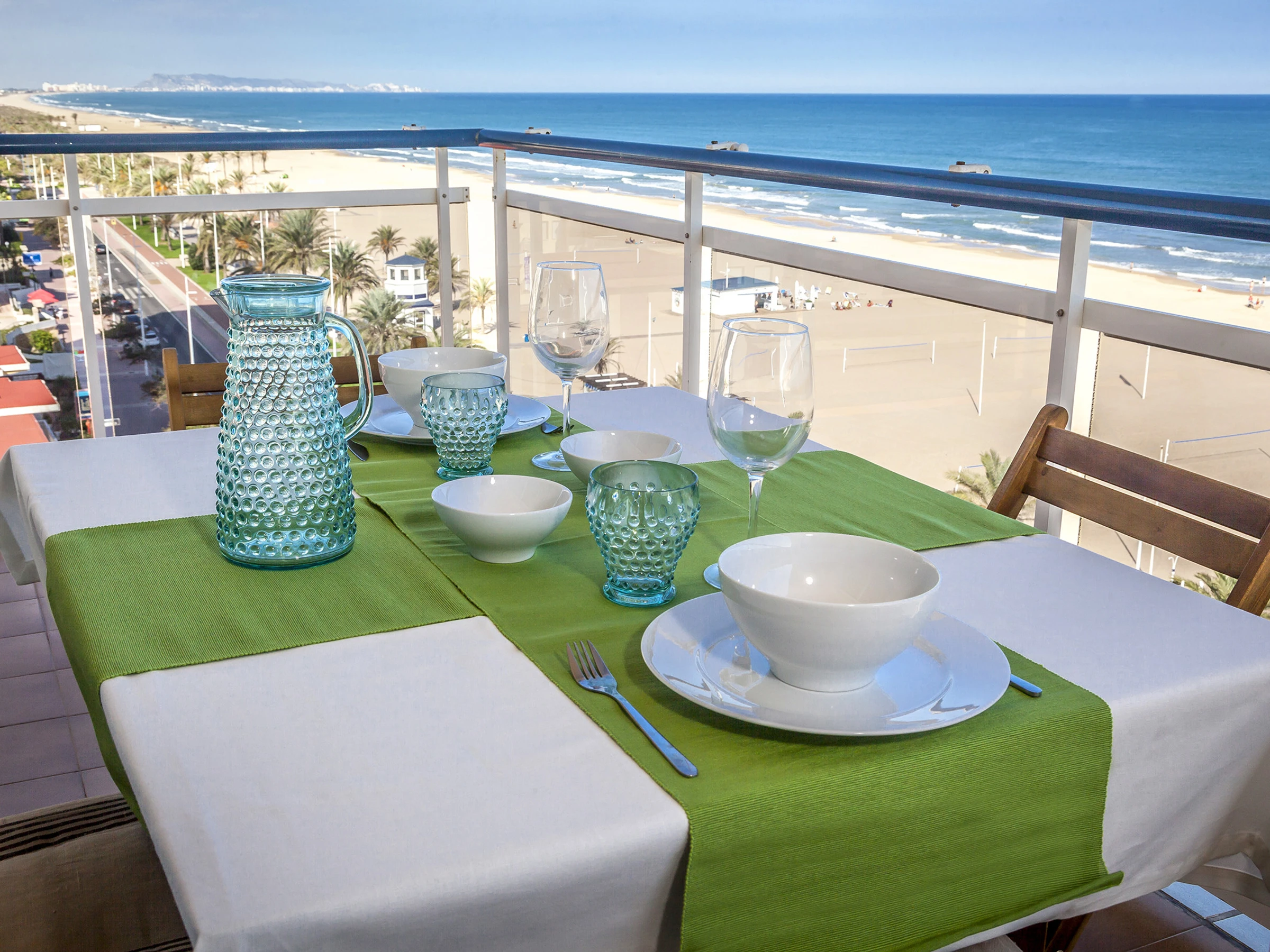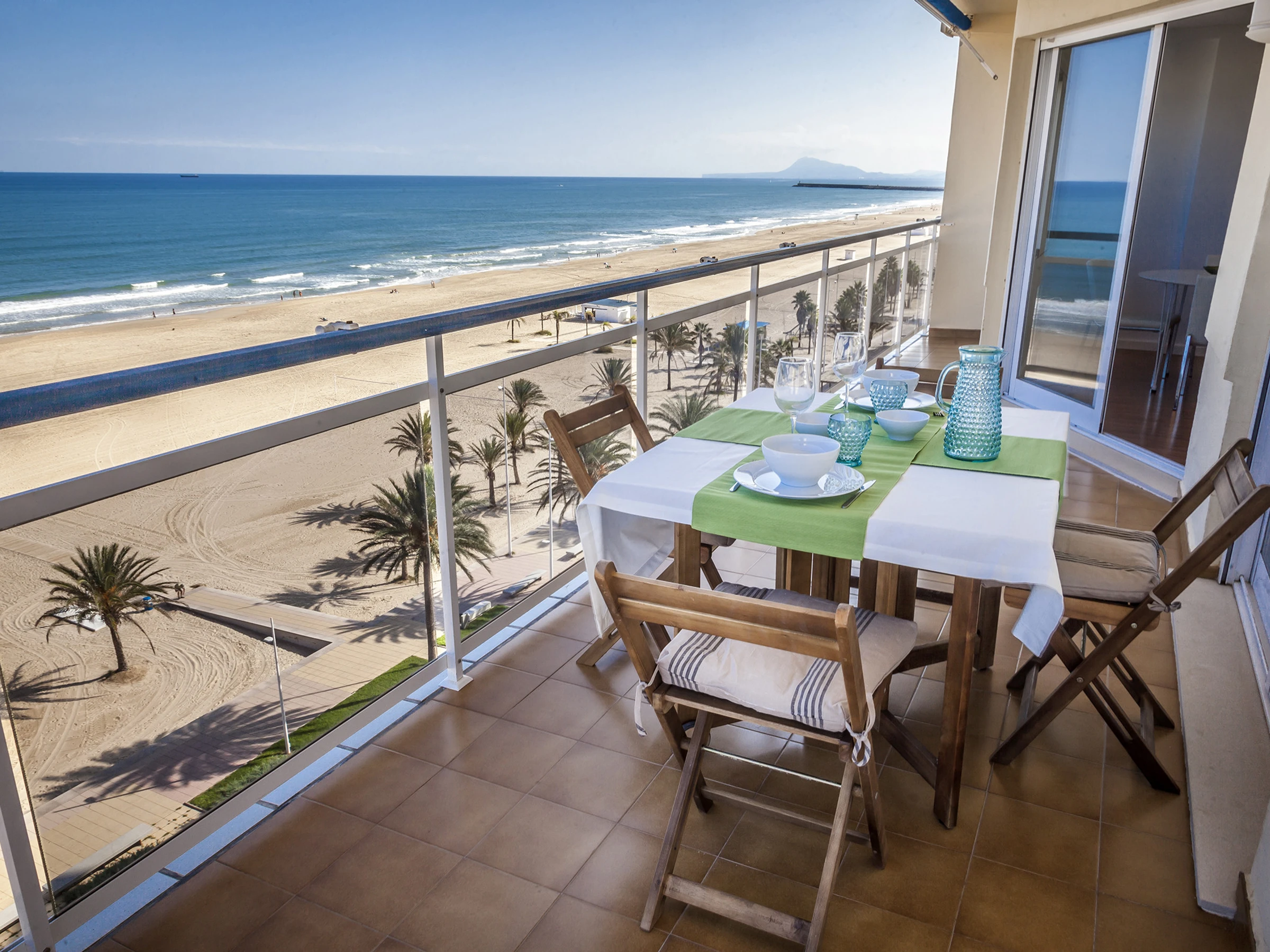 Appartements front de mer sur la plage de Gandia. Au bord de la Méditerranée vous trouvez ce particulier appartement avec des vues privilégiées sur la mer qui permet de se détendre dès le premier instant que vous y entrez. Quand vous vous penchez à l’extérieur et regardez l’immensité de la mer, on se rend compte de sa majesté. Décoré avec un design frais qui respire le style méditerranéen avec des tons clairs, il permet que votre séjour soit le plus confortable et relaxant posible. Équipé avec tout le nécessaire pour passer des vacances extraordinaires, il dispose aussi de connexion WIFI GRATUITE.