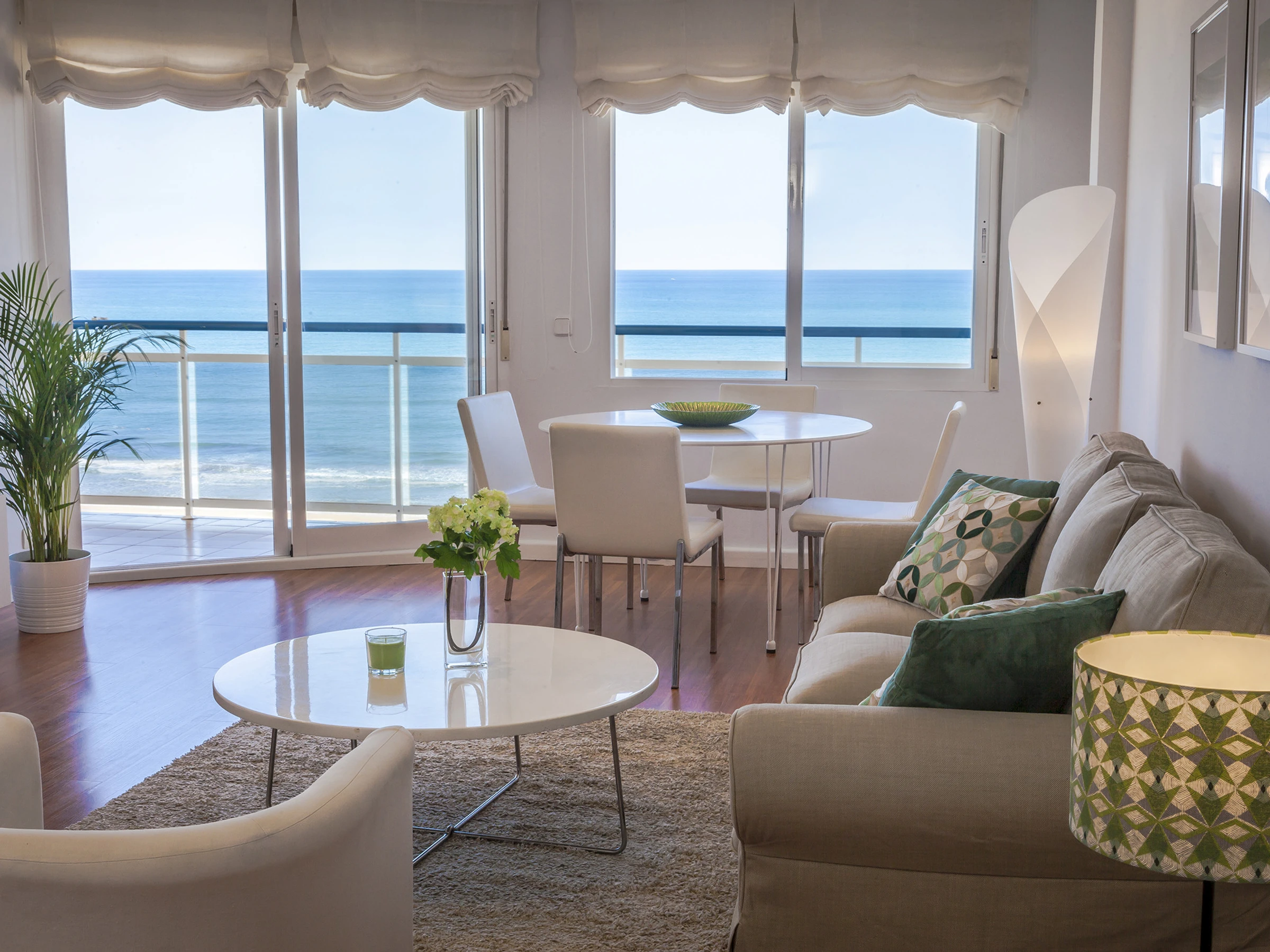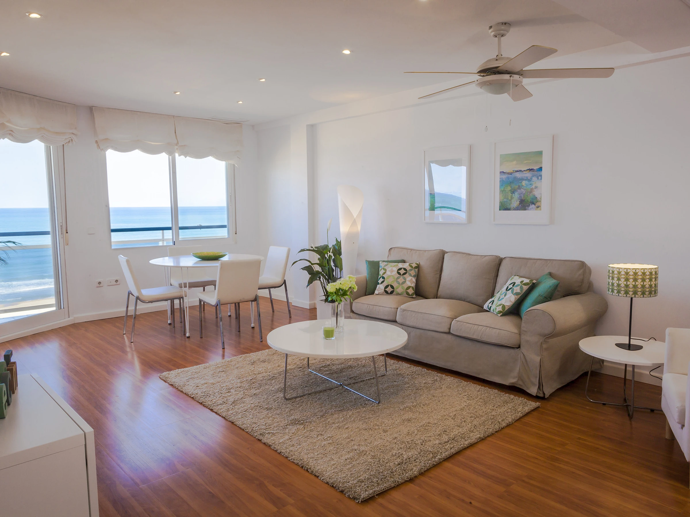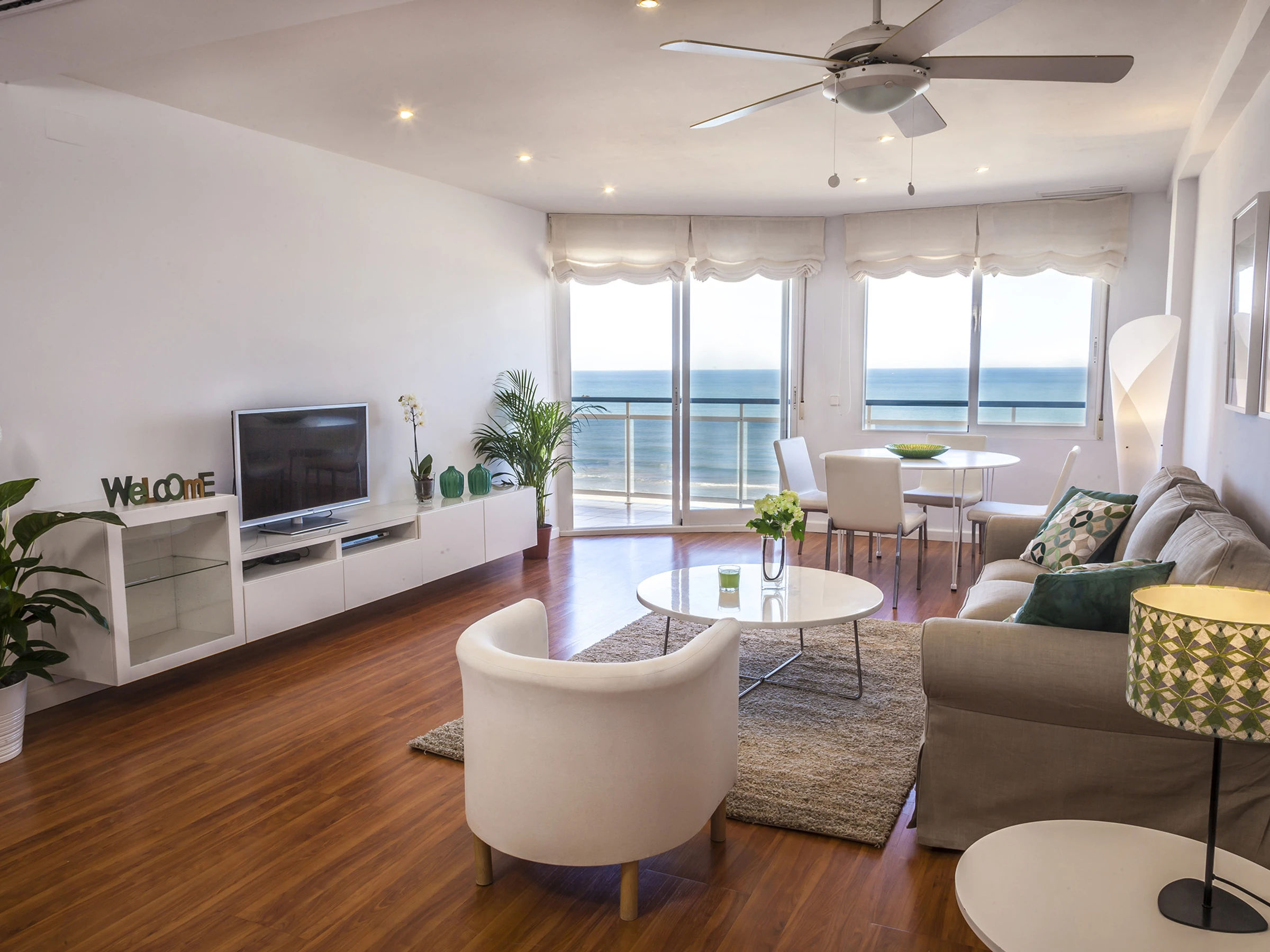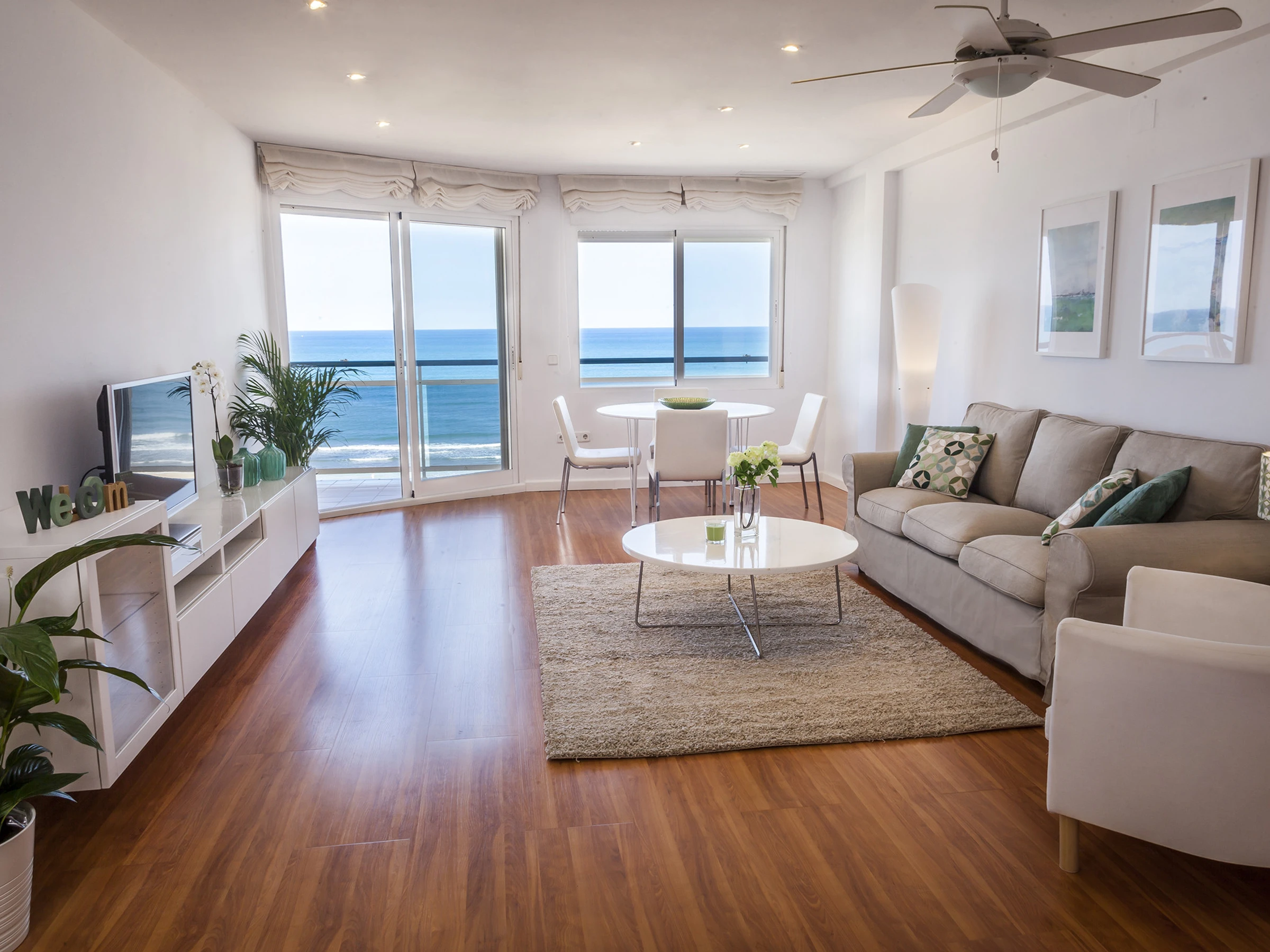 Appartements front de mer sur la plage de Gandia. Au bord de la Méditerranée vous trouvez ce particulier appartement avec des vues privilégiées sur la mer qui permet de se détendre dès le premier instant que vous y entrez. Quand vous vous penchez à l’extérieur et regardez l’immensité de la mer, on se rend compte de sa majesté. Décoré avec un design frais qui respire le style méditerranéen avec des tons clairs, il permet que votre séjour soit le plus confortable et relaxant posible. Équipé avec tout le nécessaire pour passer des vacances extraordinaires, il dispose aussi de connexion WIFI GRATUITE.