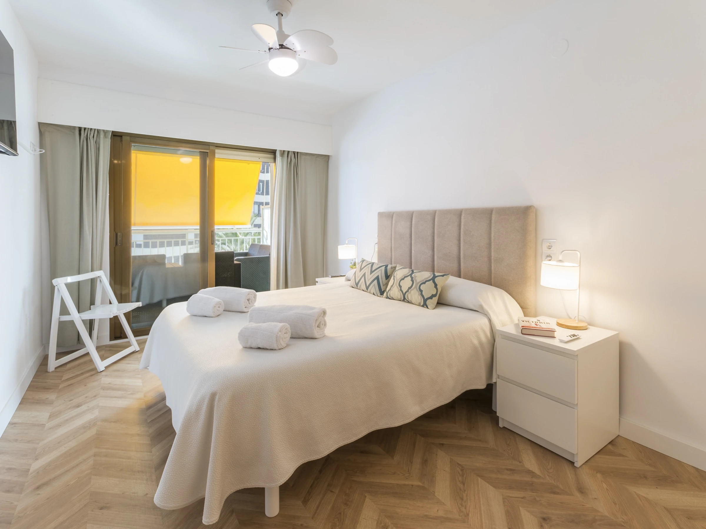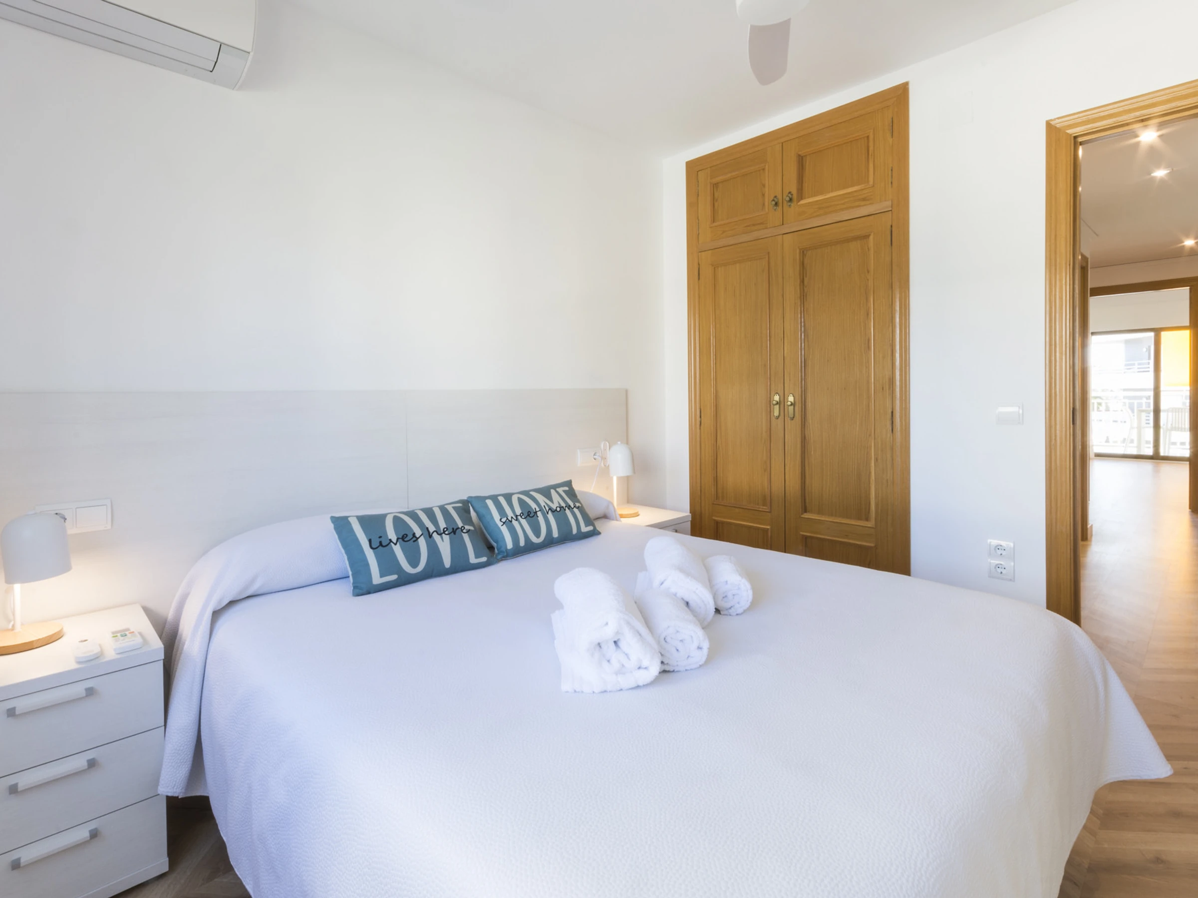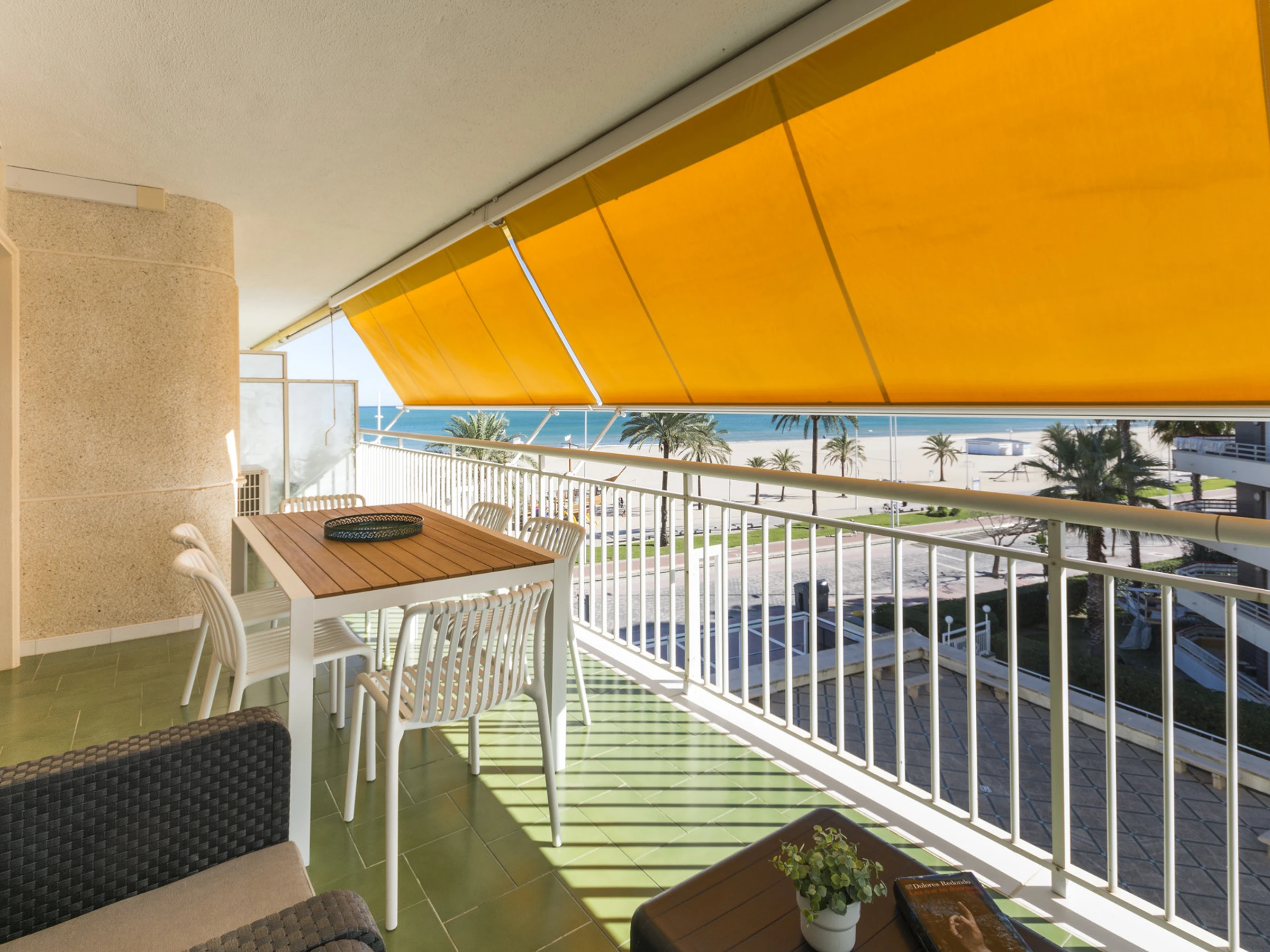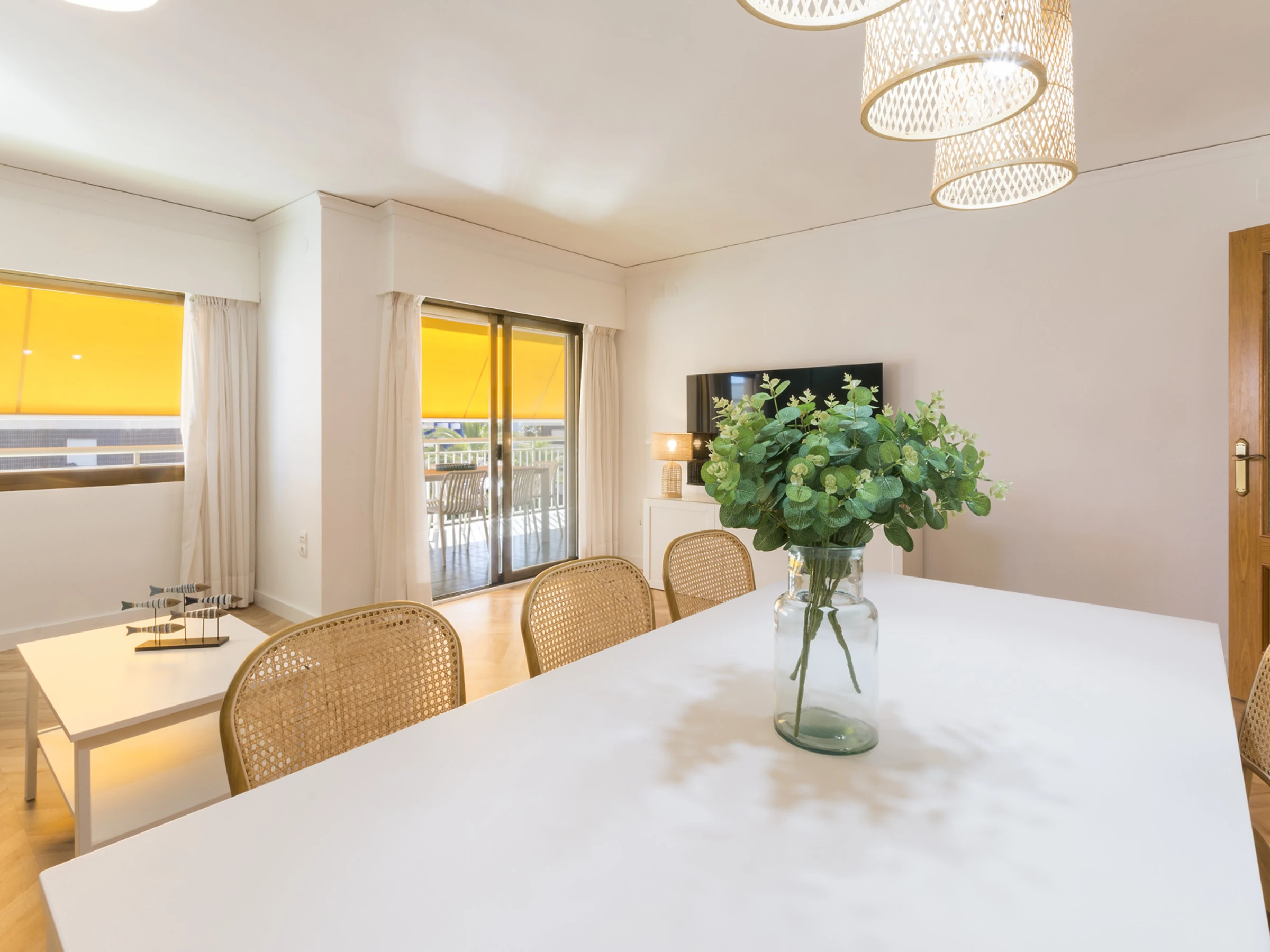 Imaginez ceci : vous entrez et une agréable fraîcheur vous entoure grâce à la climatisation qui vous accueille. Le salon est l'endroit idéal pour se détendre, avec une Smart TV prête pour des séries marathons à côté de la brise marine qui passe par la fenêtre.