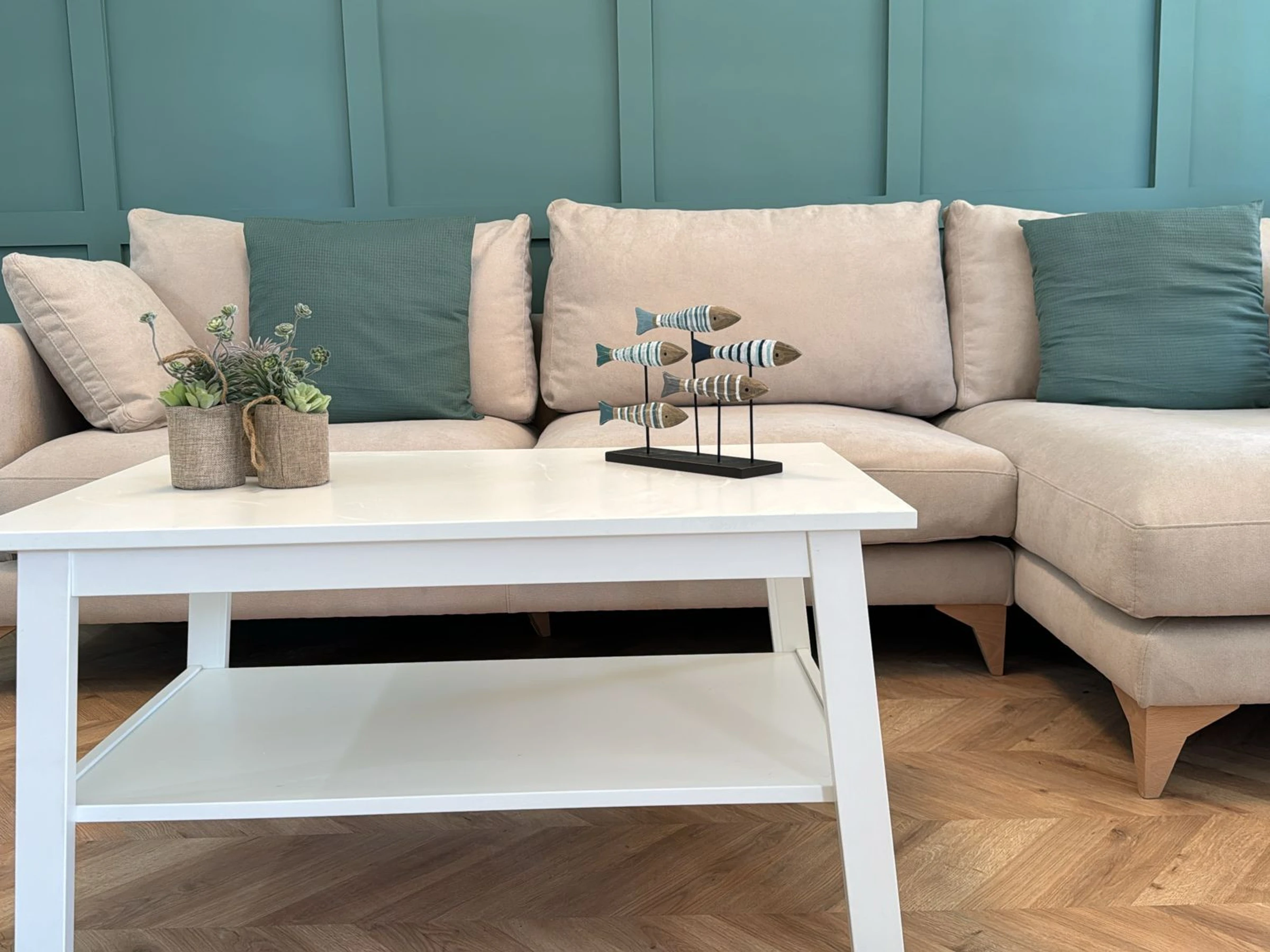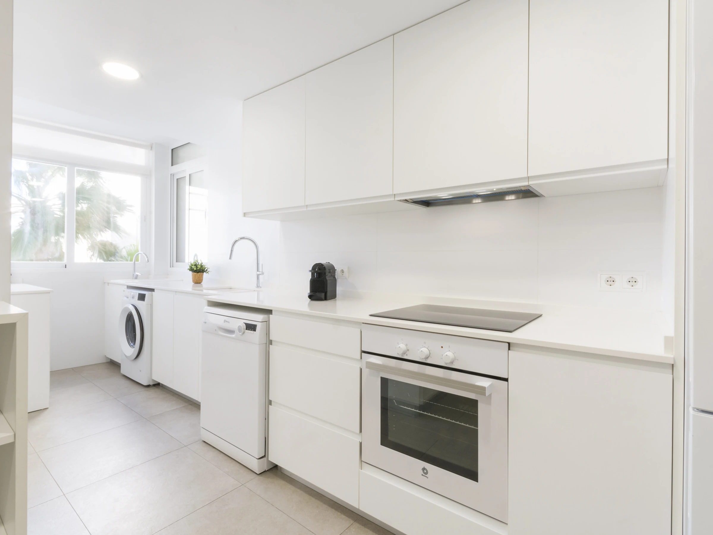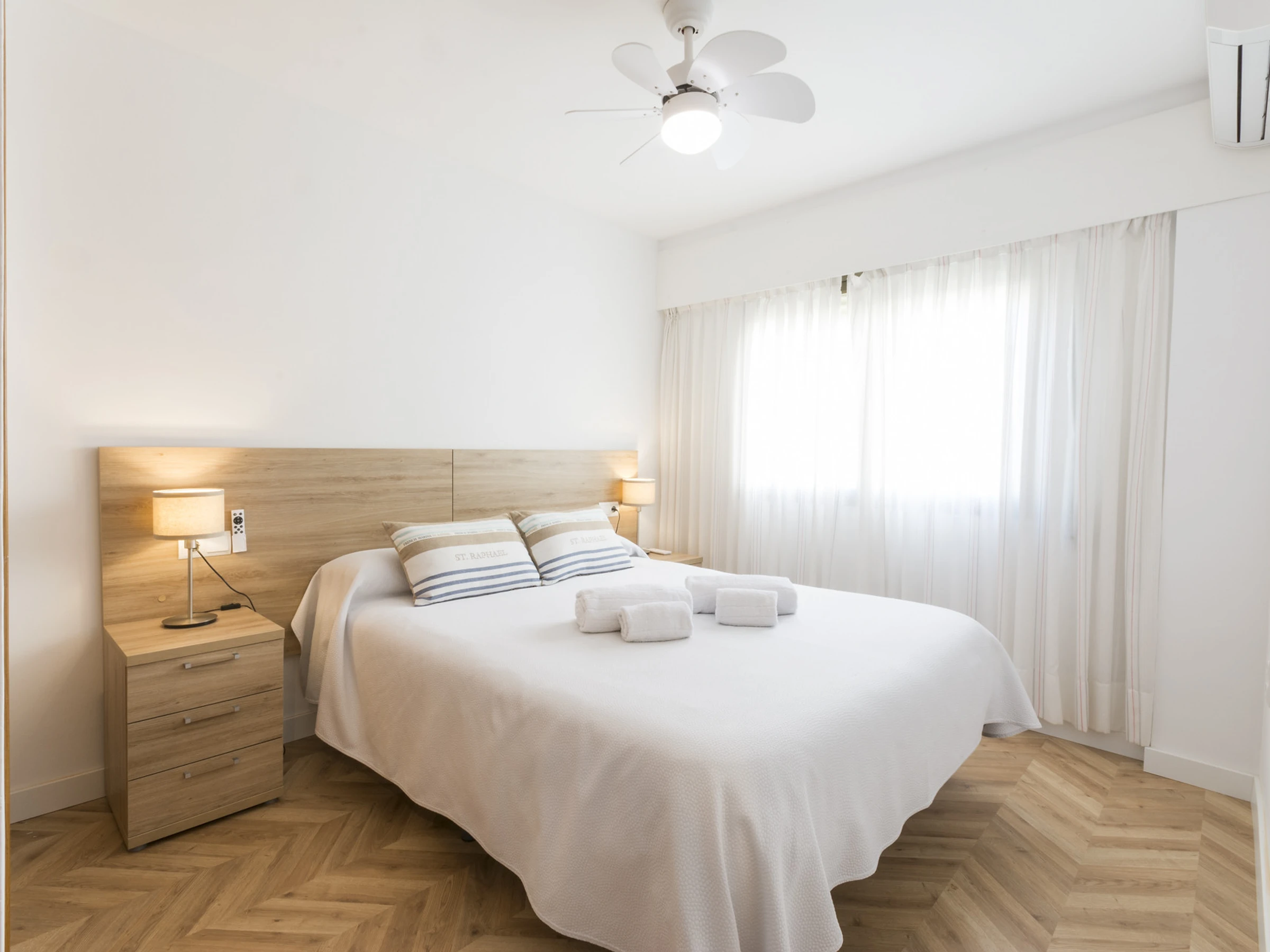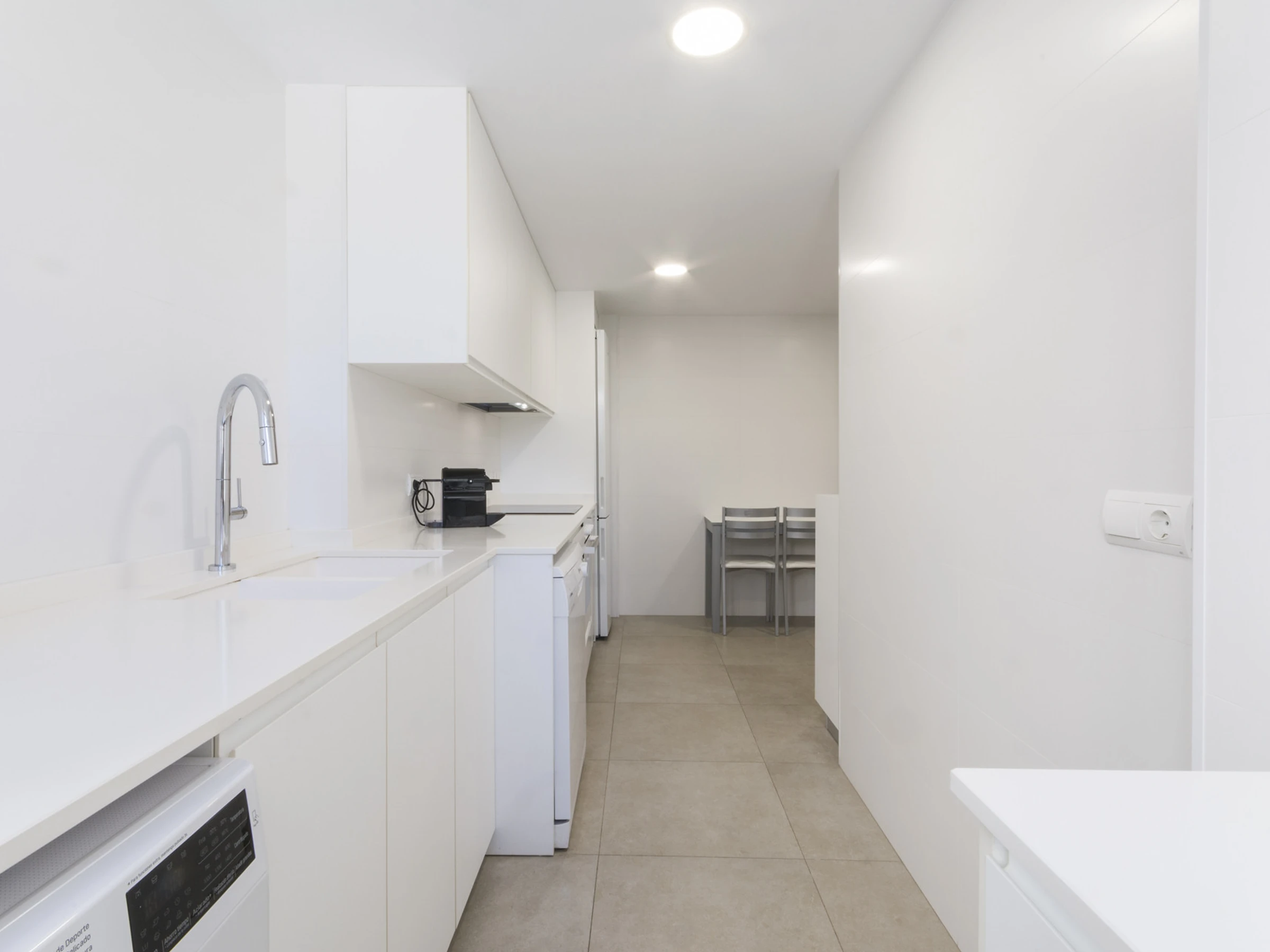 Imaginez ceci : vous entrez et une agréable fraîcheur vous entoure grâce à la climatisation qui vous accueille. Le salon est l'endroit idéal pour se détendre, avec une Smart TV prête pour des séries marathons à côté de la brise marine qui passe par la fenêtre.