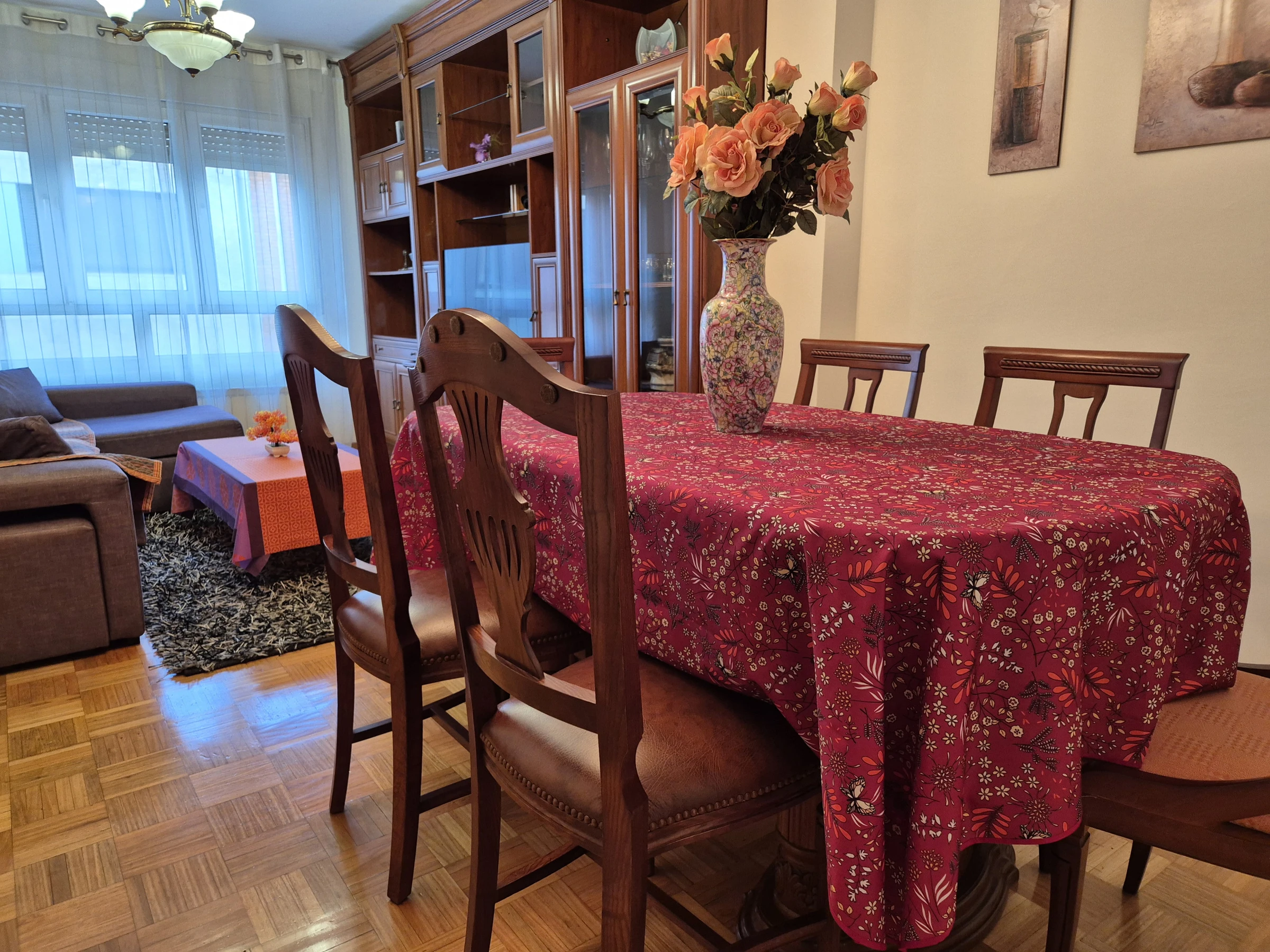 Appartement chaleureux au centre de Gijón, idéal pour 6 personnes. Trois chambres : 2 avec lits doubles, 1 avec deux lits simples. Salle de bain et toilettes, salon lumineux, cuisine bien équipée. Comprend un ascenseur, un garage et accepte les animaux de compagnie. Réservez maintenant pour des vacances parfaites !