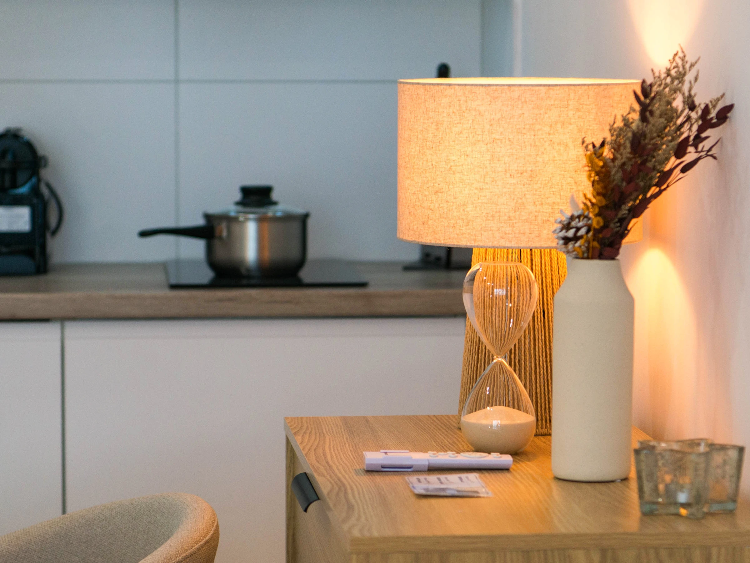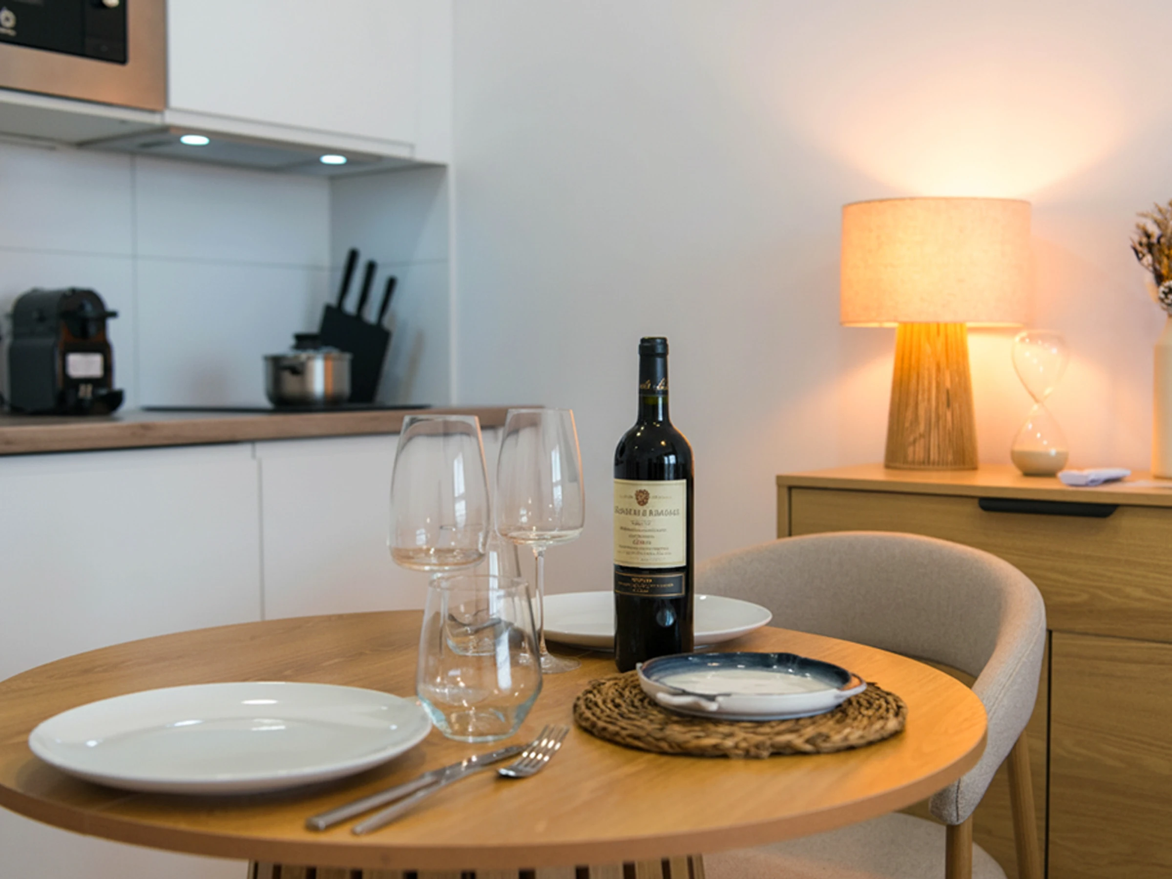 Ce logement est entièrement équipé pour que vous profitiez sans souci. Vous aurez accès à un WiFi haut débit, à la climatisation et au chauffage par pompe à chaleur pour maintenir la température parfaite à tout moment de l'année. La cuisine comprend une plaque de cuisson vitrocéramique, un réfrigérateur, un micro-ondes, un four, un lave-vaisselle, une cafetière, un grille-pain, une bouilloire, un presse-agrumes et toute la vaisselle et les ustensiles dont vous avez besoin. De plus, vous disposerez d'une machine à laver pour votre confort.