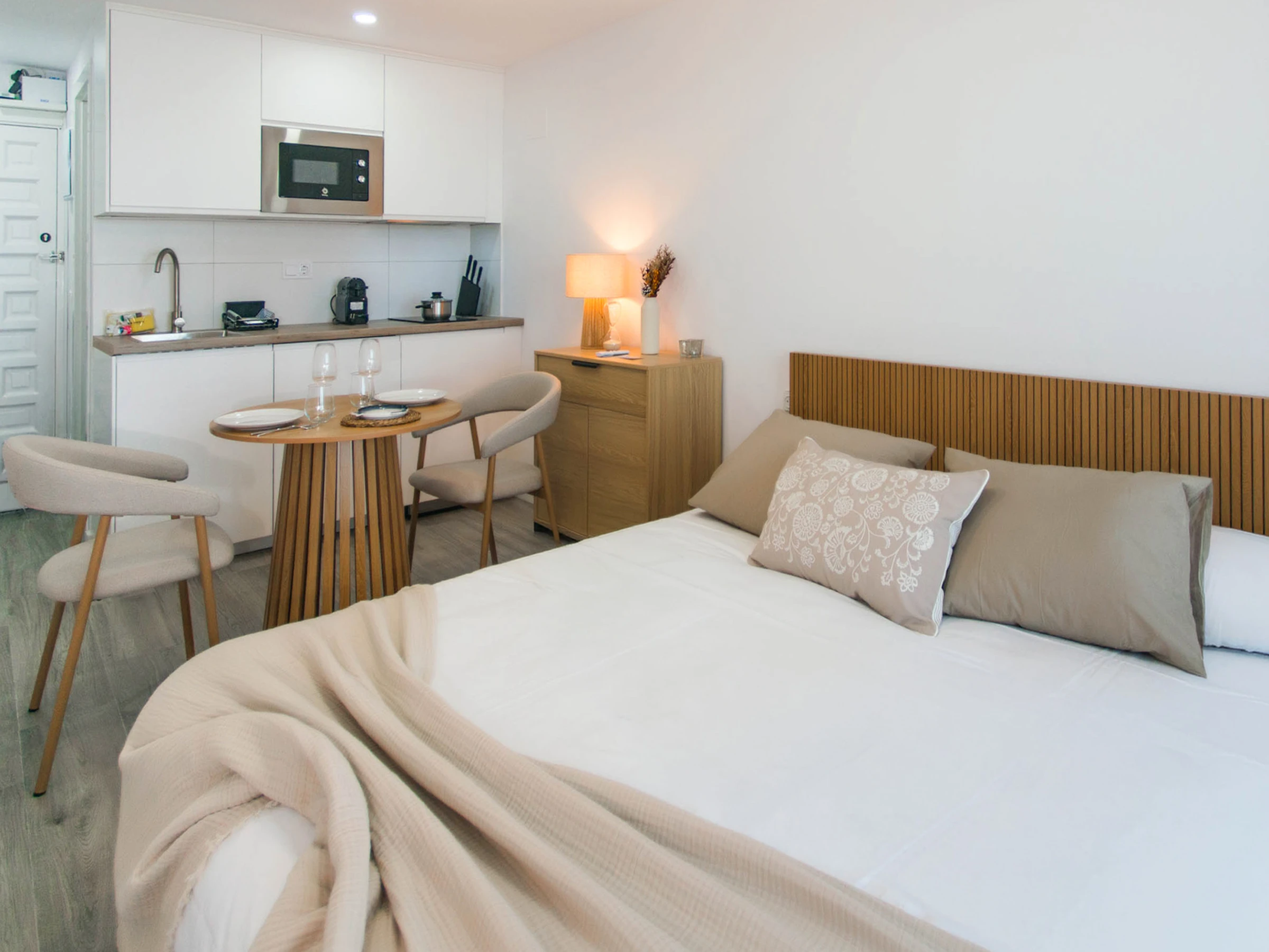Il s'agit d'une étude à distribution ouverte qui maximise chaque coin. Elle dispose d'une cuisine américaine entièrement équipée, d'une salle de bain avec douche et d'un espace de détente avec télévision. Les 21 m² sont conçus pour vous offrir tout ce dont vous avez besoin sans complications, idéal pour les courtes escapades comme pour les séjours plus longs.