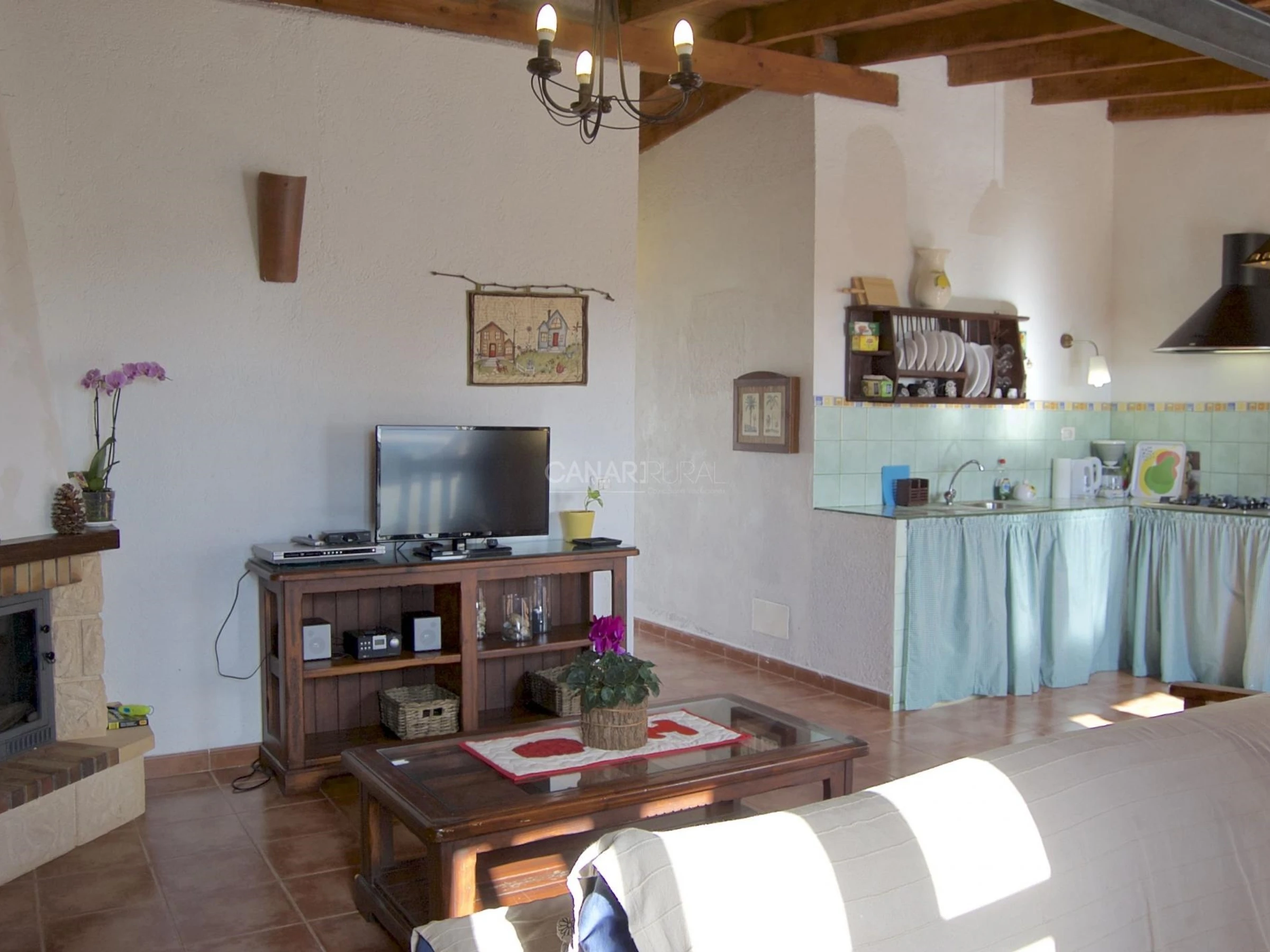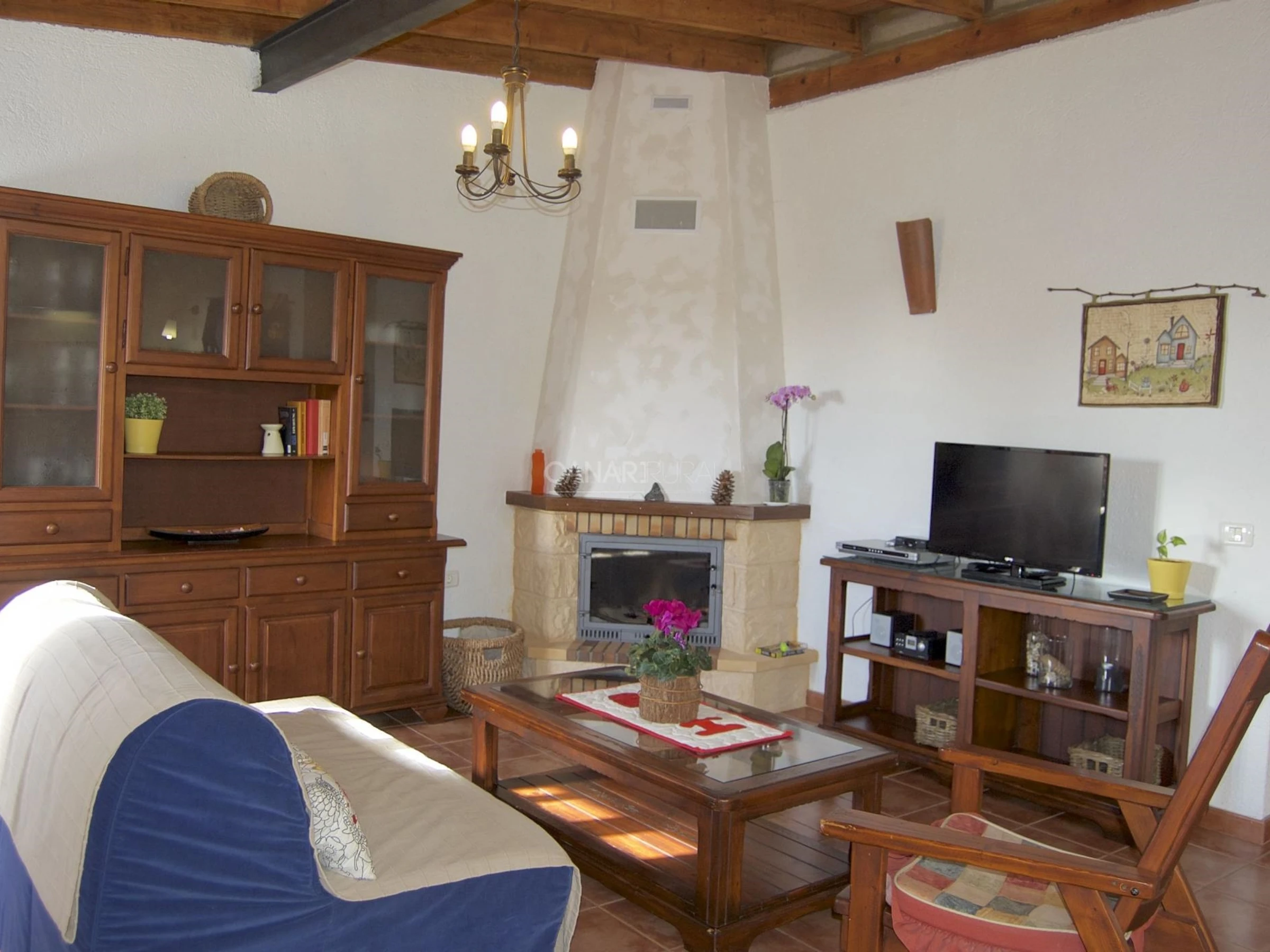 * Salon avec cheminée, télévision avec chaînes satellite et radio CD