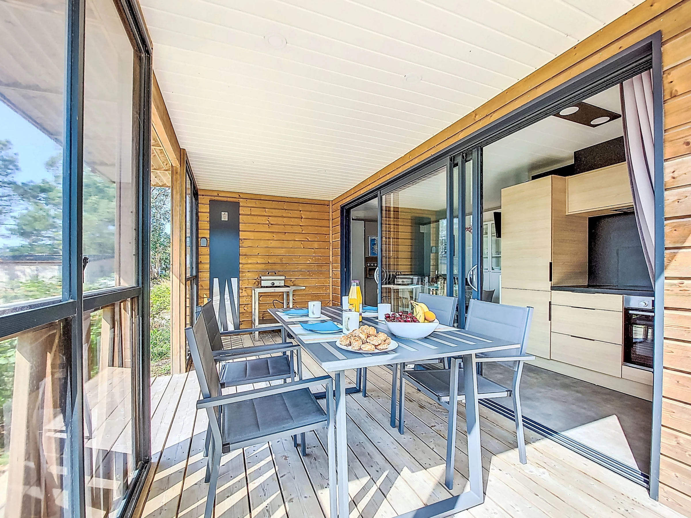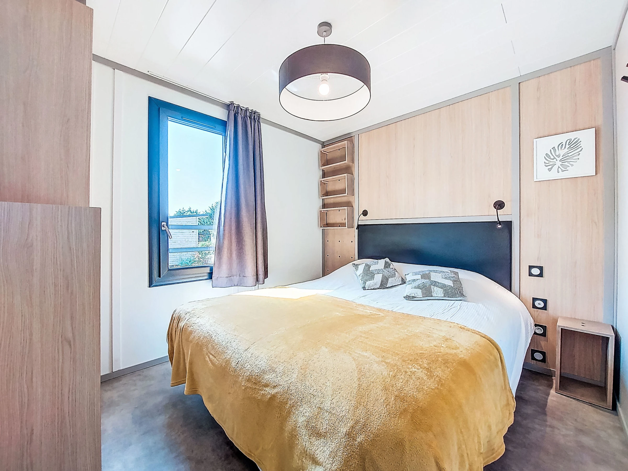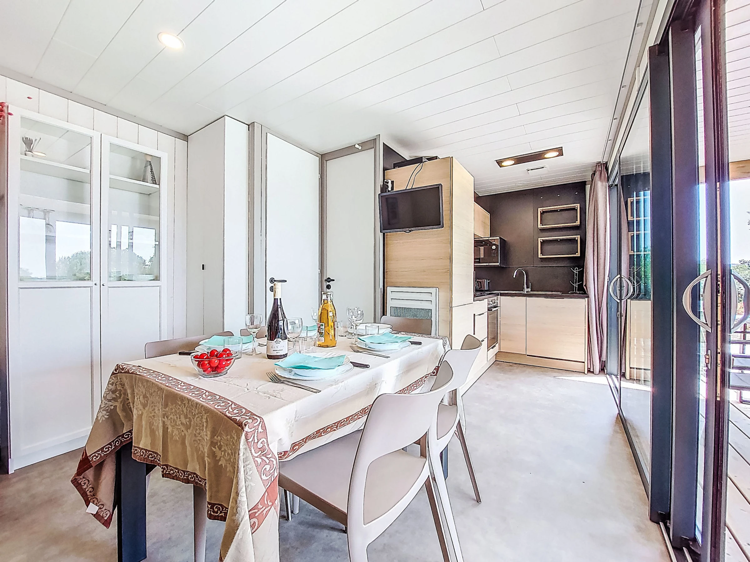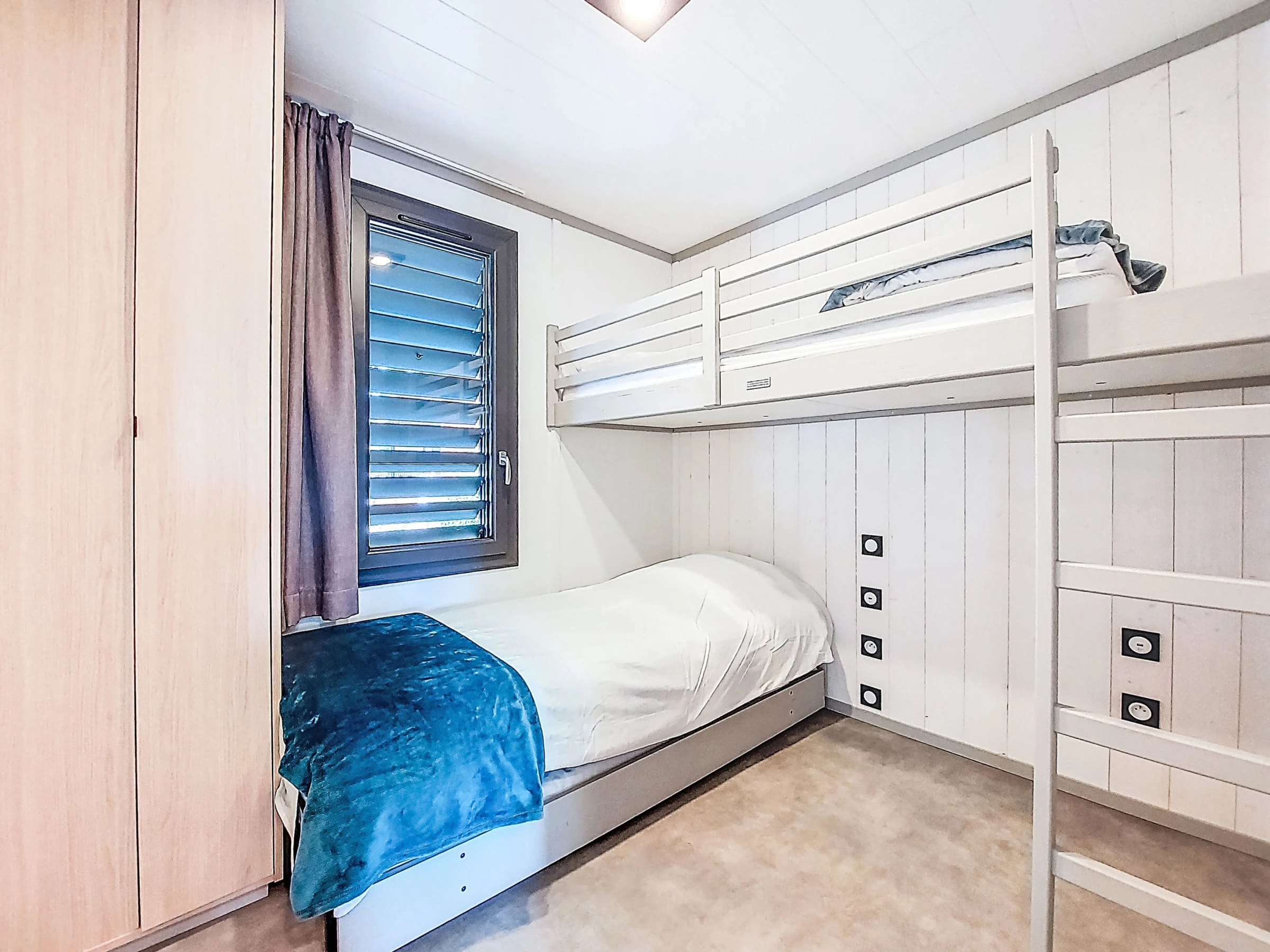"Chalet moderne La Baule-Guérande", chalet 3 pièces 48 m2. Aménagement très agréable: séjour avec baie vitrée avec coin repas et TV (écran plat). Sortie sur la terrasse. 1 chambre avec 1 grand-lit (160 cm, longueur 200 cm). 1 chambre avec 2 lits (80 cm, longueur 200 cm), 1 lits superposés (80 cm, longueur 200 cm) (1 pers.). Cuisine ouverte (four, lave-vaisselle, 4 plaques vitrocéramiques, grille-pain, bouilloire électrique, micro-ondes, congélateur, cafetière électrique). Douche, WC séparé. Chauffage électrique. Grande terrasse 22 m2 partiellement couverte, situation sud. Meubles de terrasse, barbecue électrique (portable), chaises longues (4), réduit. A disposition: lave-linge, chaise haute pour enfant, lit bébé jusqu'à 2 ans, sèche-cheveux. Internet (Connexion WIFI, gratuit). Place de parking No 36. Veuillez noter: logement non-fumeur. Détecteur de fumée. Annonce d'un particulier  (art 155, IV du CGI).