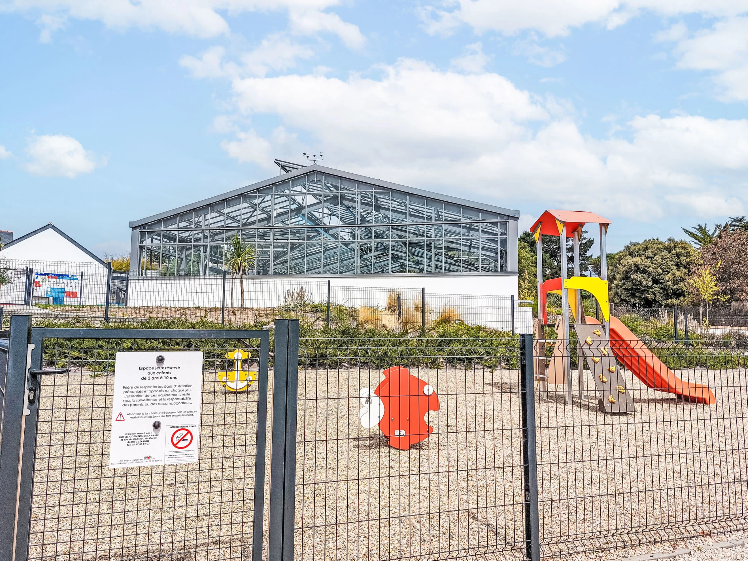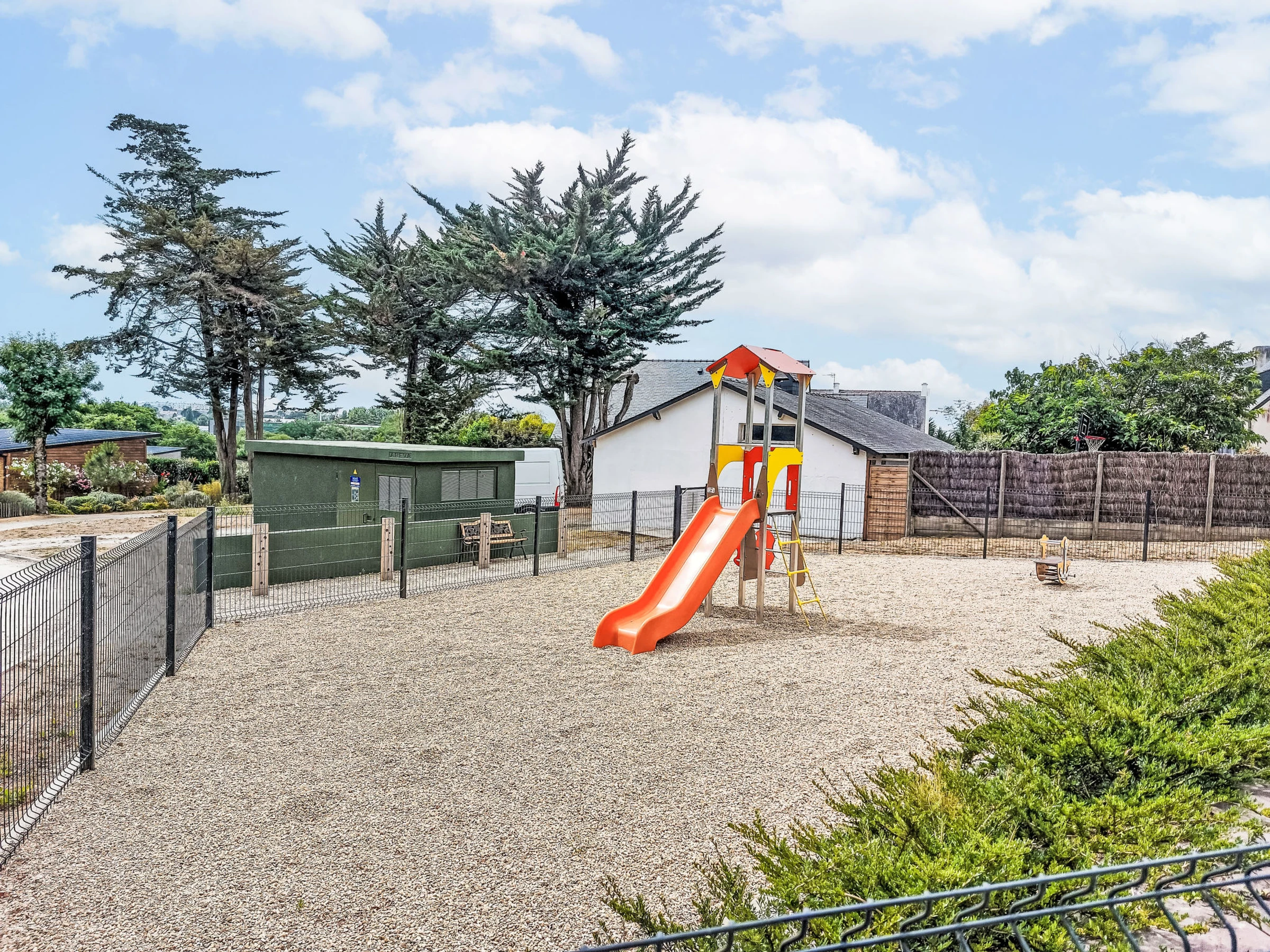 Complexe de vacances "Les Cottages de La Baule", année de construction 2023. En bordure de la localité La Baule, à 5 km du centre de Guérande, à 2.5 km de la mer, à 2.5 km de la plage, dans la verdure. En commun: terrain 2 ha (clôturé), piscine couverte chauffée (20 x 8 m, profondeur 115 - 150 cm, disponibilité saisonnière: [hidden] - [hidden] Douche/WC dans l'espace piscine, ping-pong, terrain de pétanque, espace de jeux pour les enfants. A usage privé: terrain 200 m2, jardin propice à la détente. Débarras disponible. Place de parking. Magasins 1.2 km, supermarché 1.2 km, arrêt de bus 1.8 km, gare ferroviaire 1.8 km, plage de sable "Grande Plage de La Baule" 2.5 km. Attractions à proximité: Vélocéan-Itinéraire Vélos 10 m, Marais Salants 3 km, Le Pouliguen 4.5 km, Le Croisic 10 km, Piriac sur Mer - Mesquer 15 km, Nantes - Vannnes 70 km. Région de randonnées: GR34 2.5 km. Résidence gardée. Résidence avec portail électrique.