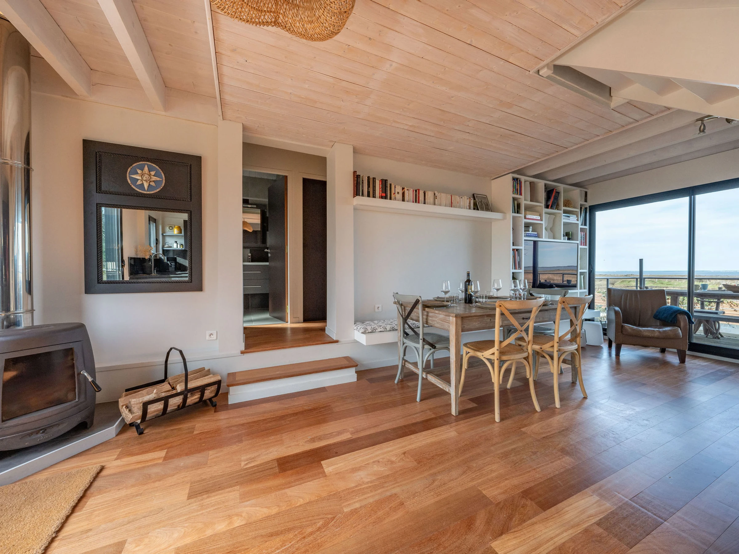 Villa 5 pièces 100 m2 sur 3 niveaux. Logement idéal pour 4 adultes + 2 enfants. Clair, aménagement confortable et de style: séjour/salle à manger 35 m2 avec baie vitrée orientée nord et orientée sud avec table pour les repas et TV (écran plat), poêle à bois et volet roulant électrique. Sortie sur le balcon. 1 chambre avec Dressing avec 1 grand-lit (160 cm, longueur 200 cm). Cuisine ouverte (four, lave-vaisselle, 4 plaques à induction, grille-pain, bouilloire électrique, micro-ondes, cafetière électrique). Douche, WC séparé, double vasque. À l'étage inférieur: (escalier extérieur) grande salle de jeux. 1 chambre, hauteur plafond 180 cm avec 1 grand-lit (140 cm, longueur 190 cm). À l'étage supérieur: 1 chambre, mansardée avec 1 grand-lit (160 cm, longueur 200 cm). 1 chambre, mansardée avec 2 lits (90 cm, longueur 190 cm). Douche, WC séparé. Chauffage électrique. 2 balcons 15 m2, situation nord et situation sud. Meubles de terrasse, barbecue (portable), chaises longues (4), réduit. Superbe vue panoramique sur le Bassin d'Arcachon. A disposition: lave-linge, sèche-linge, fer à repasser, chaise haute pour enfant, lit bébé, sèche-cheveux. Internet (Connexion WIFI, gratuit). Veuillez noter: maison non-fumeur. Maximum 1 animal/ chien autorisé. Détecteur de fumée. Annonce d'un particulier (art 155, IV du CGI). [hidden]