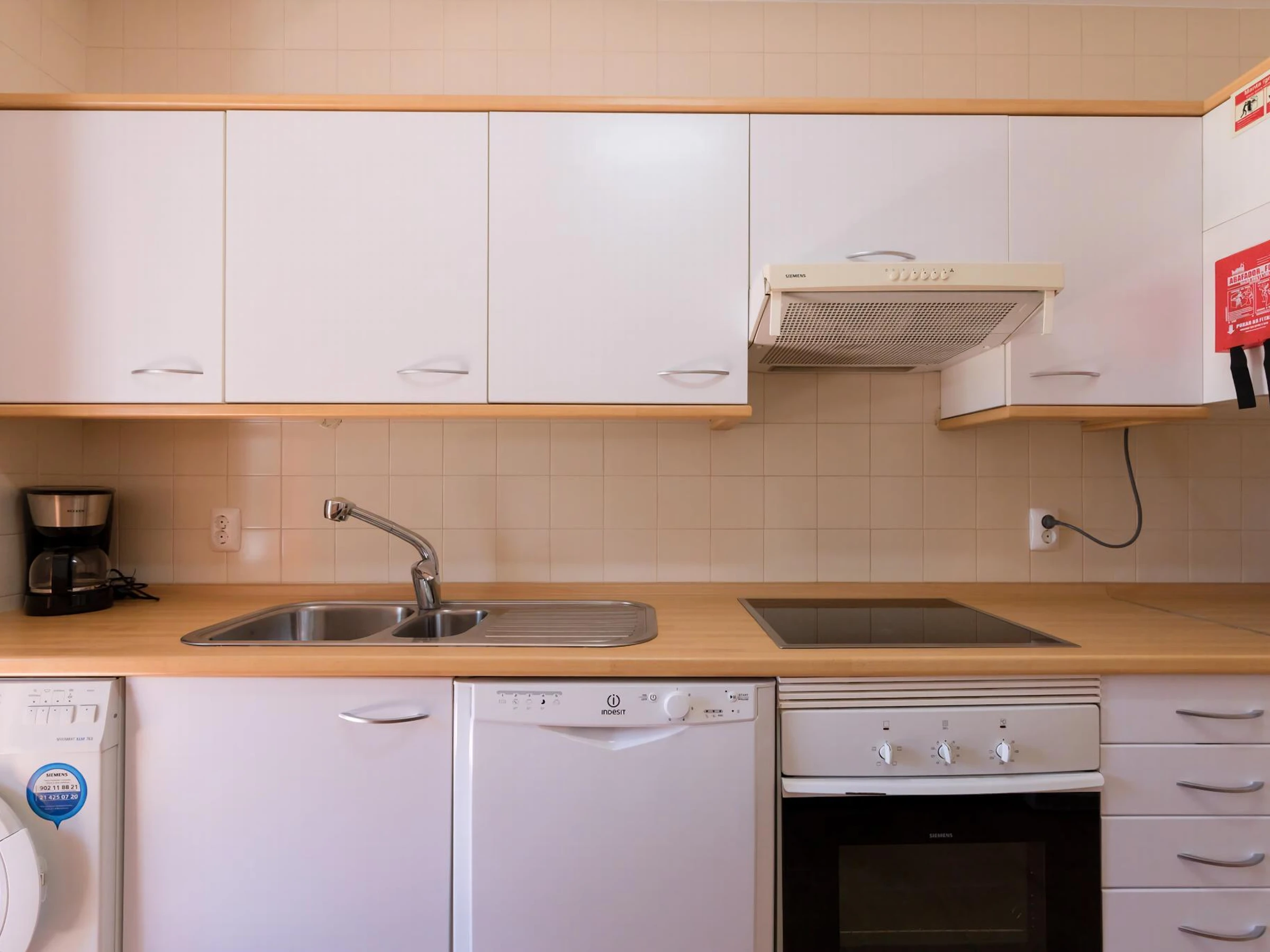 La cuisine, est équipée avec réfrigérateur, micro-ondes, four et lave-vaisselle.