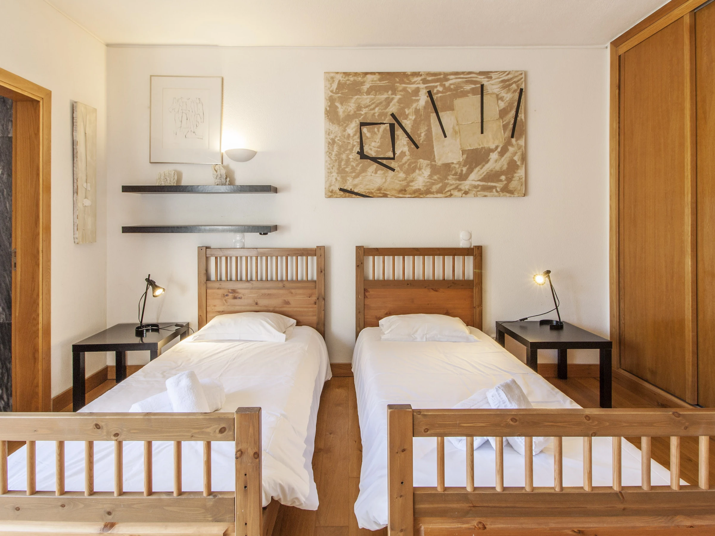 2 lits simples 0.90 m x 2.00 m, 1 lit double