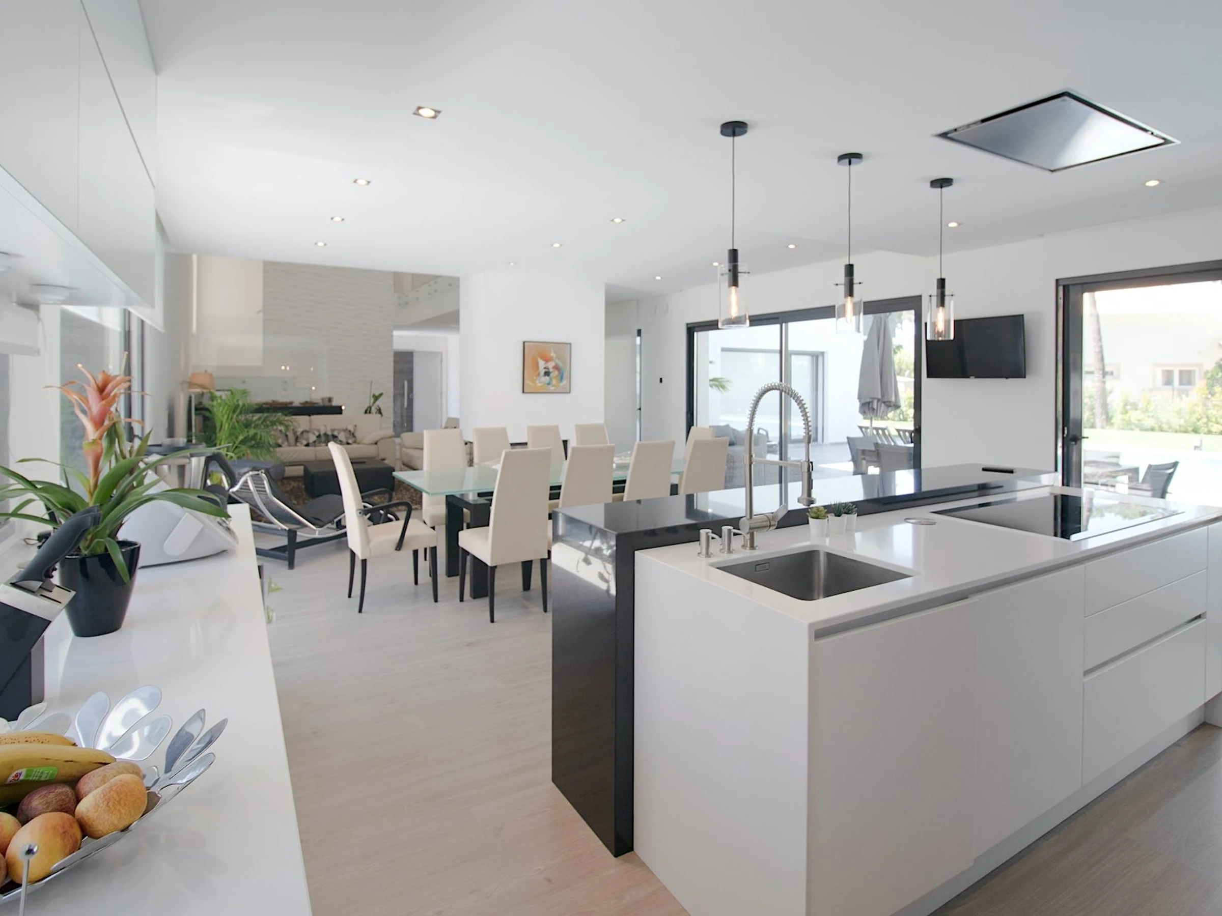 La cuisine, est équipée avec réfrigérateur, micro-ondes, four, congélateur, lave-vaisselle, cafetière, grille pain et bouilloire.