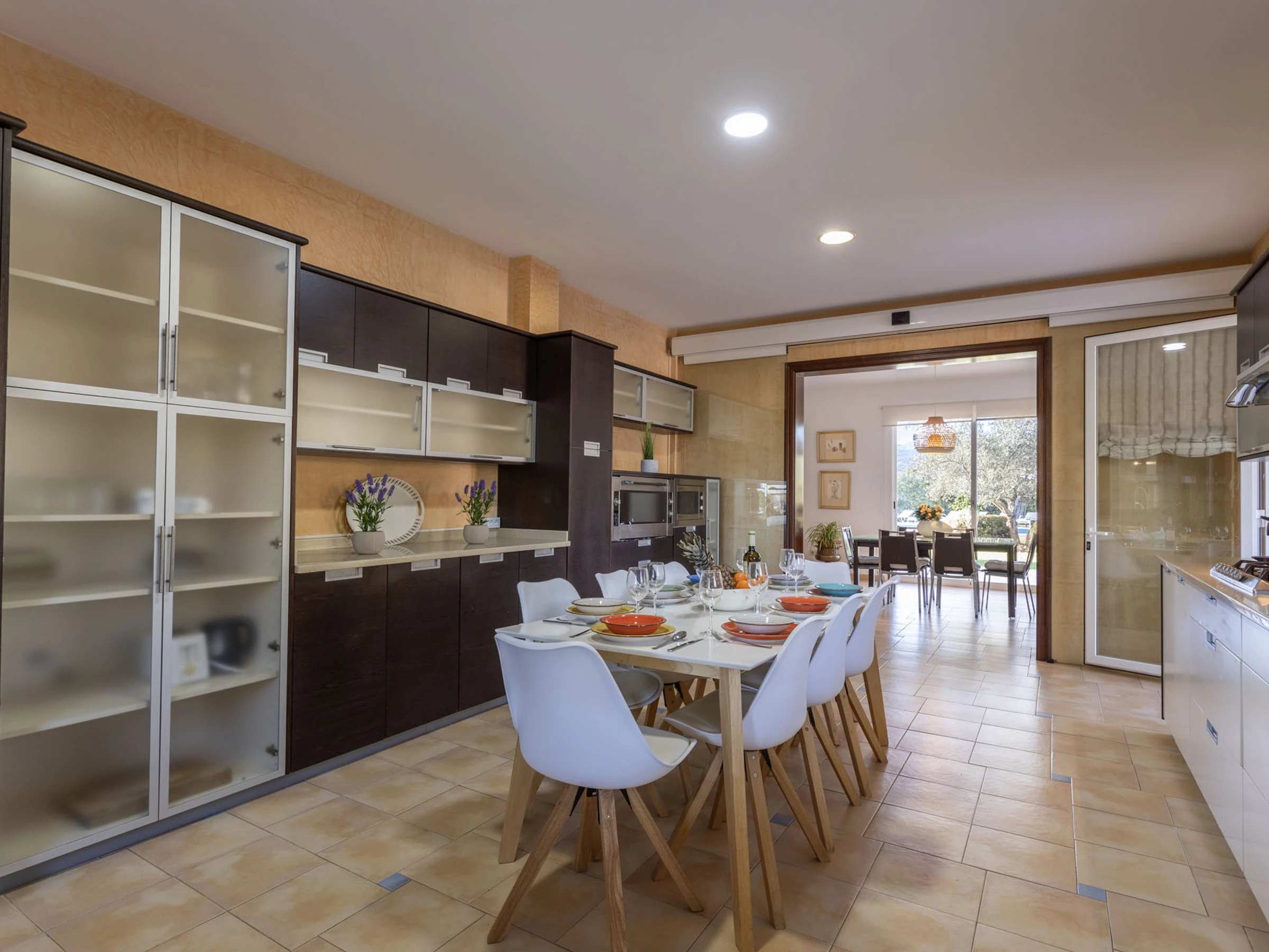 Le rez-de-chaussée comprend un salon, avec son téléviseur panoramique pour profiter des films en famille. Il y a également une salle à manger et une cuisine entièrement équipée. Une chambre double avec sa salle de bain attenante. Vous disposez également d'un toilette. À l'étage supérieur se trouvent trois chambres doubles avec leurs salles de bain attenantes. Toutes les chambres sont équipées de la climatisation, également avec pompe à chaleur. Un grand balcon d'où vous pouvez observer la piscine et le jardin, et au fond, des vues spectaculaires sur les montagnes de Majorque.