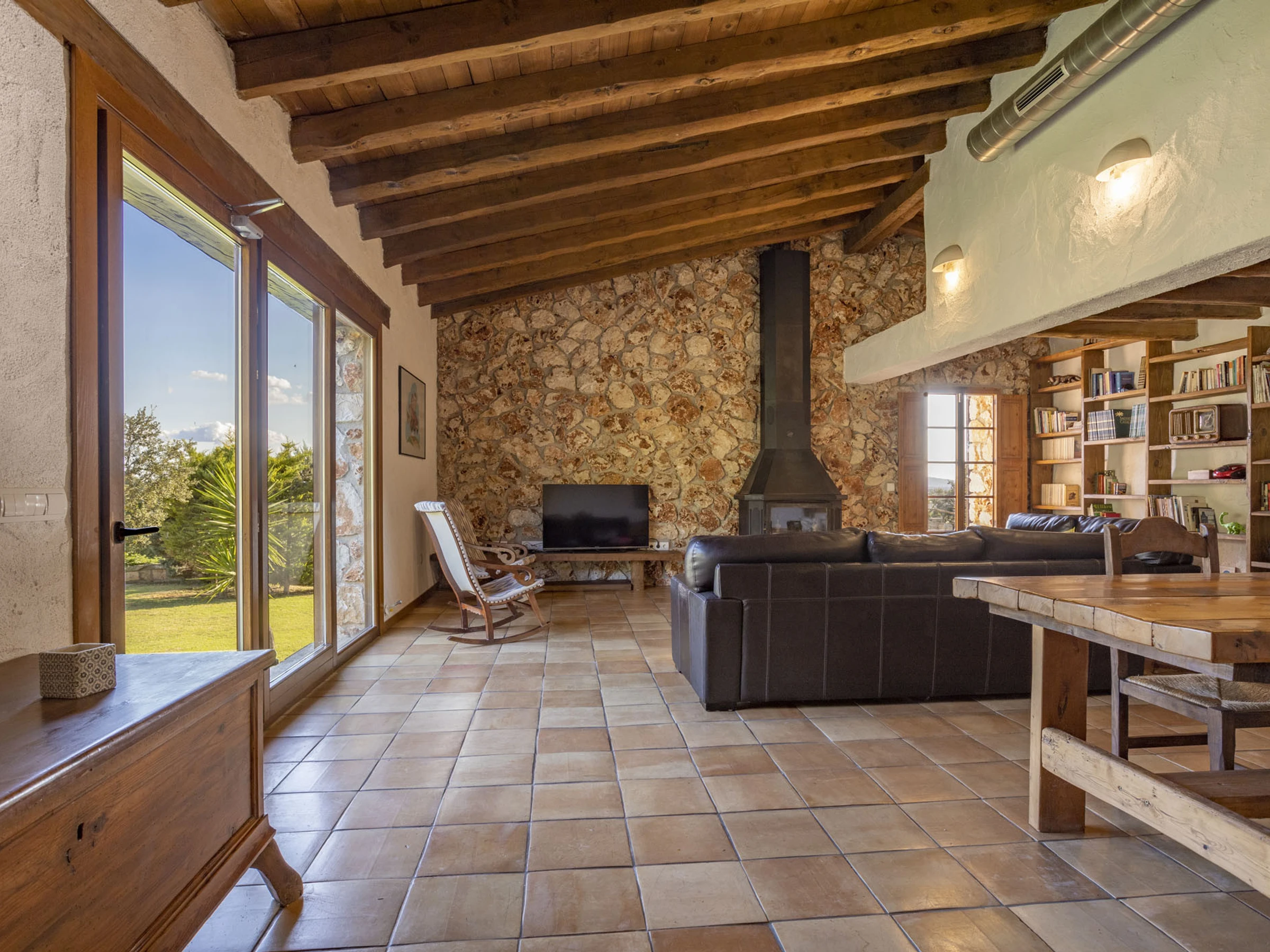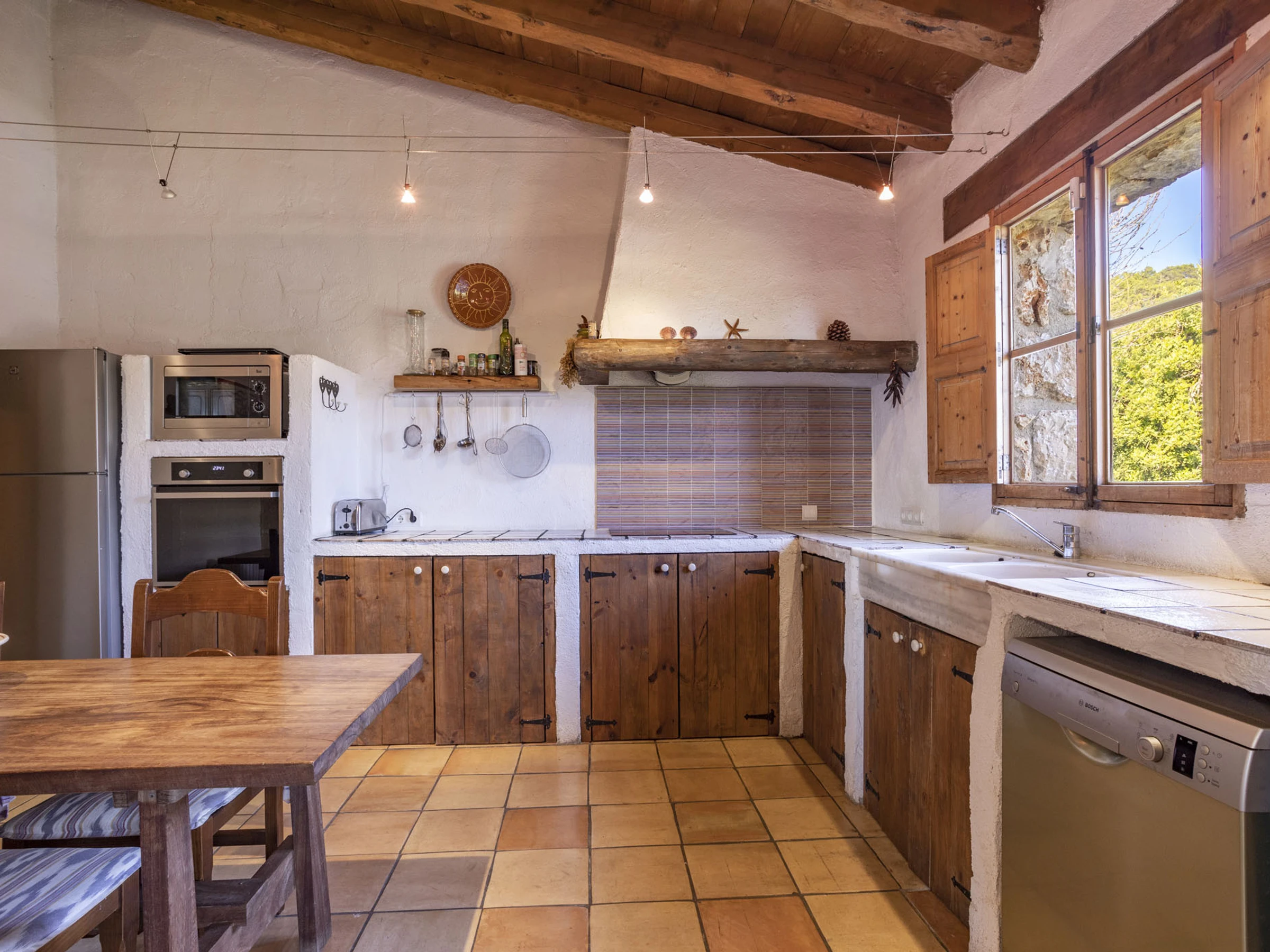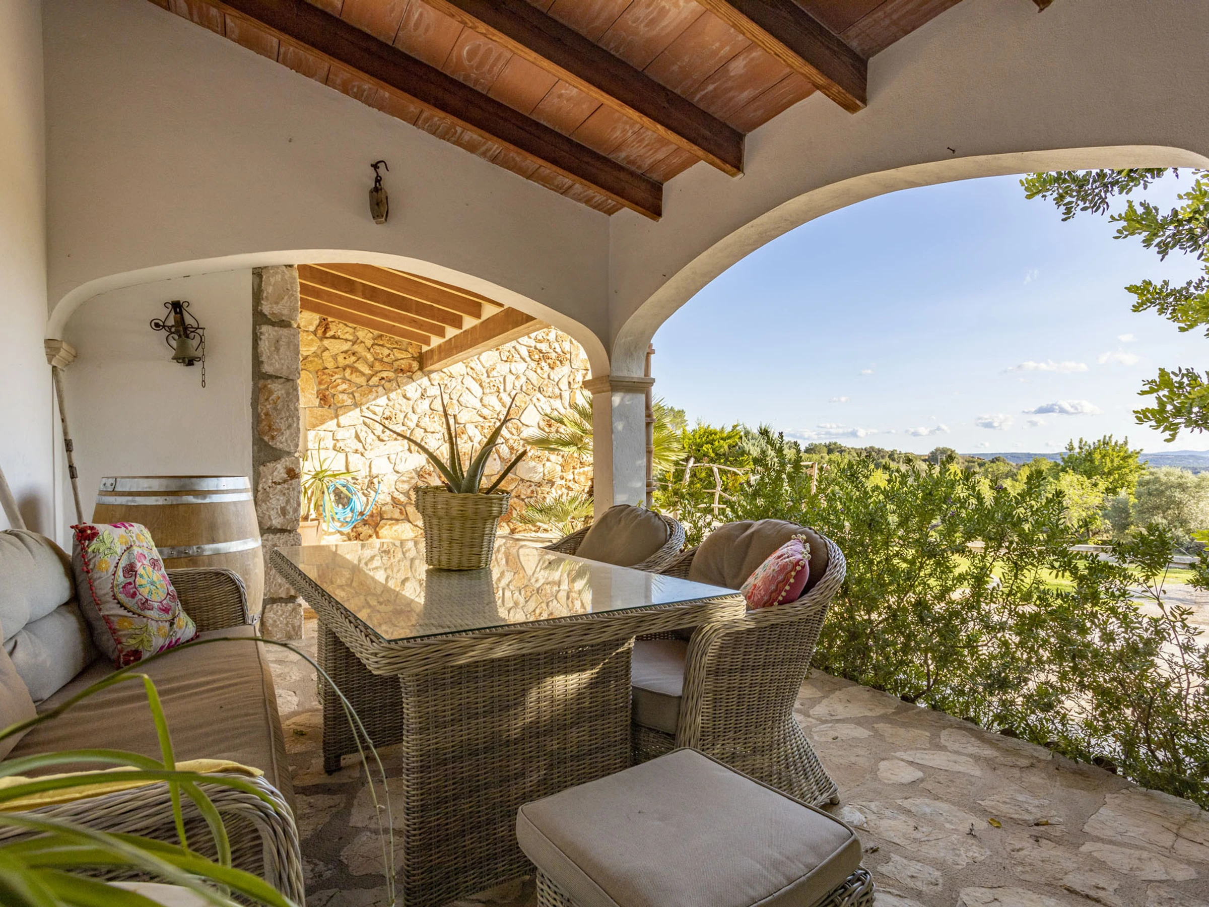 La bonne situation de cette propriété fait qu'en moins de 30 minutes, vous êtes sur les plages du nord de Majorque, également à 25 minutes de la capitale Palma, ainsi qu'à 5 minutes des supermarchés d'Inca. La zone est dans un environnement paysager spectaculaire. Pour les amateurs de cyclisme, cette propriété dispose d'un endroit pour ranger les vélos, les nettoyer et autres. À 2 km d'Inca, l'une des villes les plus importantes de Majorque et où vous pourrez trouver tous les services, bars, restaurants, banques et supermarchés. Cette maison est située au centre de Majorque, loin de l'agitation. La propriété dispose d'une alarme avec des caméras de sécurité à l'entrée de la maison et dans le salon-salle à manger, qui ne sont actives que pendant les mois d'hiver, car les propriétaires y vivent le reste de l'année, pendant le séjour des invités, tous les dispositifs de sécurité sont éteints.