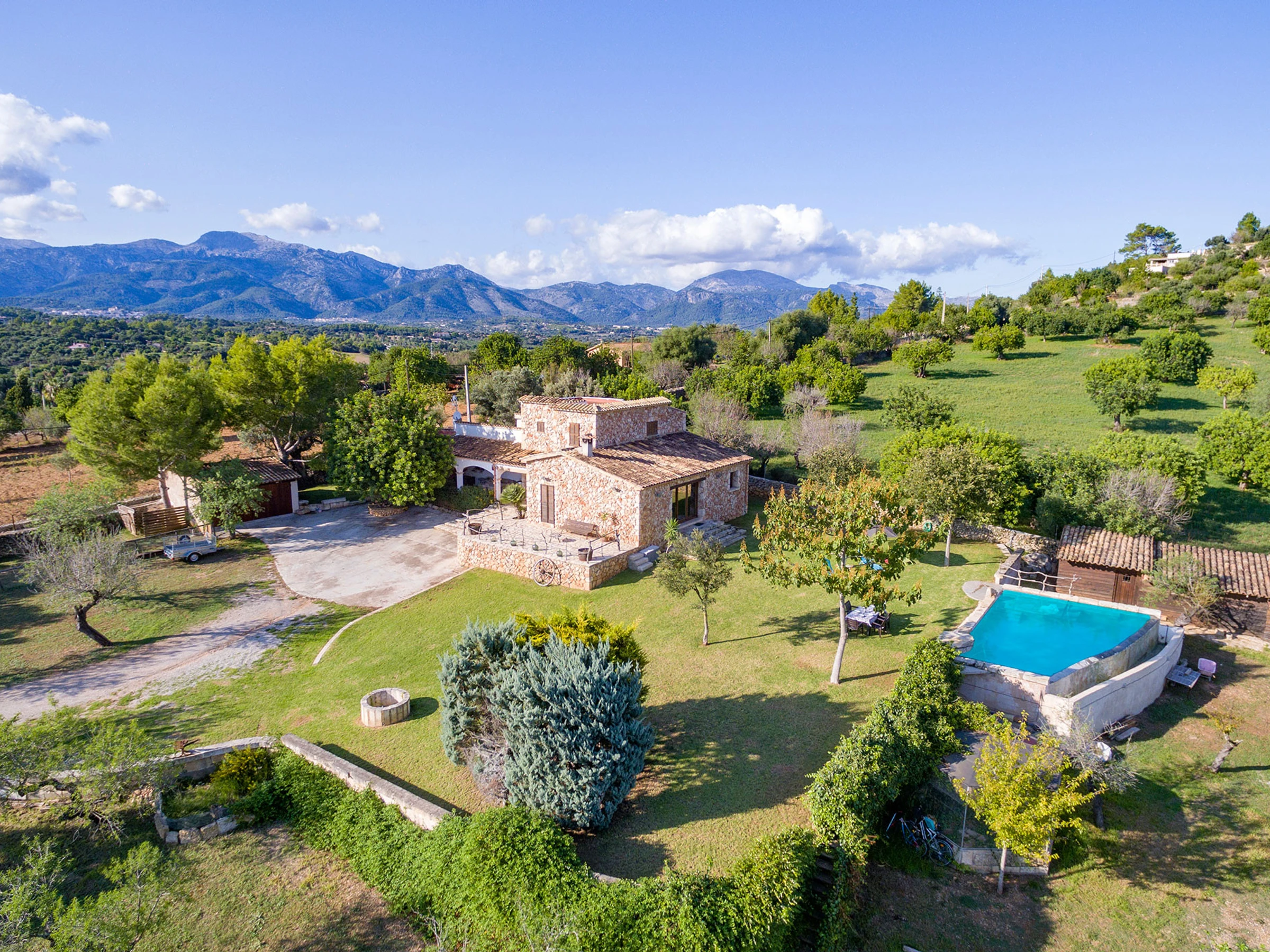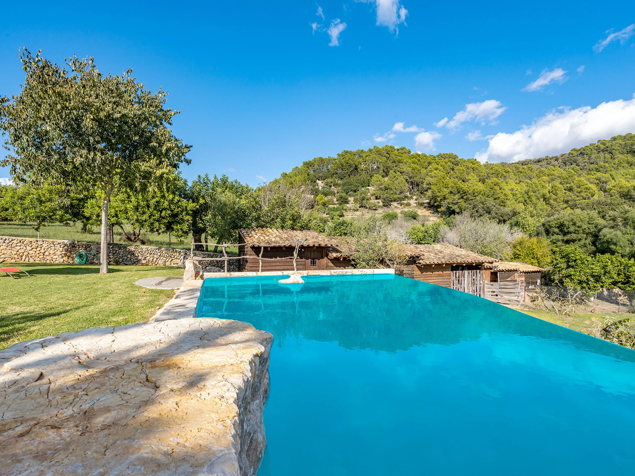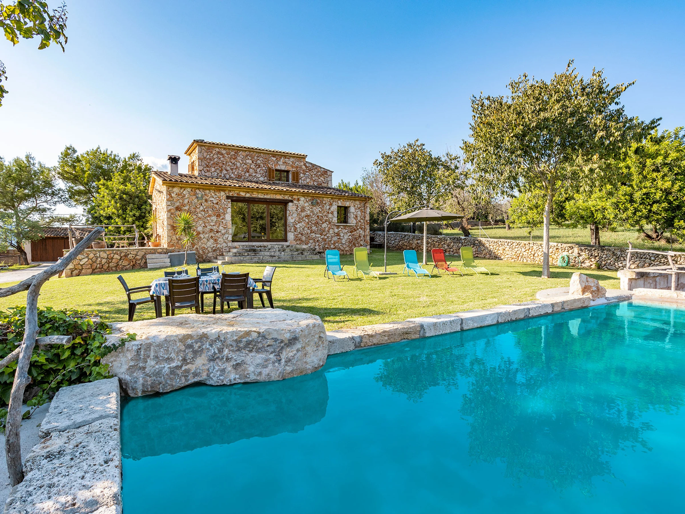 Ce logement est spécial par son environnement naturel, entouré de nature et de tranquillité. La zone où cette maison est située est spectaculaire, pleine de vie et de plaisir pour être en famille ou entre amis. La maison est recouverte de pierre et conserve le style majorquin. La maison dispose de tous les conforts, 3 chambres doubles, 2 salles de bains, 1 salon recouvert de pierre où vous pourrez observer le paysage et aussi la piscine et une cuisine avec tout le nécessaire pour pouvoir cuisiner comme si vous étiez chez vous. Elle dispose de la climatisation et du chauffage dans toutes les chambres. Un grand jardin pour pouvoir profiter avec les enfants, étant contrôlés à tout moment. Vous pouvez également lire un livre sous un arbre en n'écoutant que le son des oiseaux. La piscine d'eau salée se fond dans l'environnement et le paysage de cette propriété. En somme, c'est la maison de vos rêves...