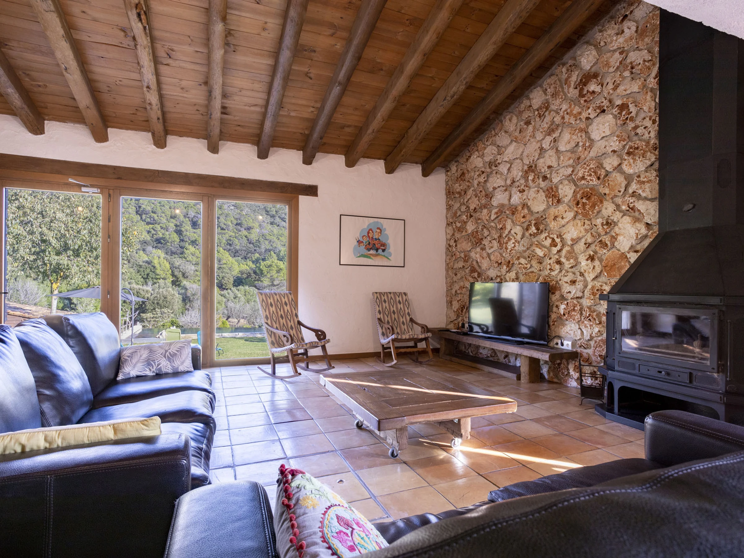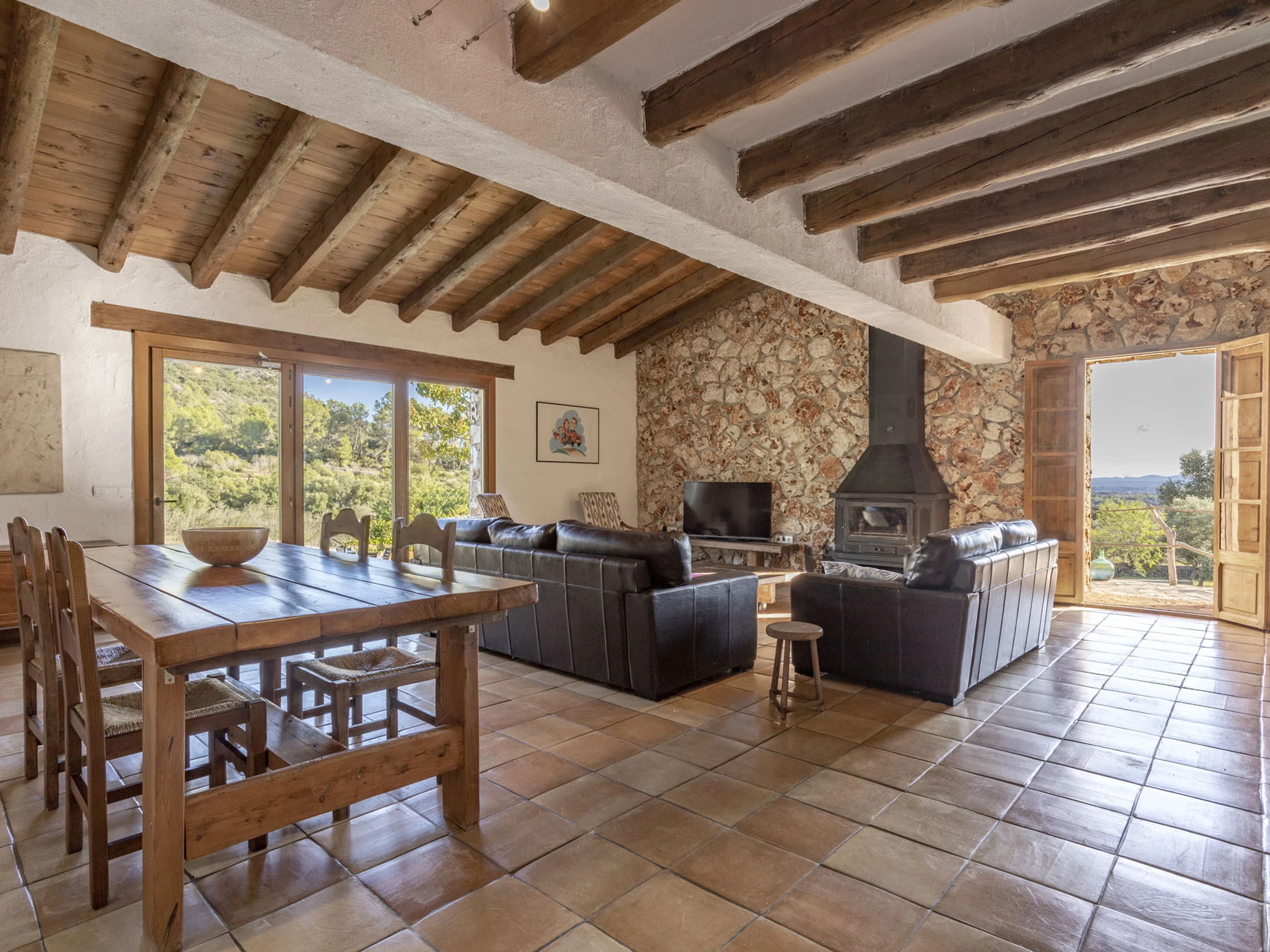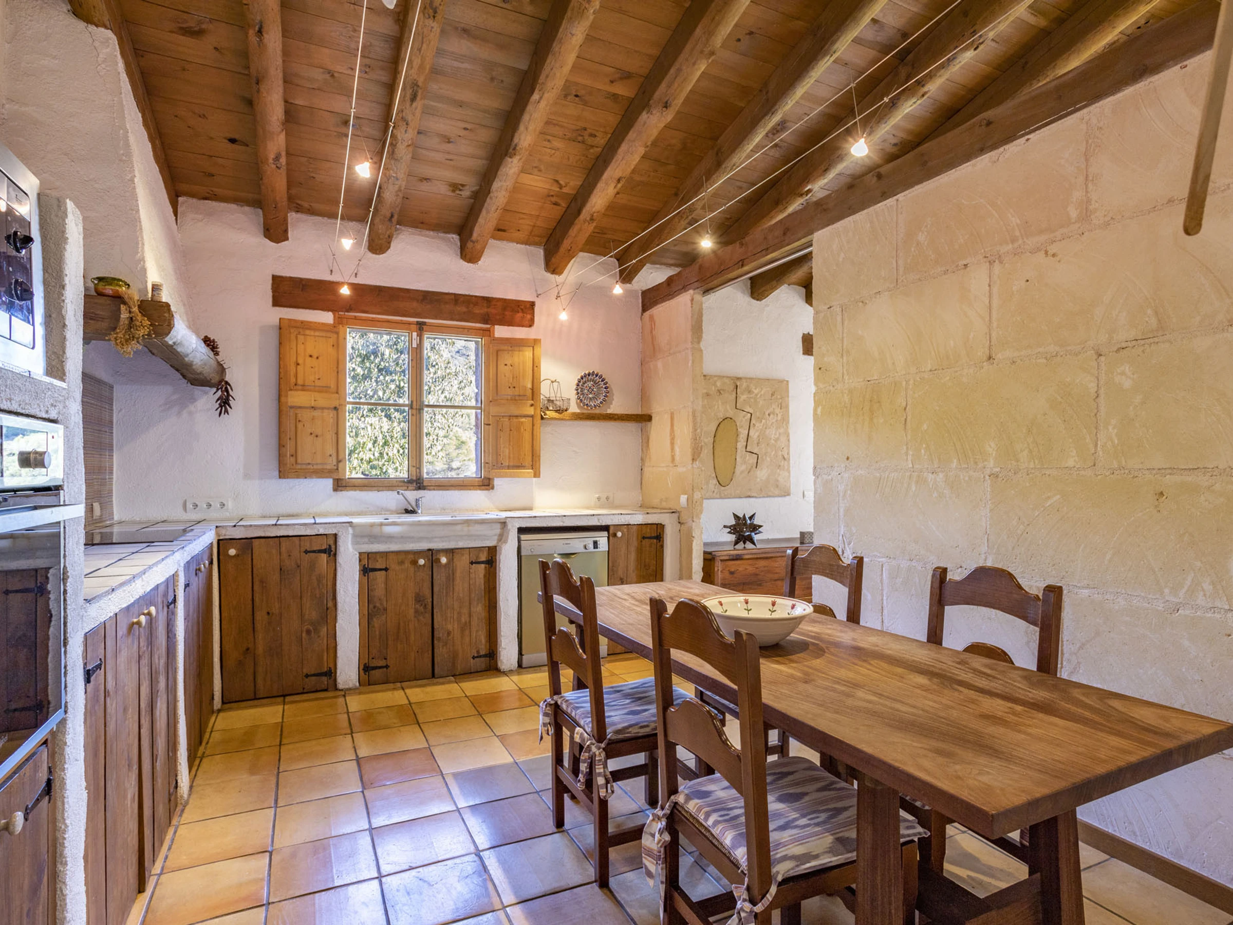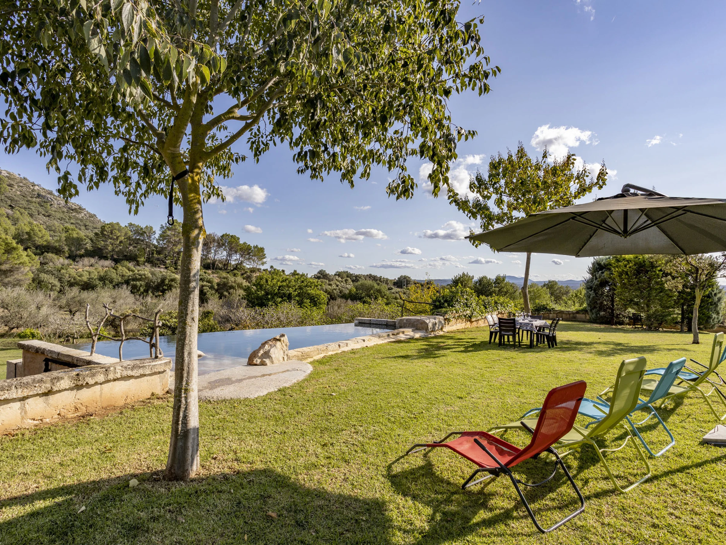 Ce logement est spécial par son environnement naturel, entouré de nature et de tranquillité. La zone où cette maison est située est spectaculaire, pleine de vie et de plaisir pour être en famille ou entre amis. La maison est recouverte de pierre et conserve le style majorquin. La maison dispose de tous les conforts, 3 chambres doubles, 2 salles de bains, 1 salon recouvert de pierre où vous pourrez observer le paysage et aussi la piscine et une cuisine avec tout le nécessaire pour pouvoir cuisiner comme si vous étiez chez vous. Elle dispose de la climatisation et du chauffage dans toutes les chambres. Un grand jardin pour pouvoir profiter avec les enfants, étant contrôlés à tout moment. Vous pouvez également lire un livre sous un arbre en n'écoutant que le son des oiseaux. La piscine d'eau salée se fond dans l'environnement et le paysage de cette propriété. En somme, c'est la maison de vos rêves...
