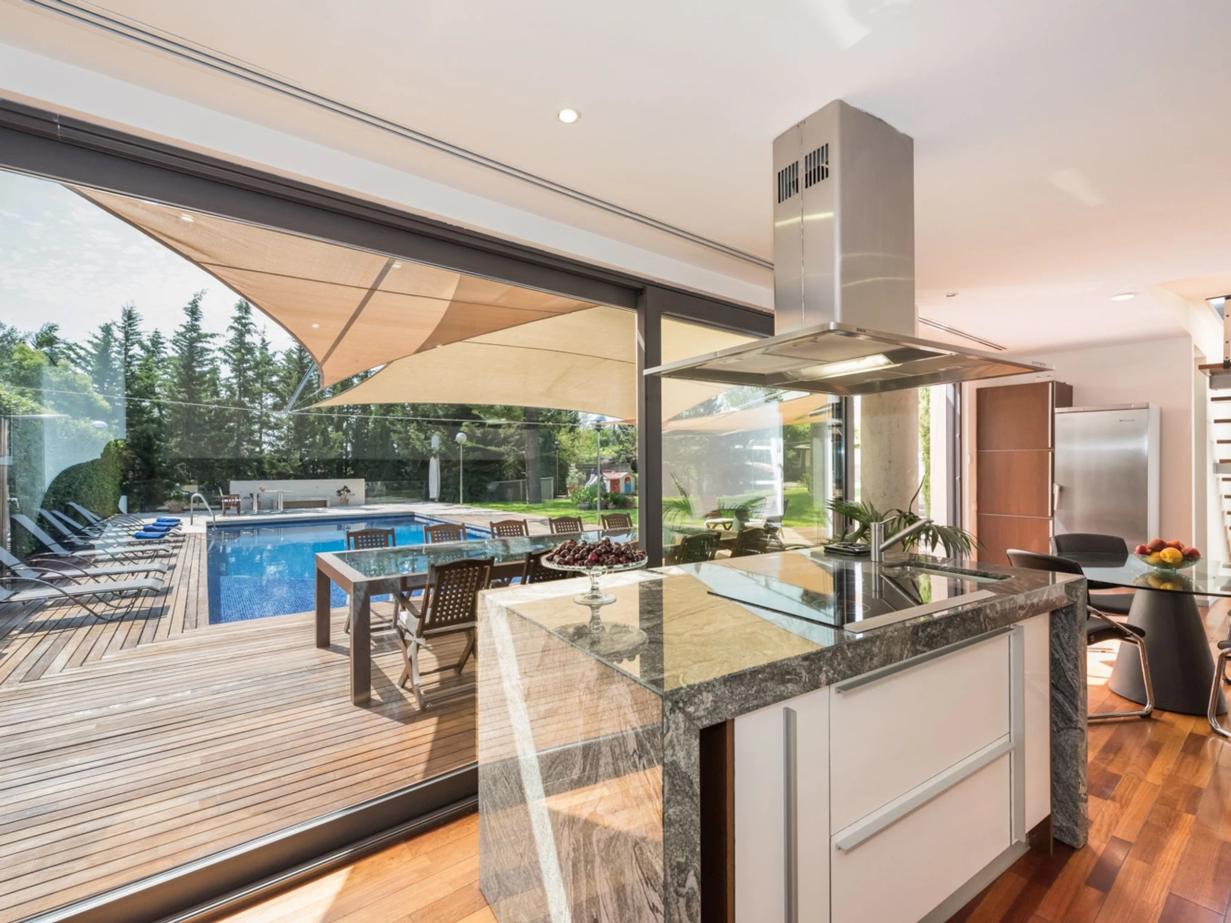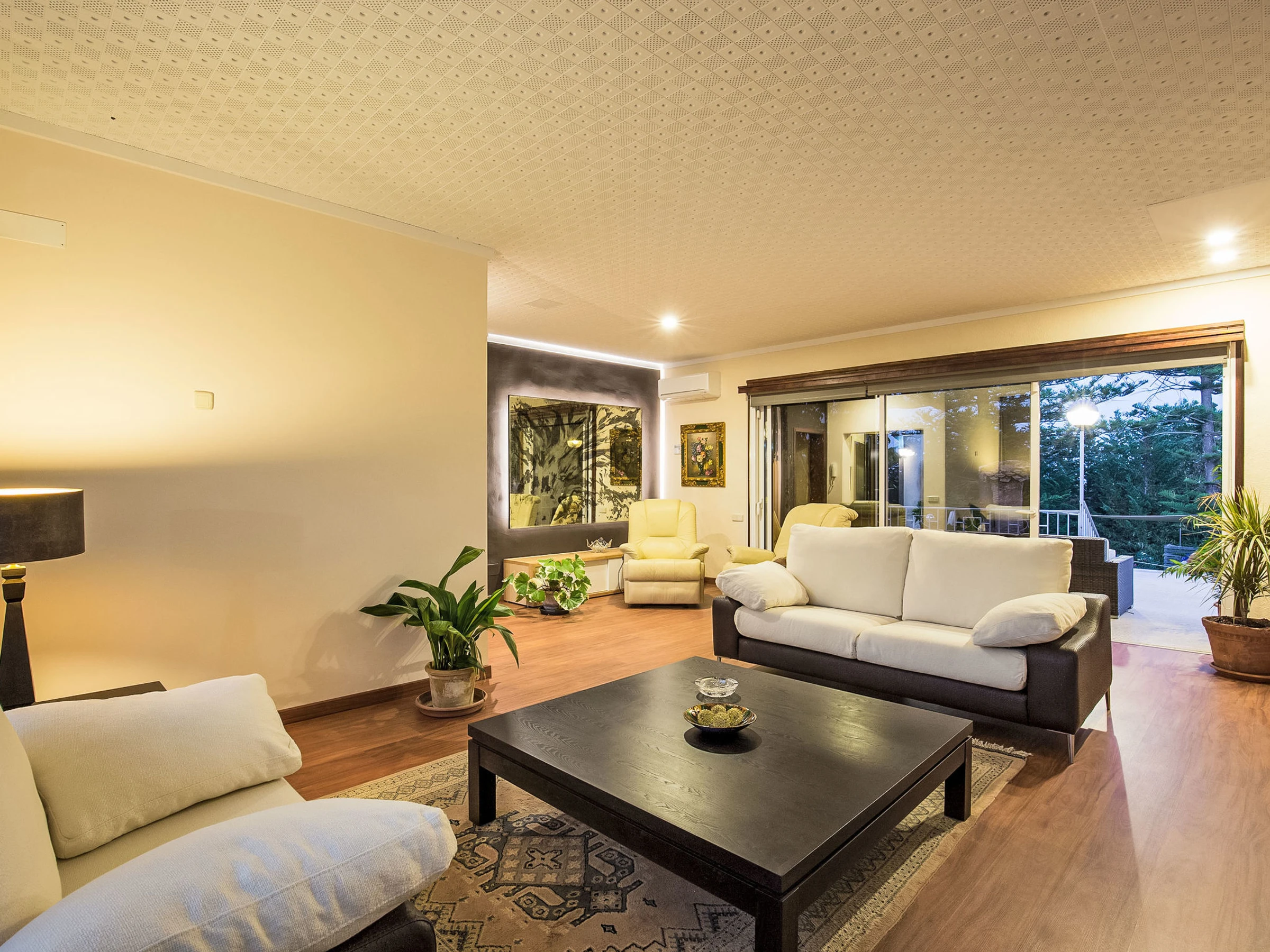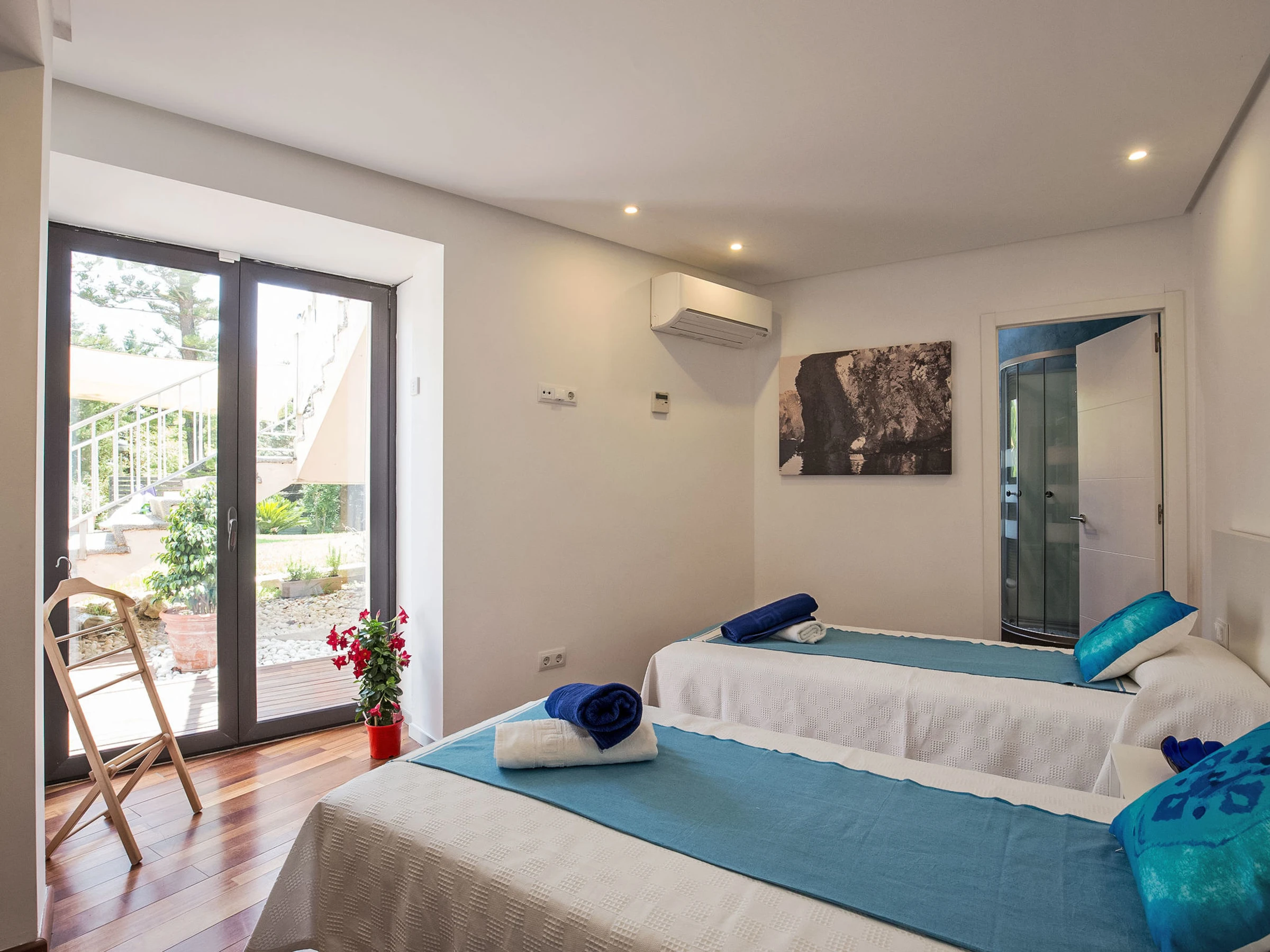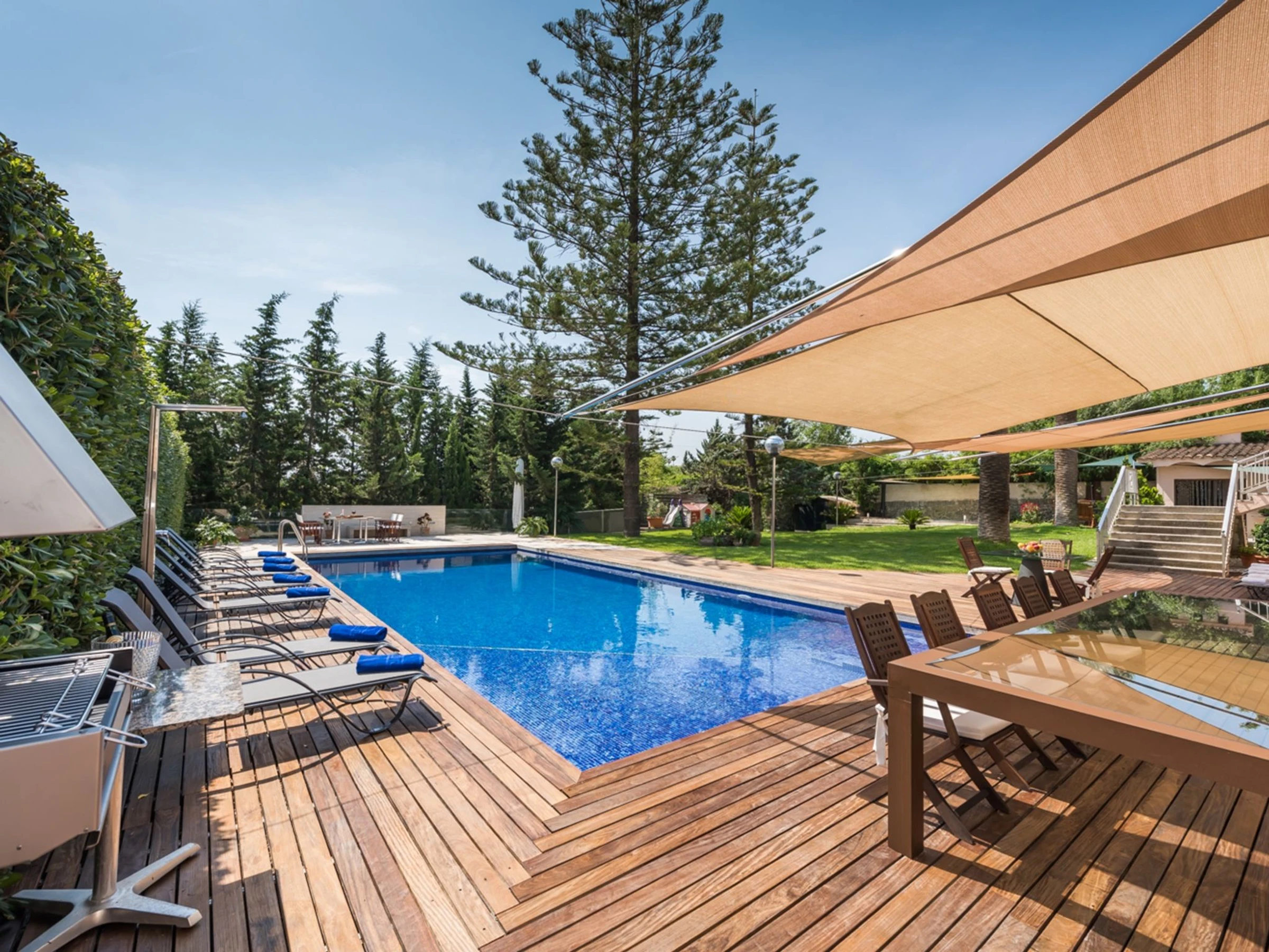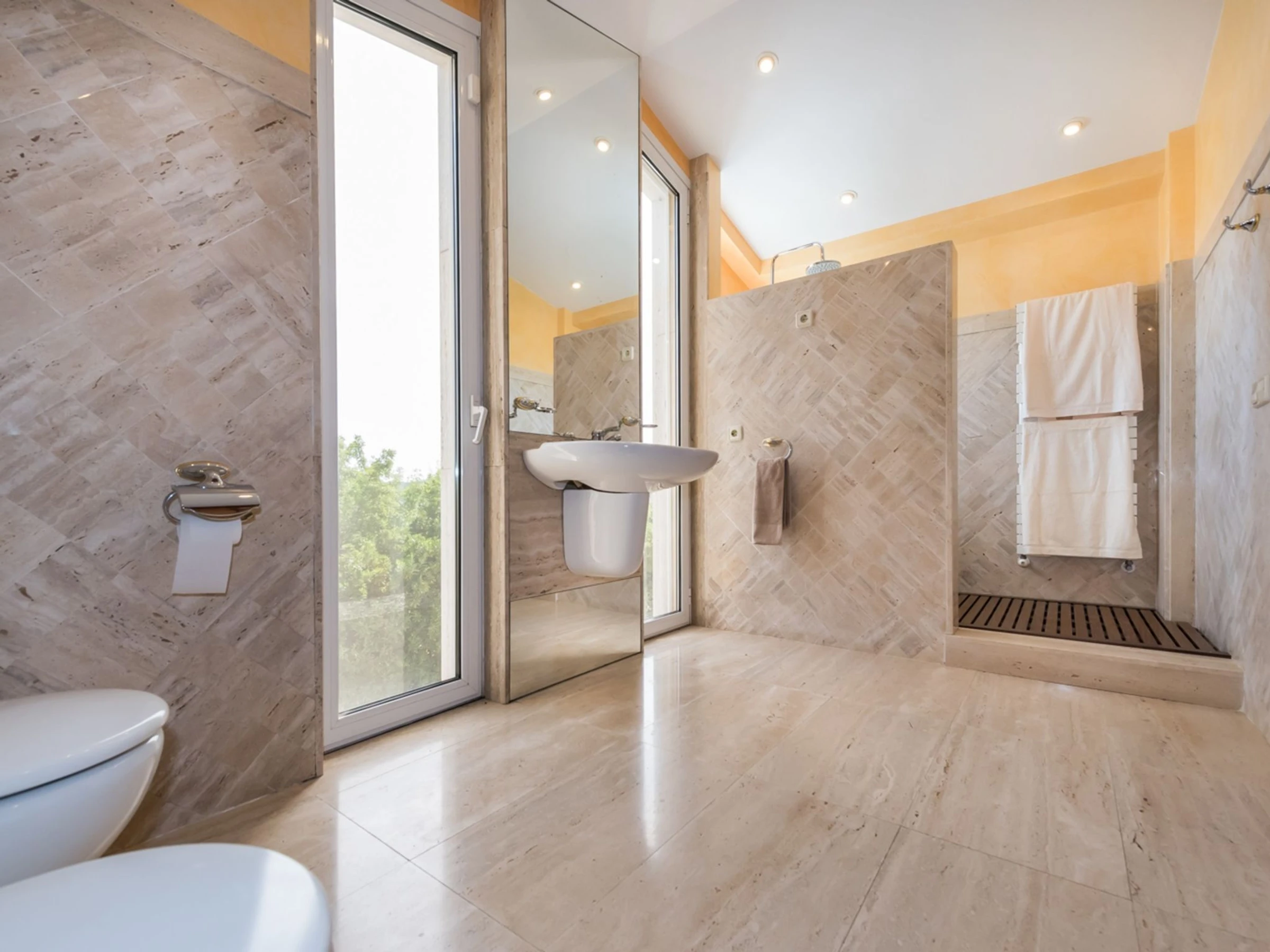"Can Pedro", villa 9 pièces 600 m2 sur 2 niveaux. Logement idéal pour 10 adultes. Spacieux et clair, complètement rénovée, aménagement très moderne et de style: grand séjour ouvert avec porte coulissante, baie vitrée avec TV (satellite), Télévision numérique, écran plat, air-conditionné et chauffage à air chaud. Sortie sur le jardinet. 1 grande chambre double avec porte coulissante, baie vitrée Dressing avec 1 grand-lit (180 cm), douche/bidet/WC, air-conditionné et chauffage à air chaud. Sortie sur le jardinet. 1 grande chambre double avec baie vitrée avec 2 lits (90 cm), bain/bidet/WC, double vasque, air-conditionné et chauffage à air chaud. Sortie sur le jardinet. 1 grande chambre double avec baie vitrée avec 2 lits (90 cm), air-conditionné et chauffage à air chaud. 1 grande chambre double avec baie vitrée avec 1 grand-lit (150 cm), douche/WC, air-conditionné et chauffage à air chaud. 1 grande chambre double avec baie vitrée avec 2 lits (90 cm), air-conditionné et chauffage à air chaud. Grand bureau ouvert avec baie vitrée avec air-conditionné et chauffage à air chaud. Sortie sur le jardinet. Douche/WC. À l'étage inférieur: (échelle) grande salle à manger ouverte avec porte coulissante, baie vitrée avec air-conditionné et chauffage à air chaud. Sortie sur le jardinet, sur la piscine. 1 chambre double avec porte coulissante, baie vitrée avec 2 lits (90 cm), douche/WC, air-conditionné et chauffage à air chaud. Sortie sur le jardinet, sur la piscine. Cuisine/séjour (four, lave-vaisselle, 4 plaques à induction, grille-pain, bouilloire électrique, micro-ondes, congélateur, cafetière électrique, ilot de cuisine) avec table pour les repas. WC séparé. Grand jardinet, pelouse. Meubles de terrasse, mobilier de balcon, barbecue, chaises longues. Très belle vue sur les montagnes et les alentours. A disposition: lave-linge, fer à repasser, chaise haute pour enfant, lit bébé, sèche-cheveux. Internet (Connexion WIFI, gratuit). Place de parking (couvert). [hidden] // Reg. Nr.: ESFCTU[hidden][hidden][hidden]00[hidden]7