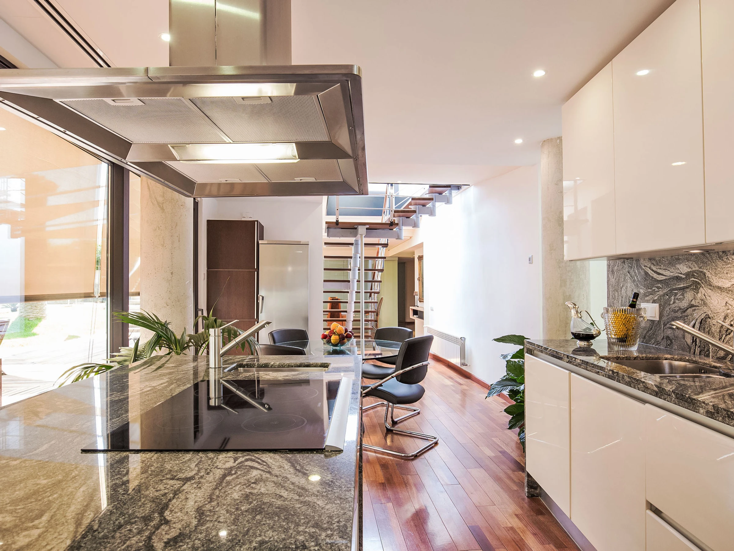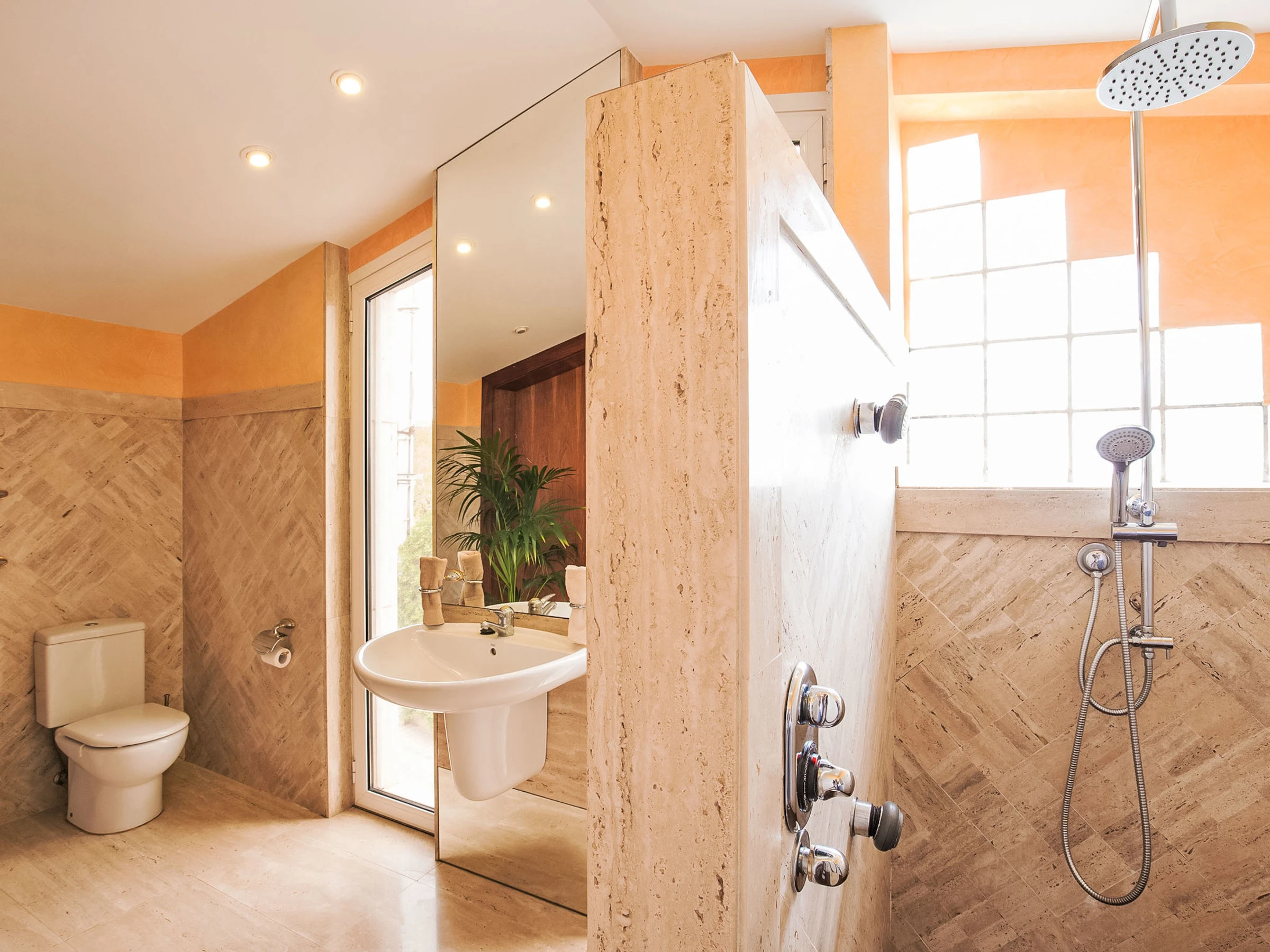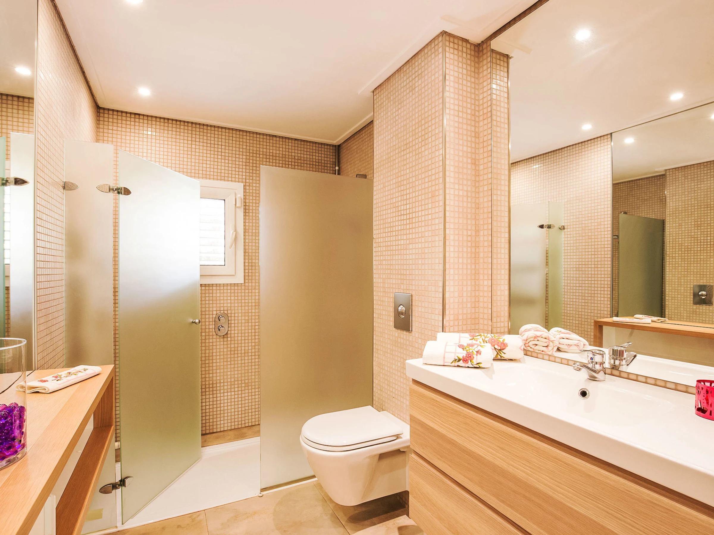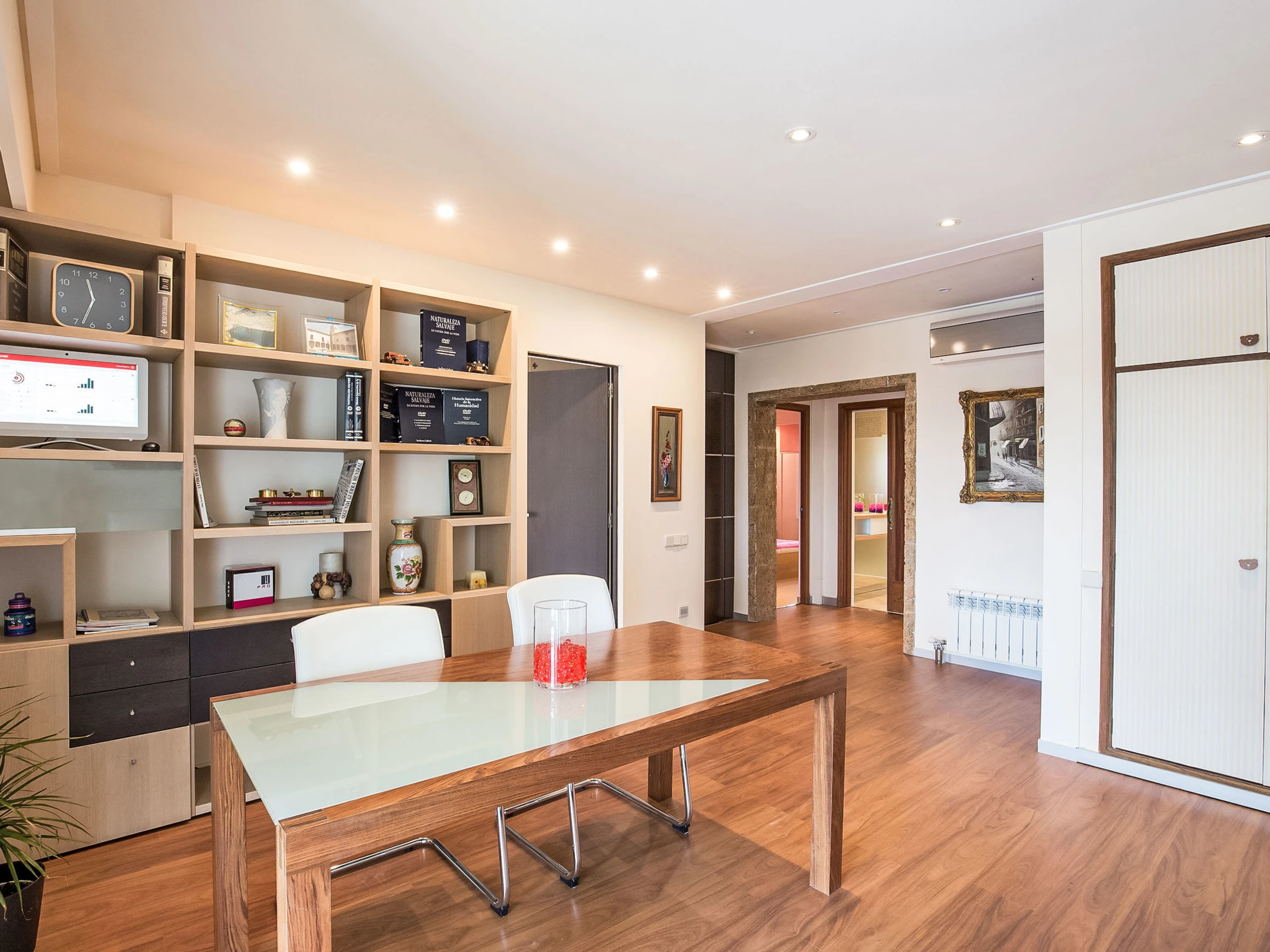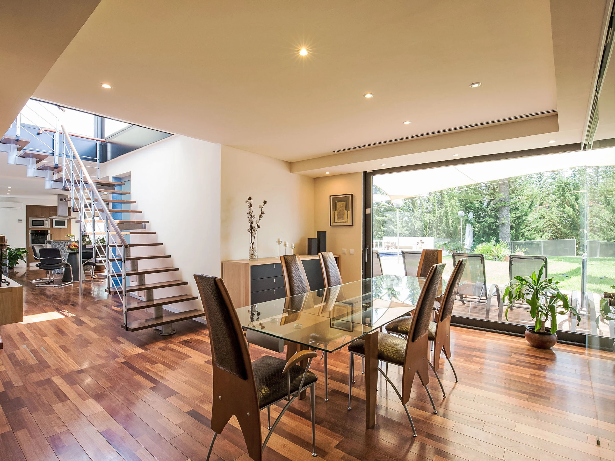 "Can Pedro", villa 9 pièces 600 m2 sur 2 niveaux. Logement idéal pour 10 adultes. Spacieux et clair, complètement rénovée, aménagement très moderne et de style: grand séjour ouvert avec porte coulissante, baie vitrée avec TV (satellite), Télévision numérique, écran plat, air-conditionné et chauffage à air chaud. Sortie sur le jardinet. 1 grande chambre double avec porte coulissante, baie vitrée Dressing avec 1 grand-lit (180 cm), douche/bidet/WC, air-conditionné et chauffage à air chaud. Sortie sur le jardinet. 1 grande chambre double avec baie vitrée avec 2 lits (90 cm), bain/bidet/WC, double vasque, air-conditionné et chauffage à air chaud. Sortie sur le jardinet. 1 grande chambre double avec baie vitrée avec 2 lits (90 cm), air-conditionné et chauffage à air chaud. 1 grande chambre double avec baie vitrée avec 1 grand-lit (150 cm), douche/WC, air-conditionné et chauffage à air chaud. 1 grande chambre double avec baie vitrée avec 2 lits (90 cm), air-conditionné et chauffage à air chaud. Grand bureau ouvert avec baie vitrée avec air-conditionné et chauffage à air chaud. Sortie sur le jardinet. Douche/WC. À l'étage inférieur: (échelle) grande salle à manger ouverte avec porte coulissante, baie vitrée avec air-conditionné et chauffage à air chaud. Sortie sur le jardinet, sur la piscine. 1 chambre double avec porte coulissante, baie vitrée avec 2 lits (90 cm), douche/WC, air-conditionné et chauffage à air chaud. Sortie sur le jardinet, sur la piscine. Cuisine/séjour (four, lave-vaisselle, 4 plaques à induction, grille-pain, bouilloire électrique, micro-ondes, congélateur, cafetière électrique, ilot de cuisine) avec table pour les repas. WC séparé. Grand jardinet, pelouse. Meubles de terrasse, mobilier de balcon, barbecue, chaises longues. Très belle vue sur les montagnes et les alentours. A disposition: lave-linge, fer à repasser, chaise haute pour enfant, lit bébé, sèche-cheveux. Internet (Connexion WIFI, gratuit). Place de parking (couvert). [hidden] // Reg. Nr.: ESFCTU[hidden][hidden][hidden]00[hidden]7