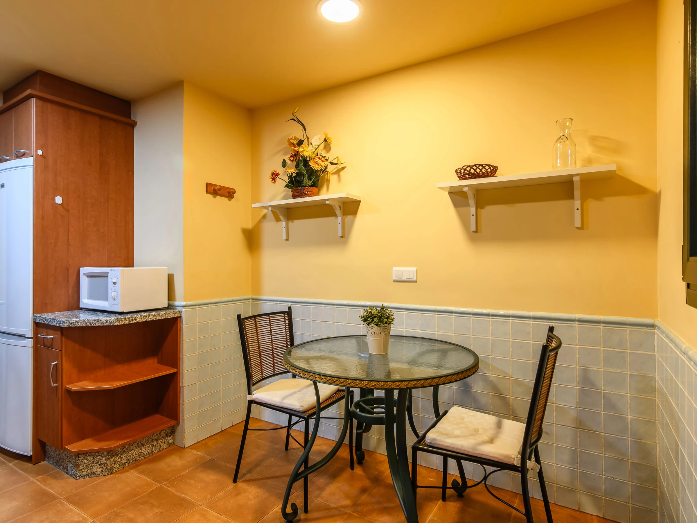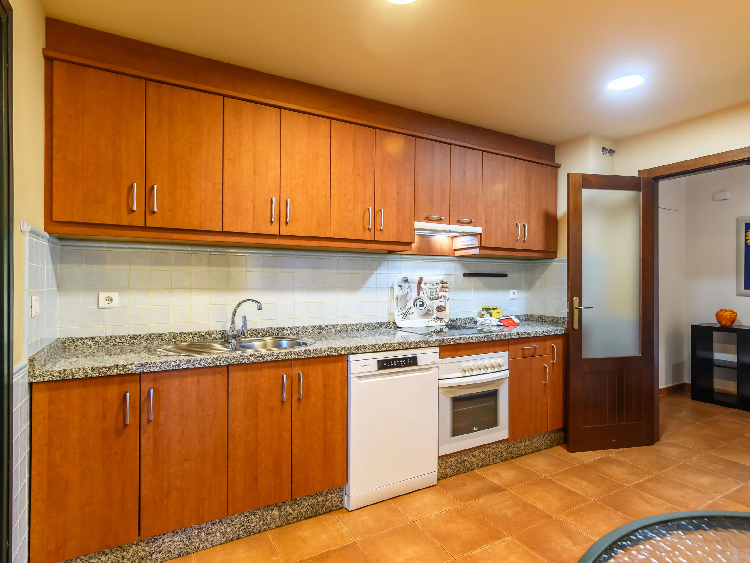La cuisine indépendante, à vitrocéramique, est équipée avec réfrigérateur, micro-ondes, four, congélateur, lave-vaisselle, vaisselle/couverts, ustensiles/cuisine, cafetière, grille pain et presse-agrumes.