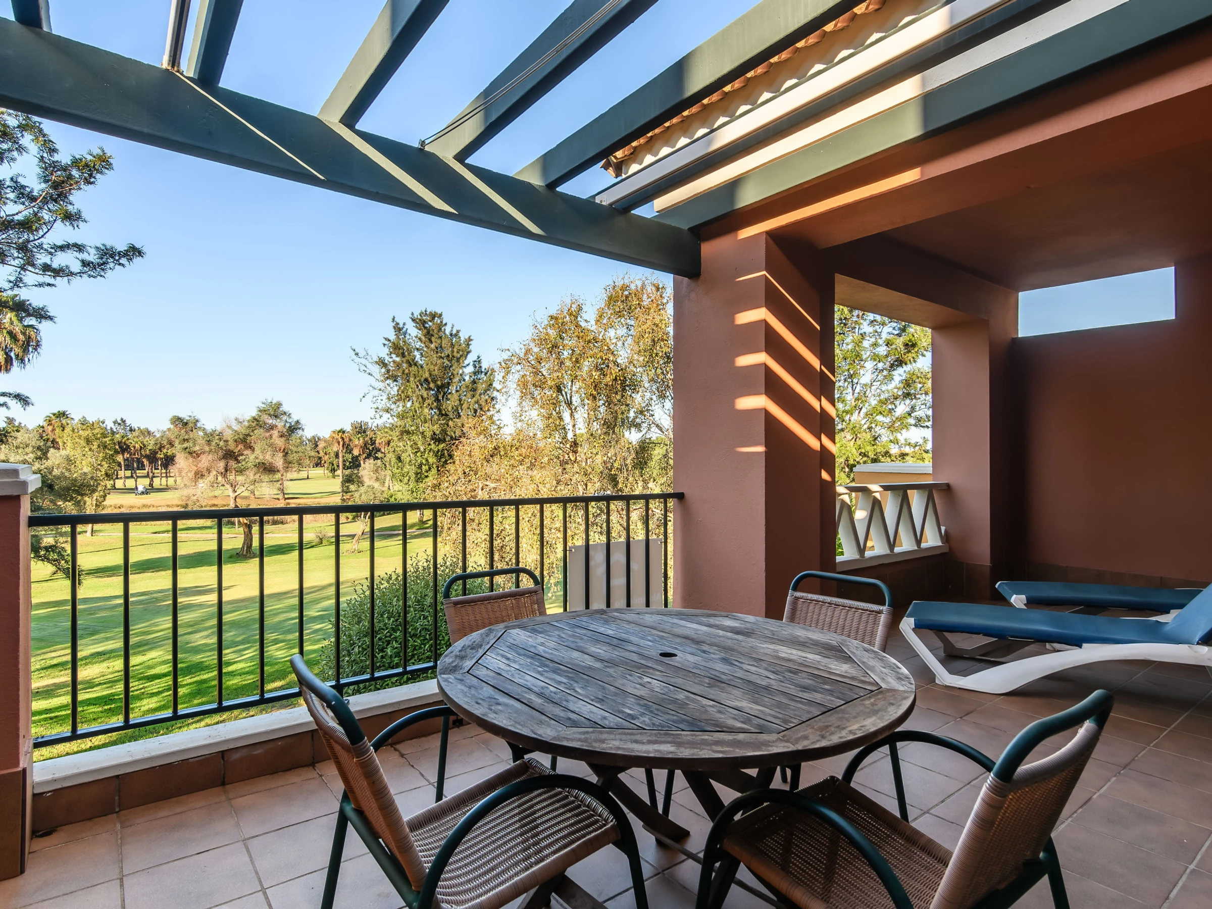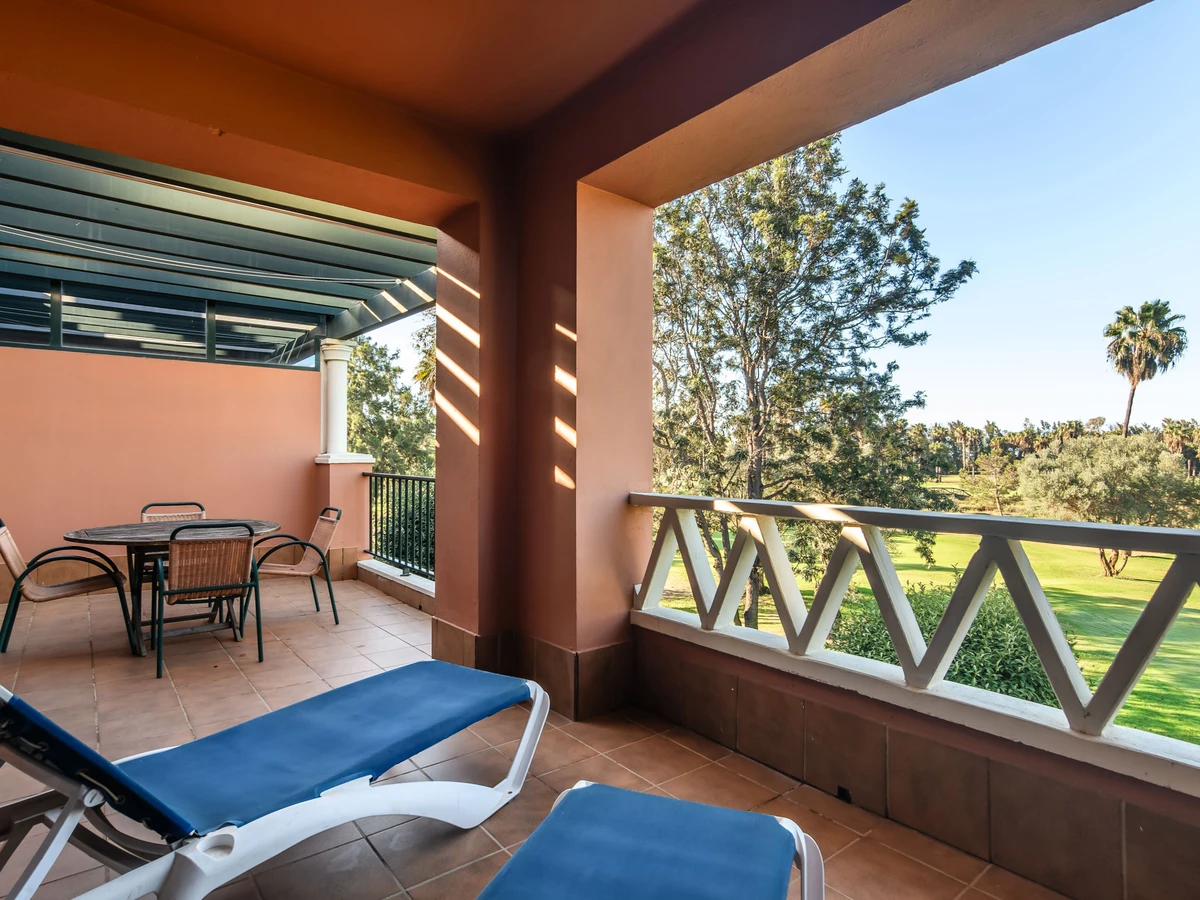 Logement de 100 m² confortable et totalement équipé, situé en première ligne de golf, avec vue sur le jardin et le champ de golf.