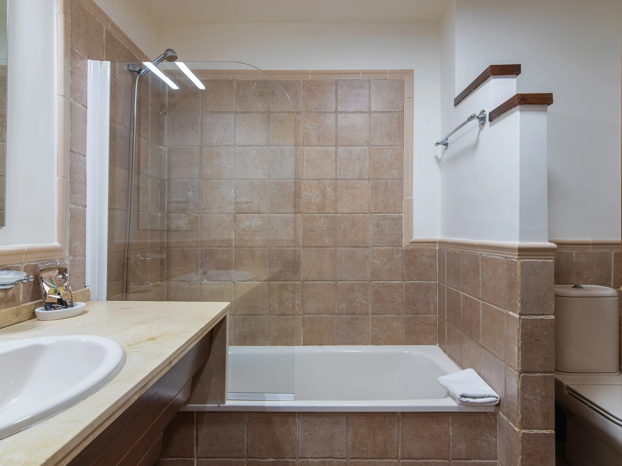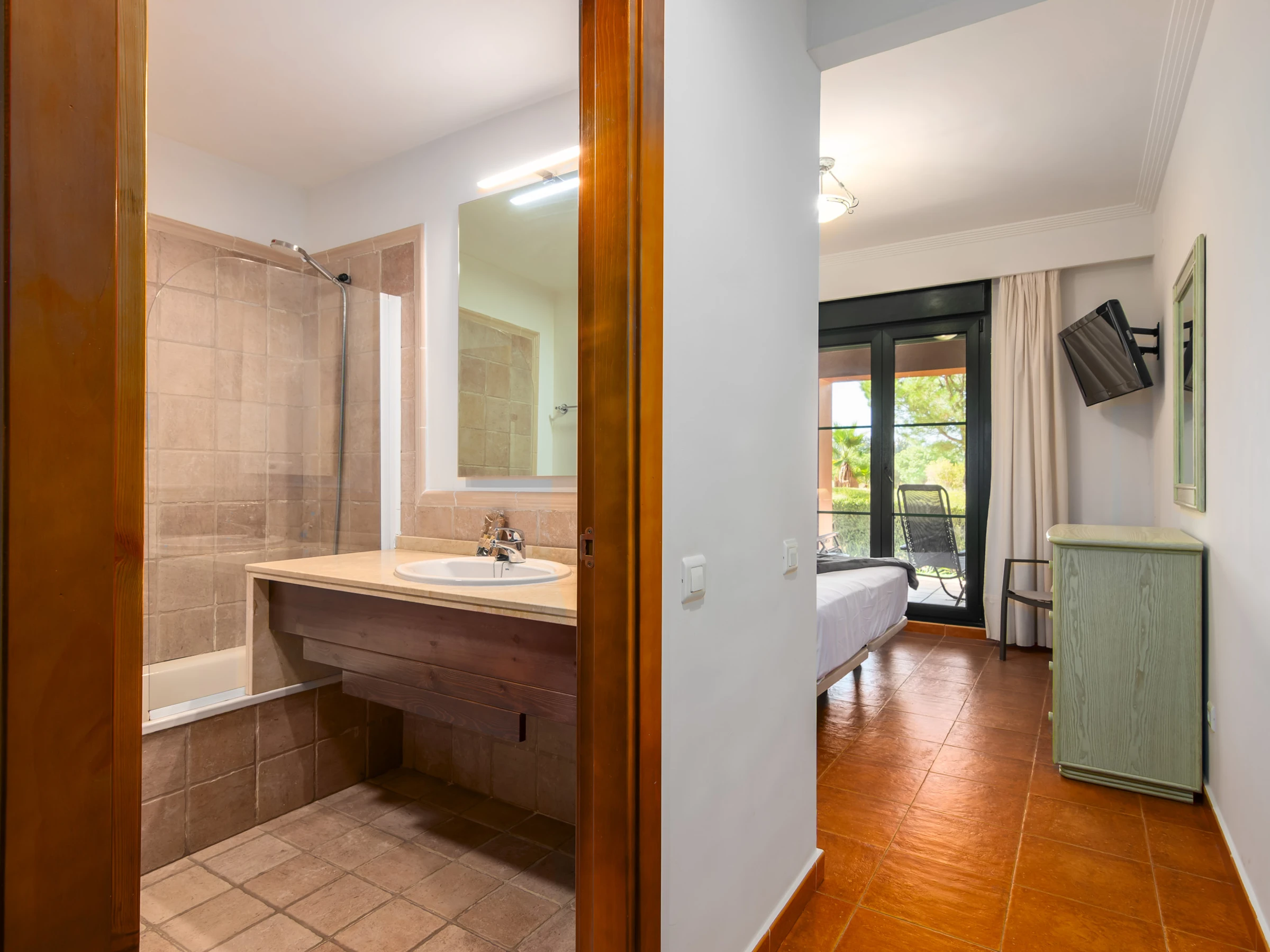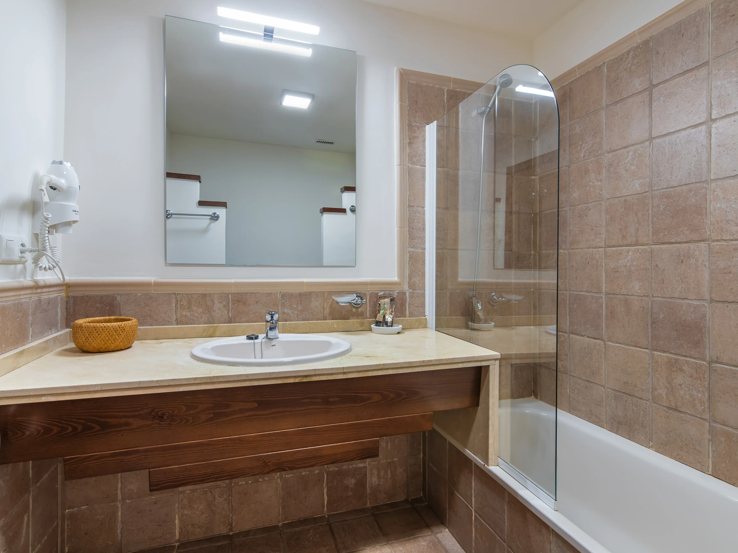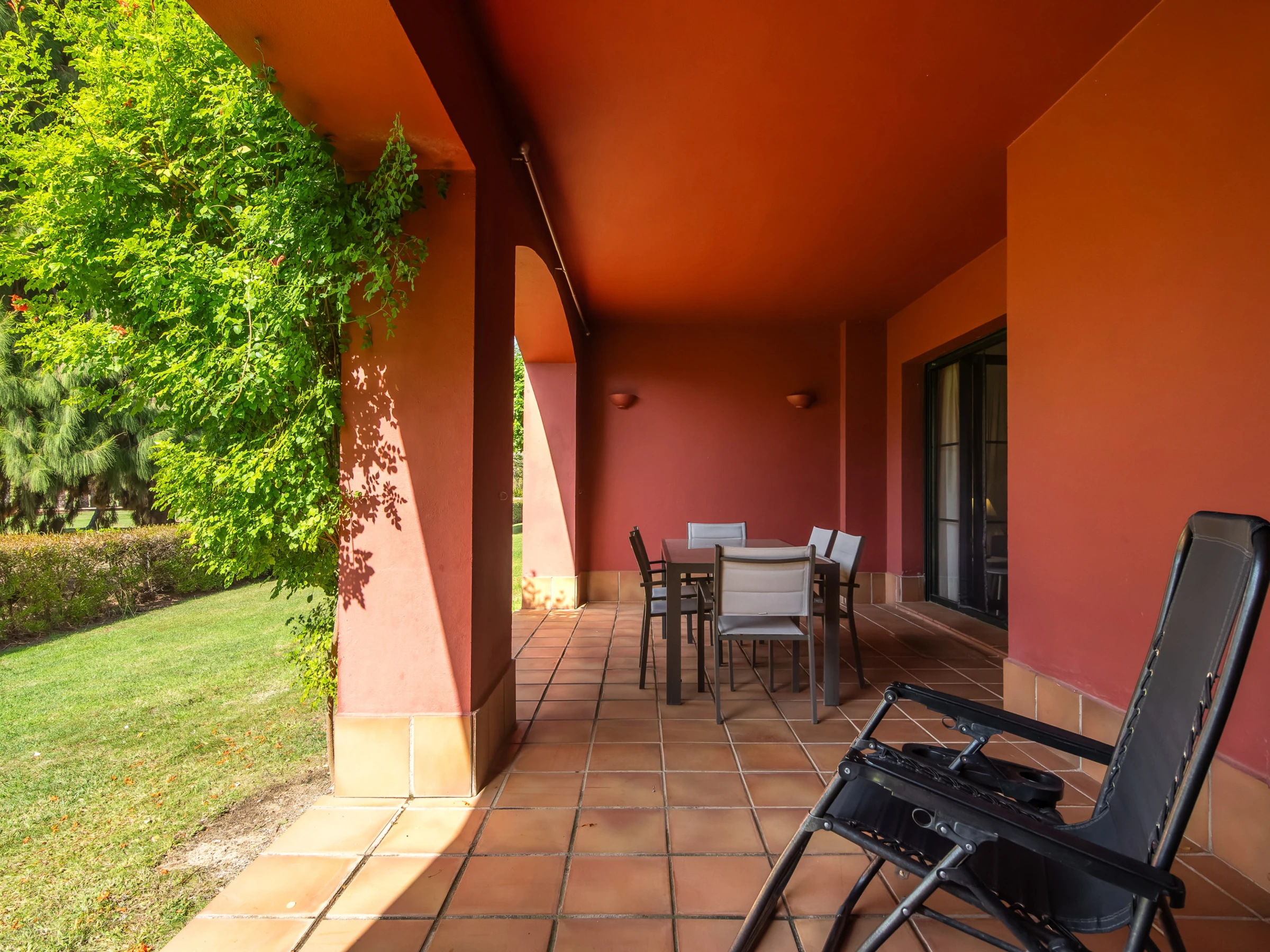 Elle dispose de jardin, mobilier de jardin, 40 m² de terrasse, lave-linge, fer à repasser, accès internet (wifi), sèche-cheveux, zone pour les enfants, terrain de tennis, chauffage pompe à chaleur, climatisation, piscine collective, parking extérieur même bâtiment, 1 Télévision.
