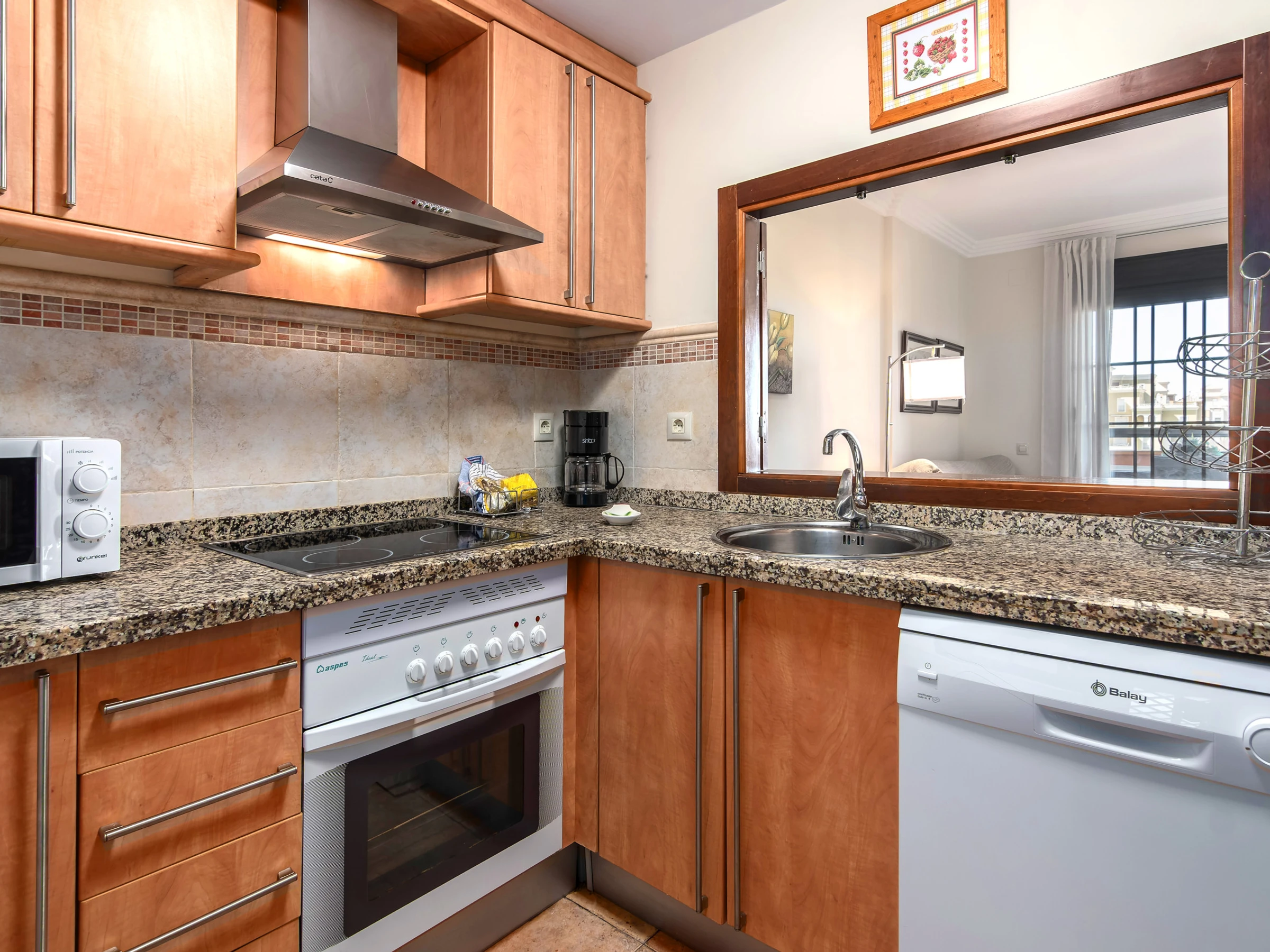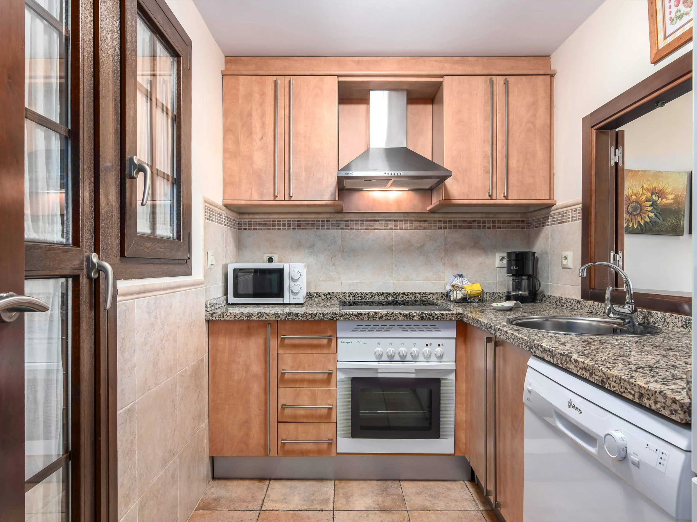 La cuisine indépendante, à vitrocéramique, est équipée avec réfrigérateur, micro-ondes, four, congélateur, lave-vaisselle, vaisselle/couverts, ustensiles/cuisine, cafetière, grille pain, bouilloire et presse-agrumes.