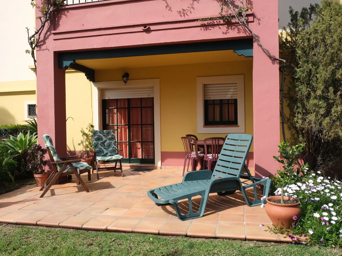 Logement de 70 m² confortable et totalement équipé, situé en première ligne de golf, avec vue sur le jardin et le champ de golf.