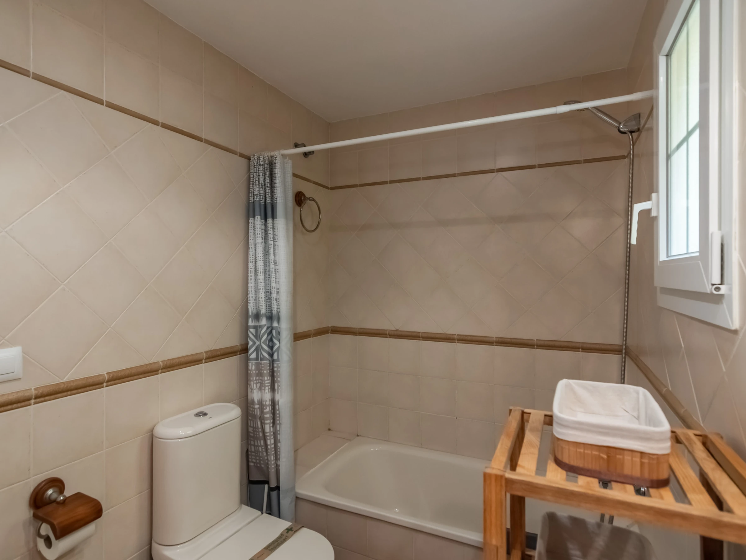 Elle dispose de ascenseur, jardin, mobilier de jardin, clôture, 27 m² de terrasse, lave-linge, fer à repasser, accès internet (wifi), sèche-cheveux, zone pour les enfants, terrain de tennis, piste de paddle, chauffage pompe à chaleur, climatisation dans tout le logement, piscine collective+infantile, parking couvert même bâtiment, 1 Télévision.