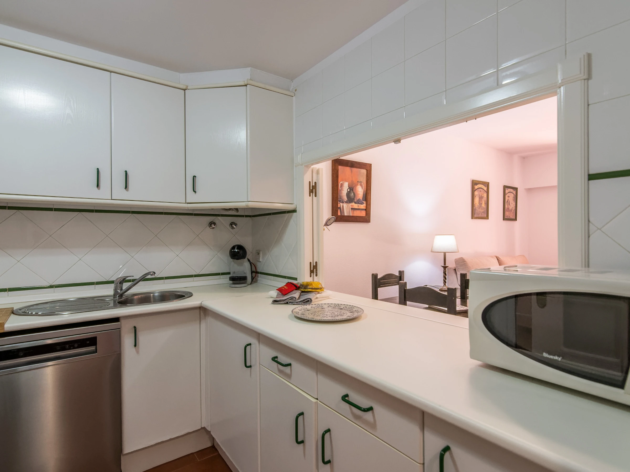 La cuisine indépendante, à vitrocéramique, est équipée avec réfrigérateur, micro-ondes, four, congélateur, lave-vaisselle, vaisselle/couverts, ustensiles/cuisine, cafetière, grille pain, bouilloire et presse-agrumes.
