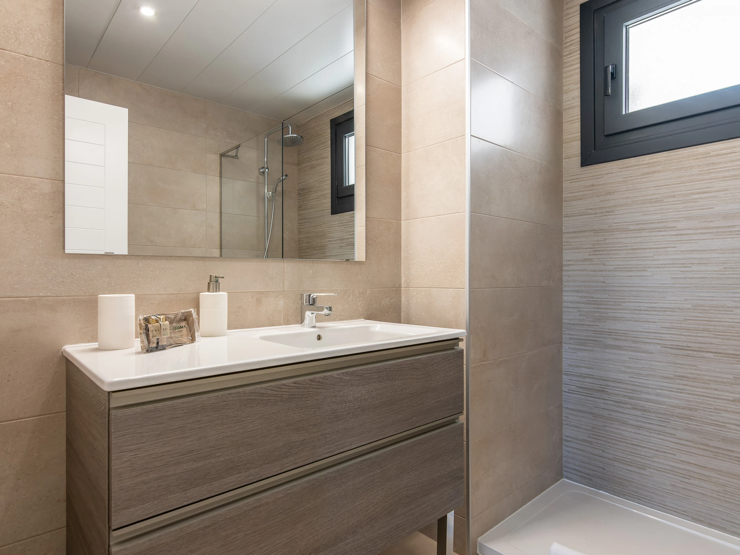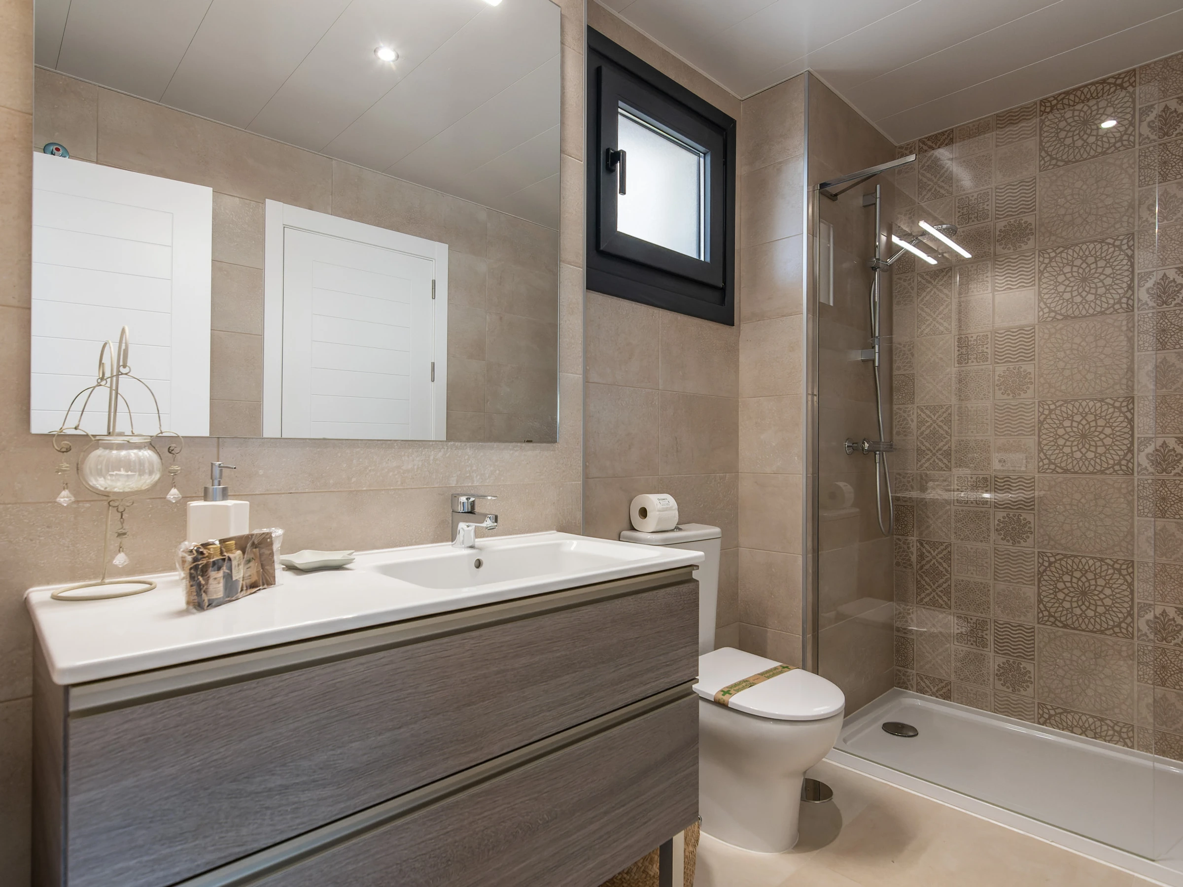 Elle dispose de ascenseur, 18 m² de terrasse, lave-linge, fer à repasser, accès internet (wifi), sèche-cheveux, zone pour les enfants, terrain de tennis, piste de paddle, chauffage pompe à chaleur, climatisation dans tout le logement, piscine collective+infantile, parking extérieur même bâtiment, 1 Télévision.