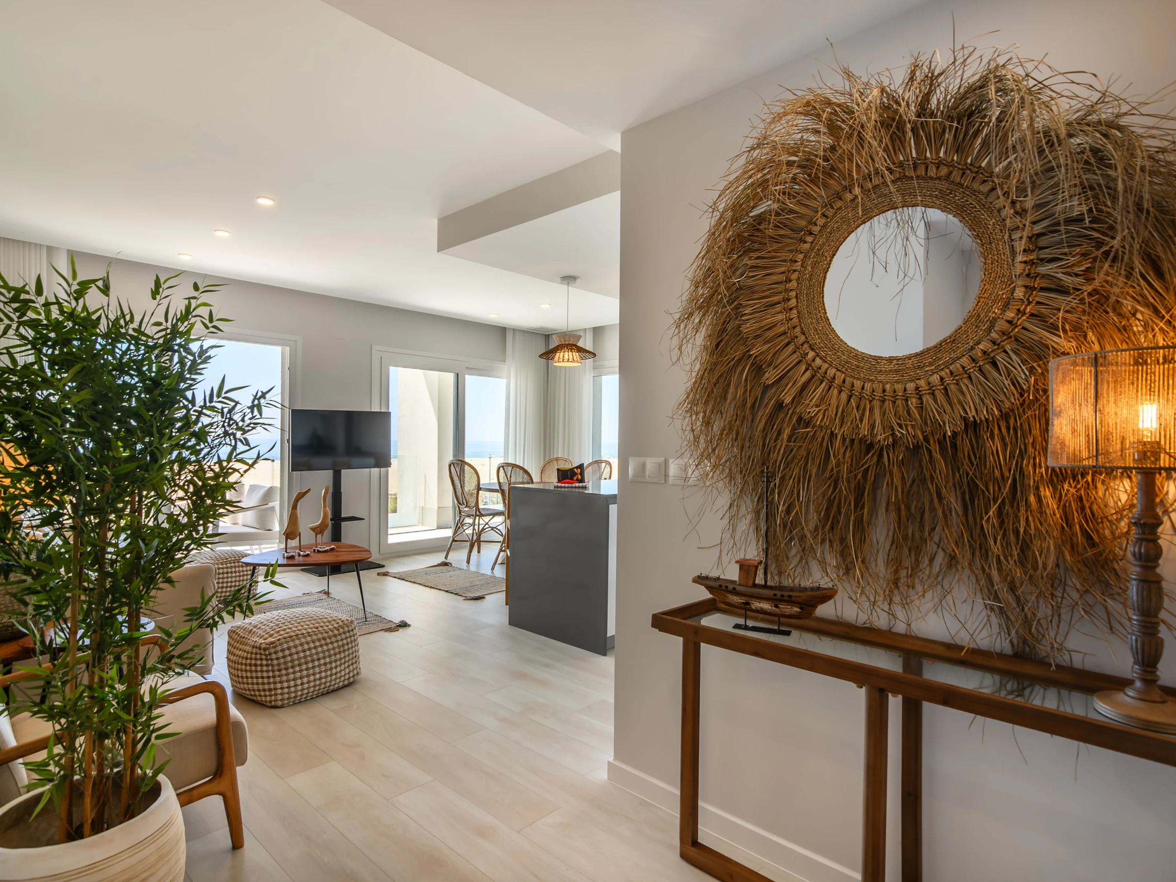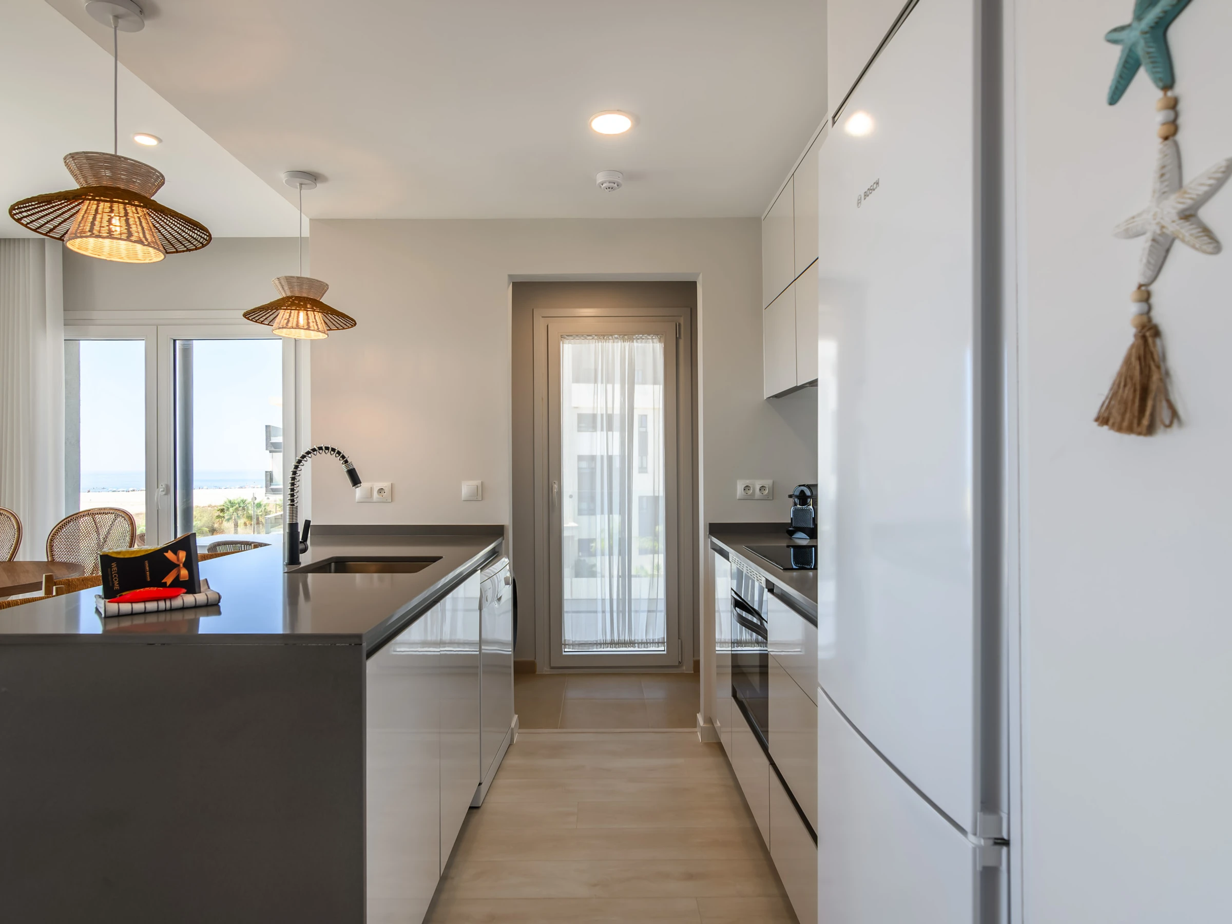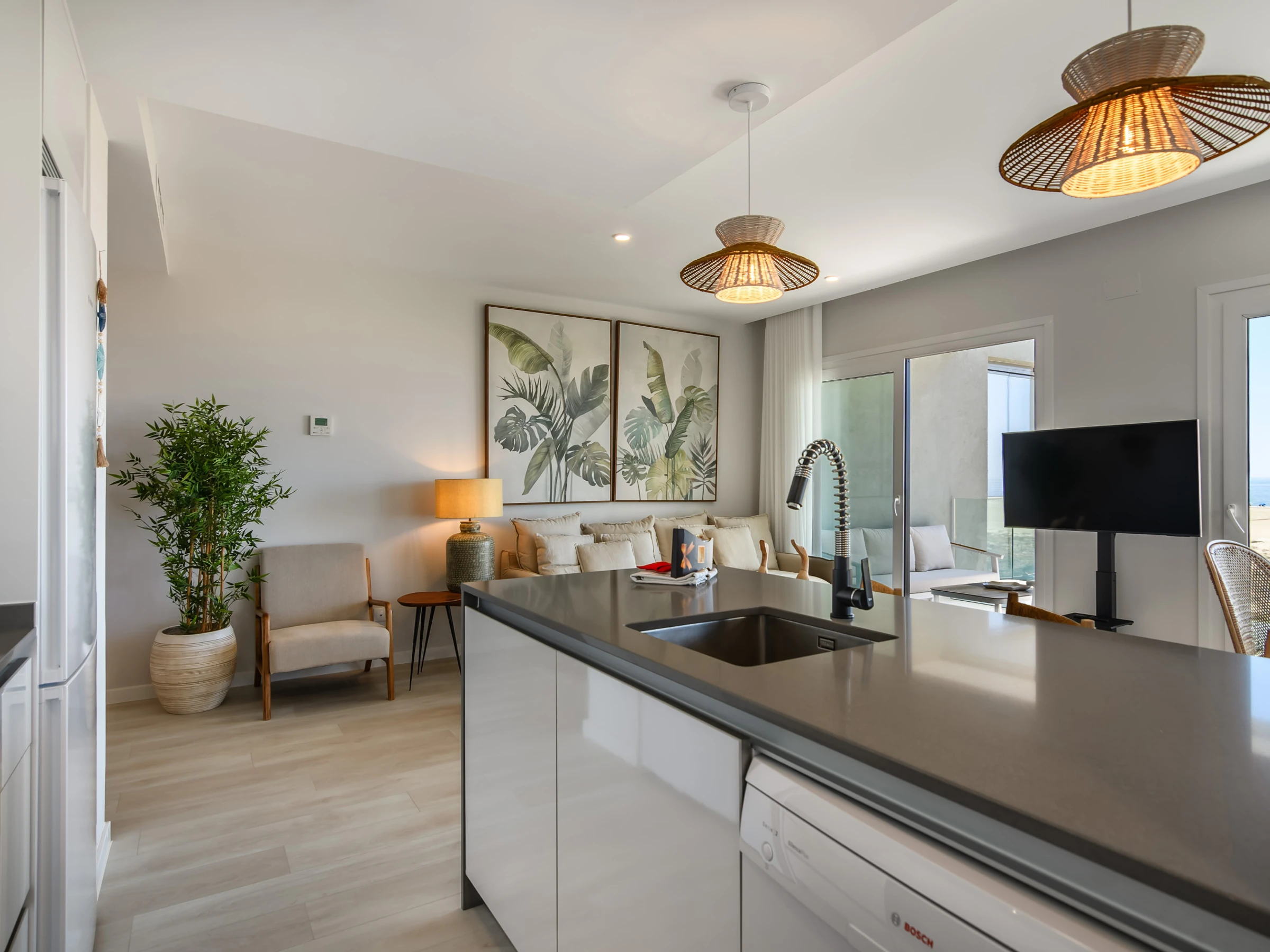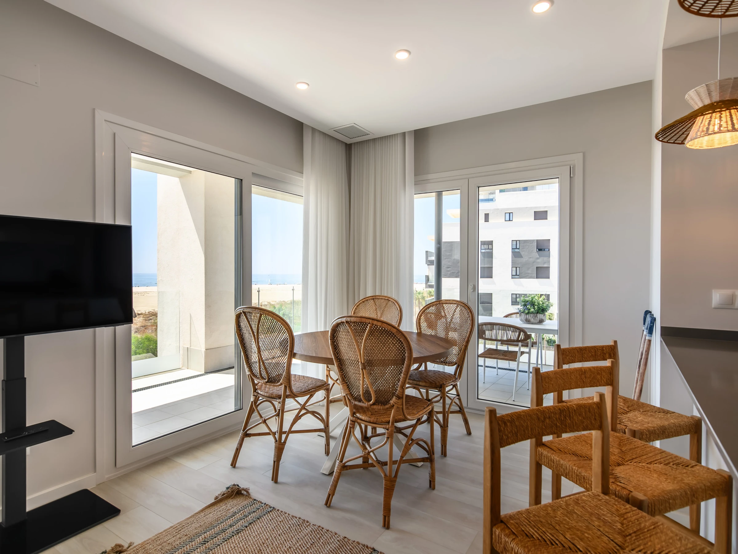 Logement de 79 m² meublé avec goût et moderne, situé en front de plage, avec vue sur la mer.
