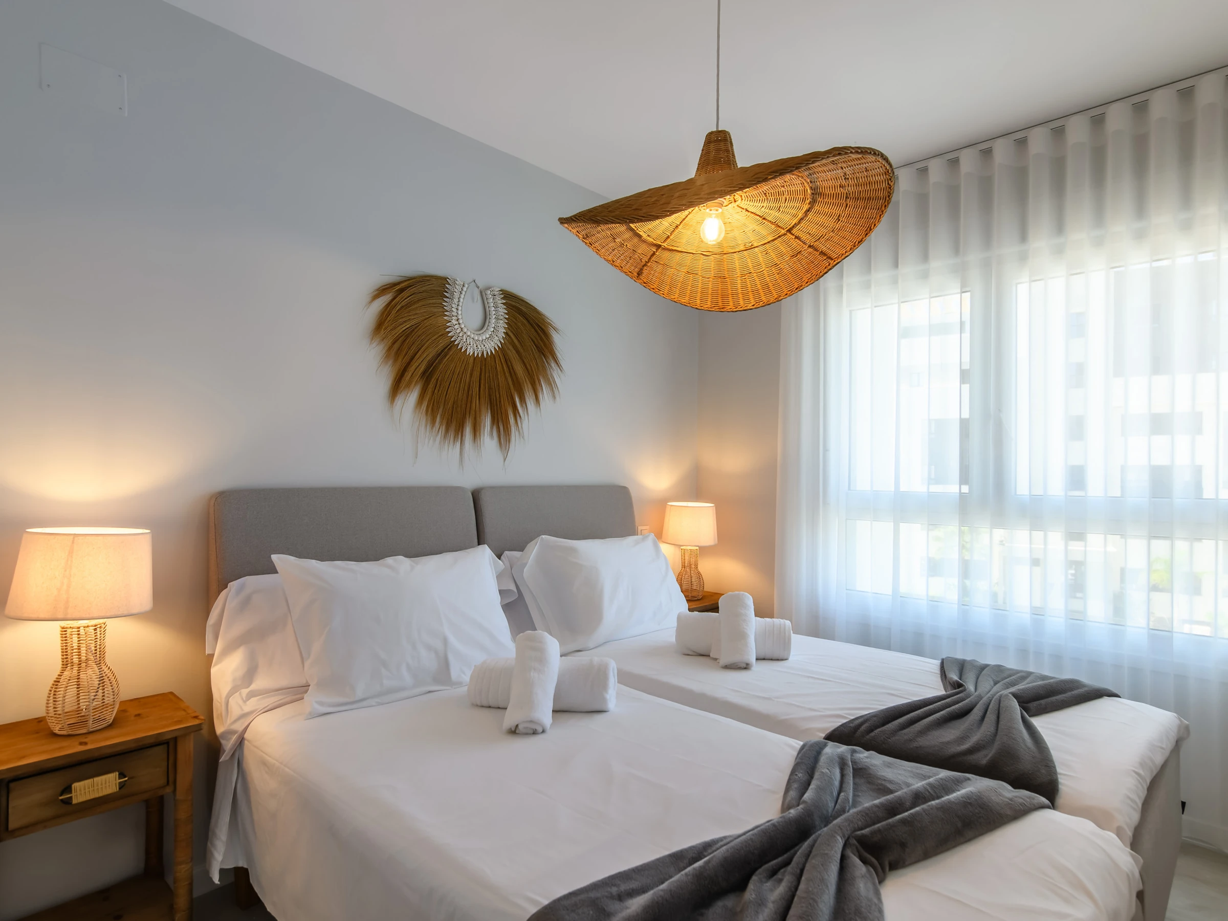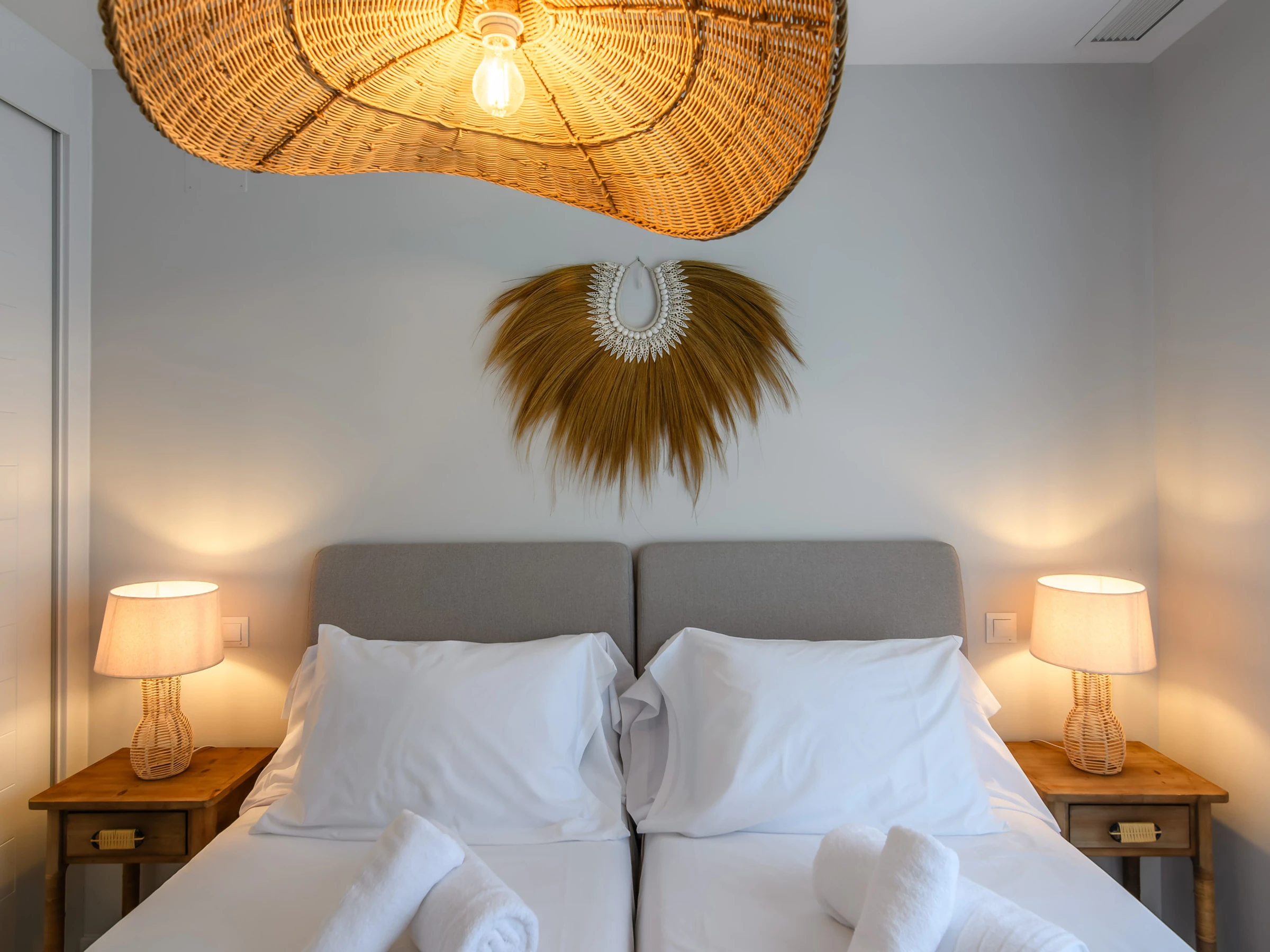 Elle dispose de ascenseur, mobilier de jardin, clôture, 35 m² de terrasse, lave-linge, fer à repasser, accès internet (wifi), sèche-cheveux, zone pour les enfants, chauffage pompe à chaleur, climatisation dans tout le logement, piscine collective+infantile, parking extérieur même bâtiment, 1 Télévision.