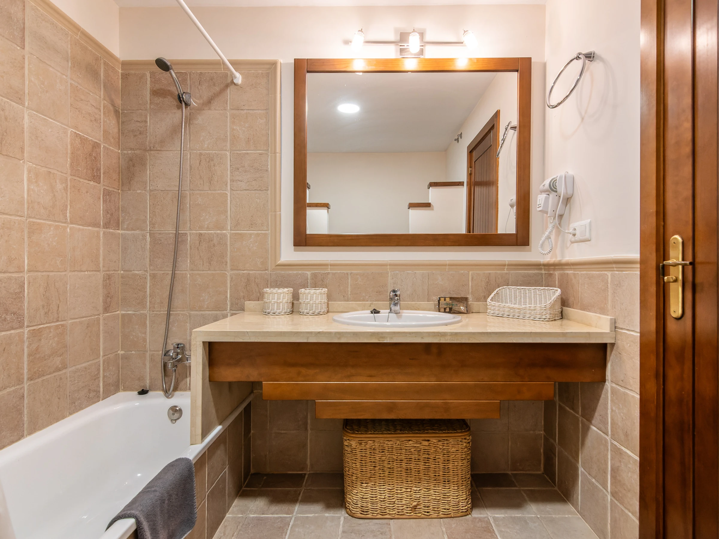 Elle dispose de ascenseur, jardin, mobilier de jardin, clôture, 36 m² de terrasse, lave-linge, fer à repasser, accès internet (wifi), sèche-cheveux, zone pour les enfants, terrain de tennis, piste de paddle, chauffage pompe à chaleur, climatisation dans tout le logement, piscine collective+infantile, parking extérieur même bâtiment, 1 Télévision.