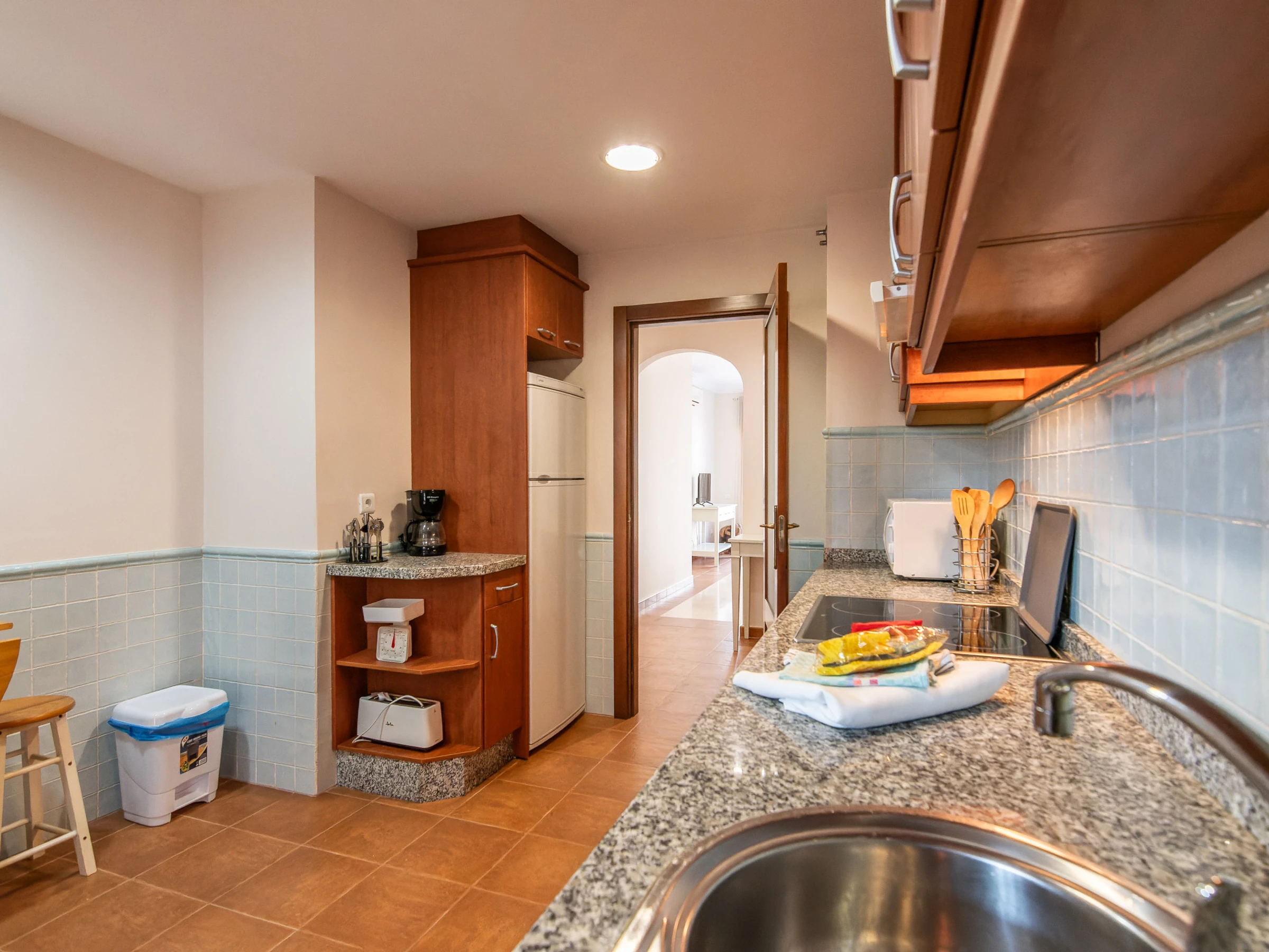 La cuisine indépendante, à vitrocéramique, est équipée avec réfrigérateur, micro-ondes, four, congélateur, lave-vaisselle, vaisselle/couverts, ustensiles/cuisine, cafetière, grille pain et presse-agrumes.