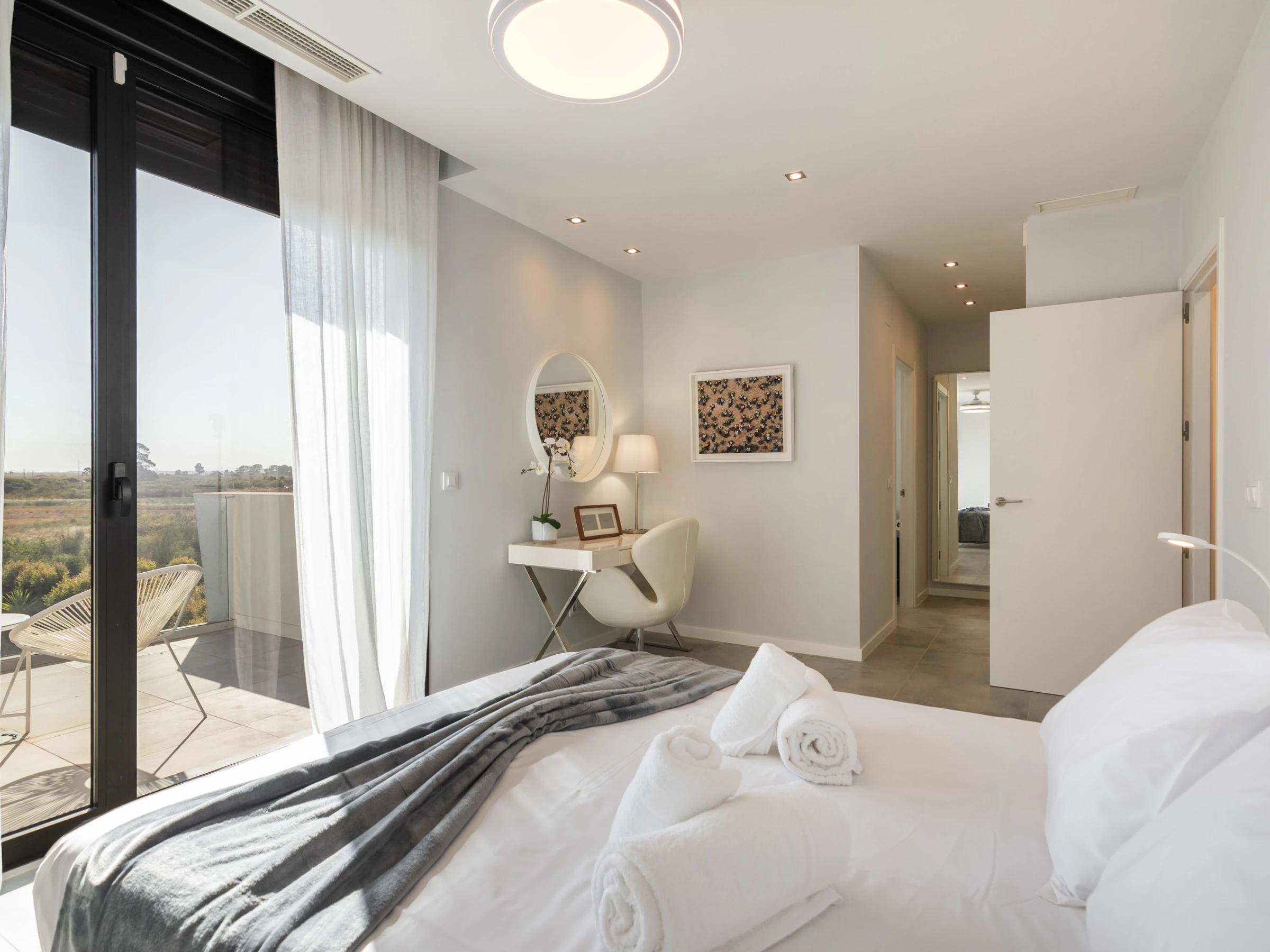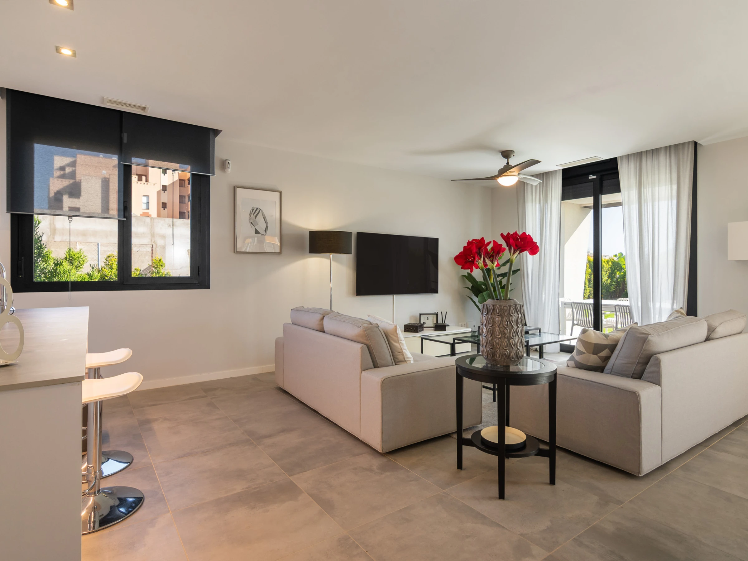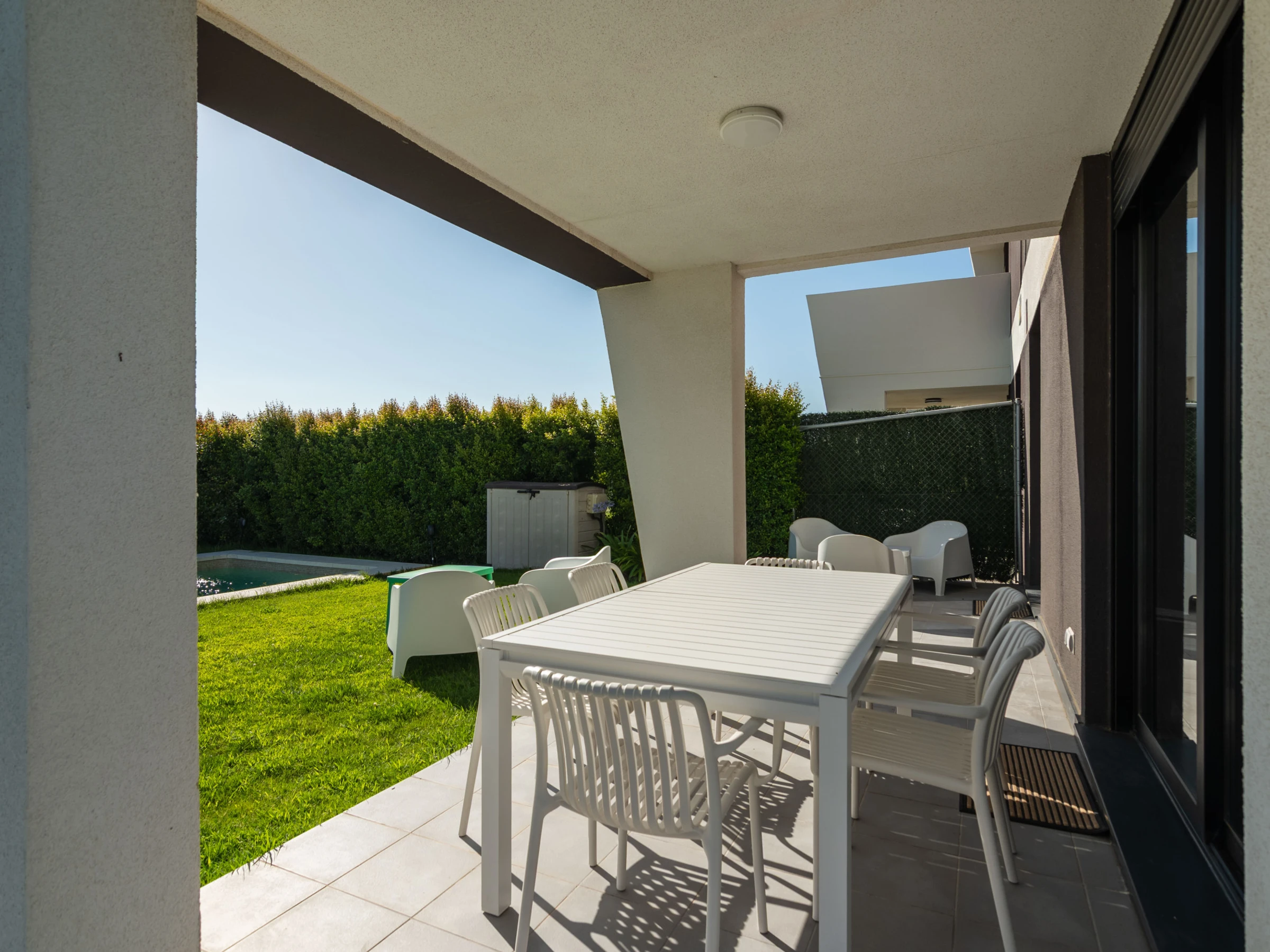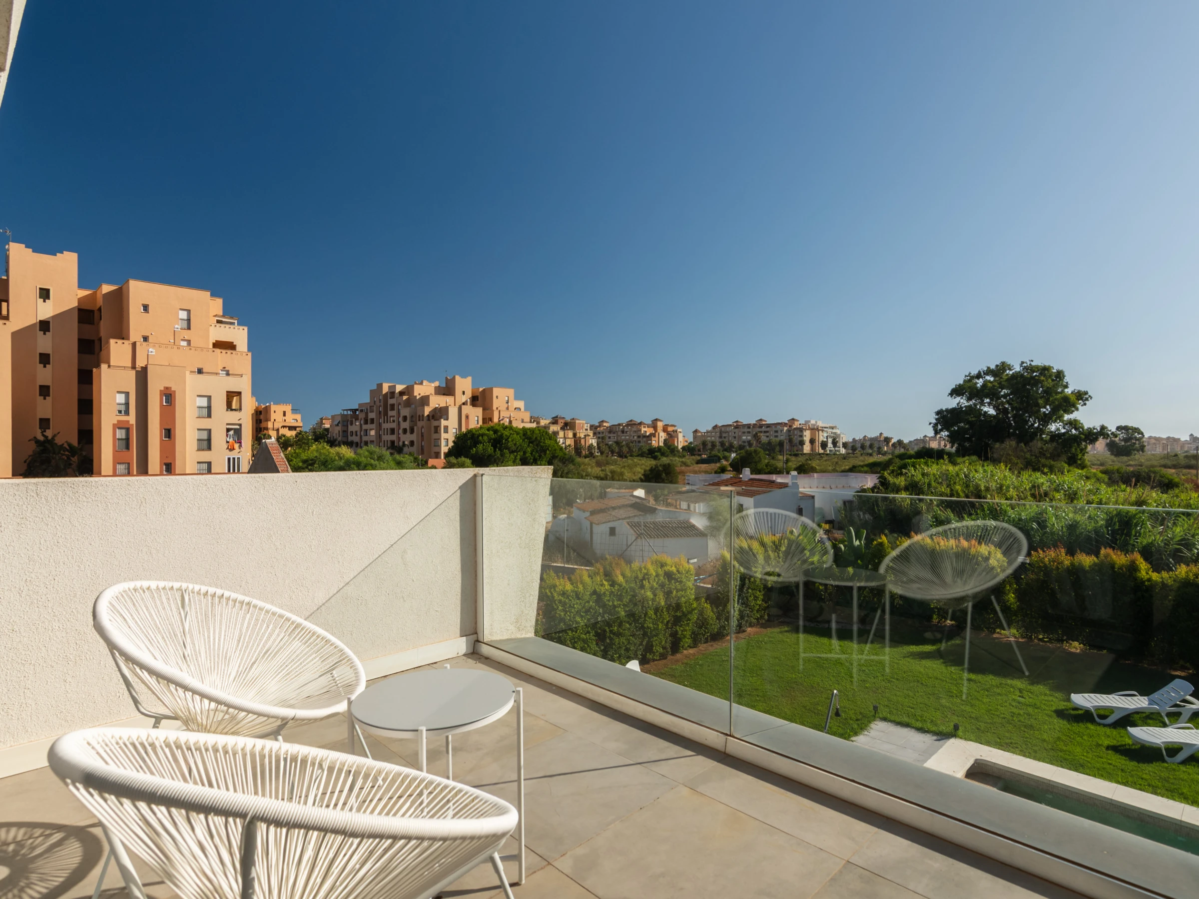 Elle dispose de jardin, mobilier de jardin, clôture, terrasse, lave-linge, fer à repasser, accès internet (wifi), sèche-cheveux, balcon, alarme, chauffage central, climatisation, piscine privée, parking extérieur même bâtiment, 1 ventilateur, 2 Télévisions.