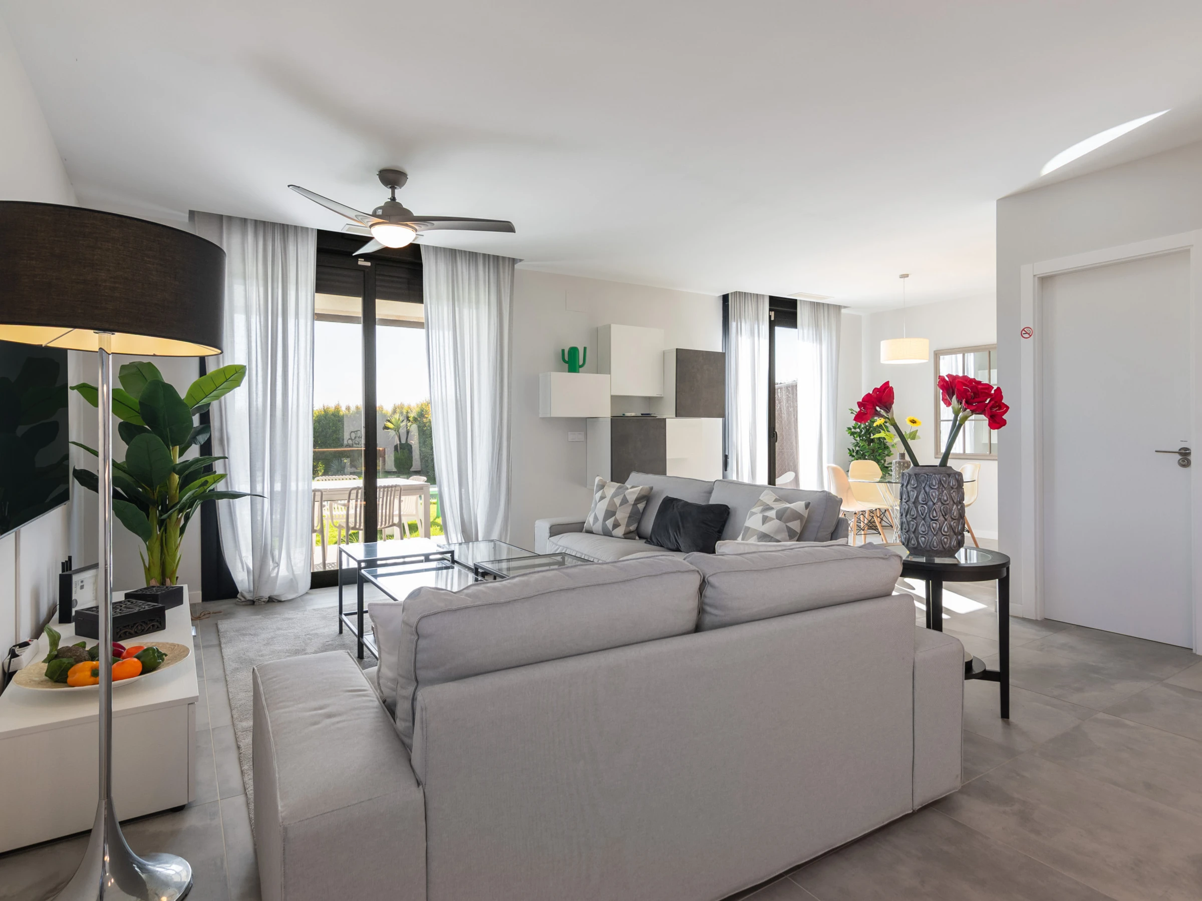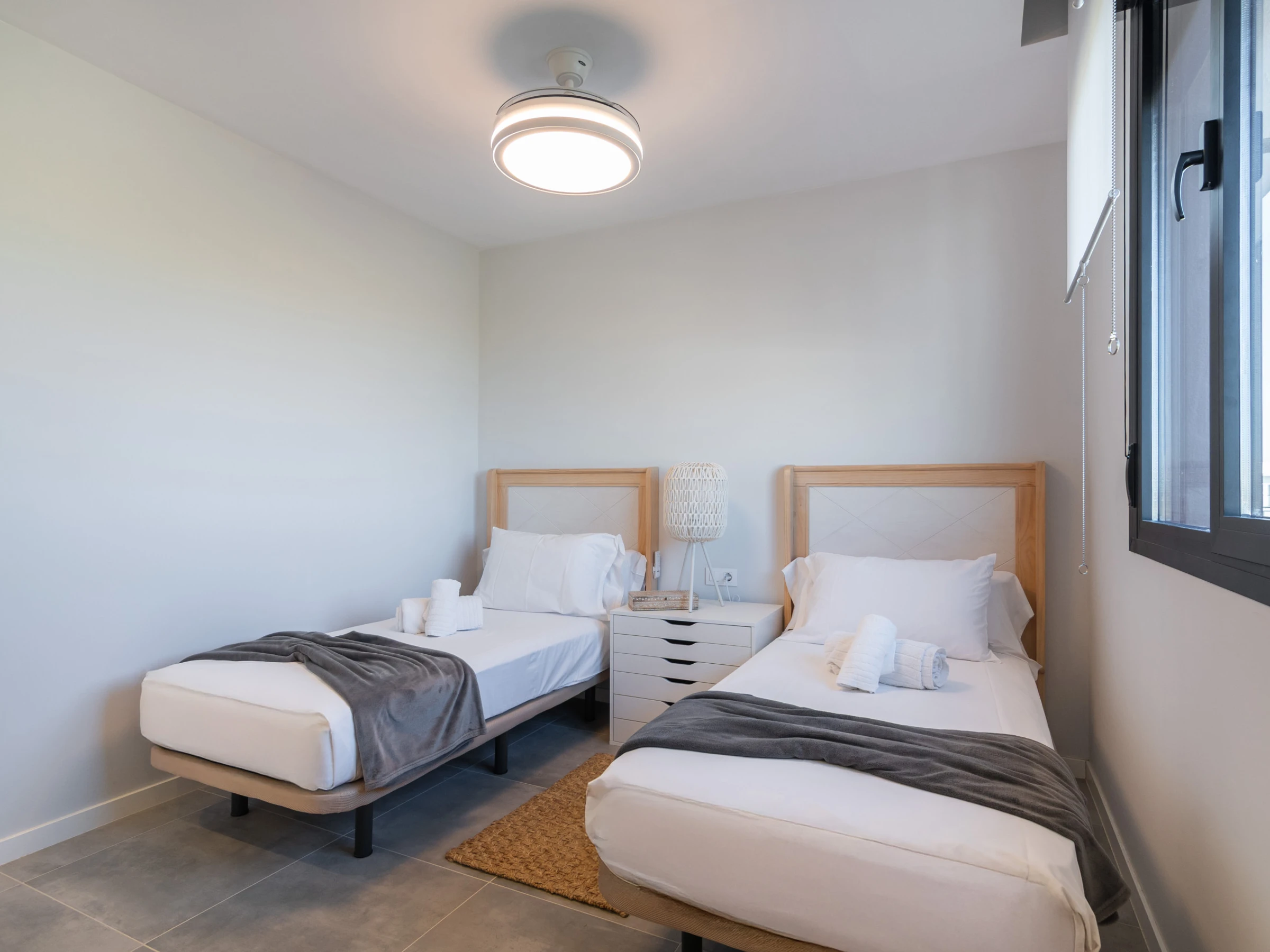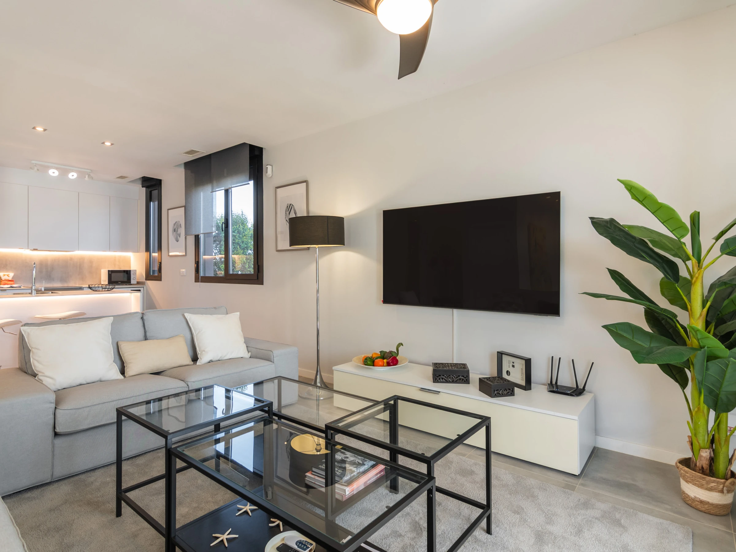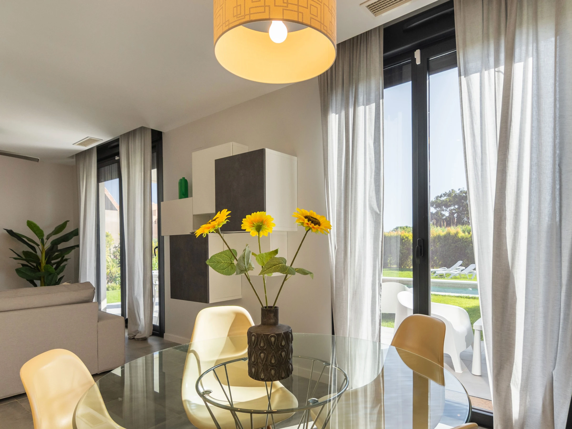 Elle dispose de jardin, mobilier de jardin, clôture, terrasse, lave-linge, fer à repasser, accès internet (wifi), sèche-cheveux, balcon, alarme, chauffage central, climatisation, piscine privée, parking extérieur même bâtiment, 1 ventilateur, 2 Télévisions.