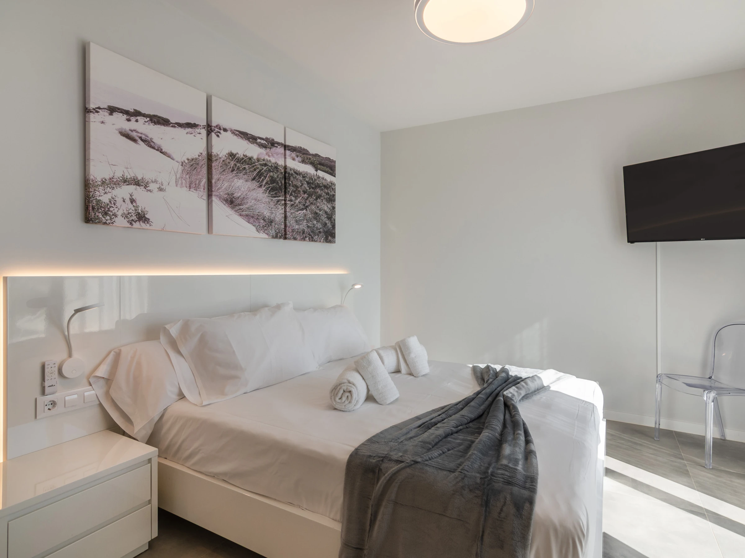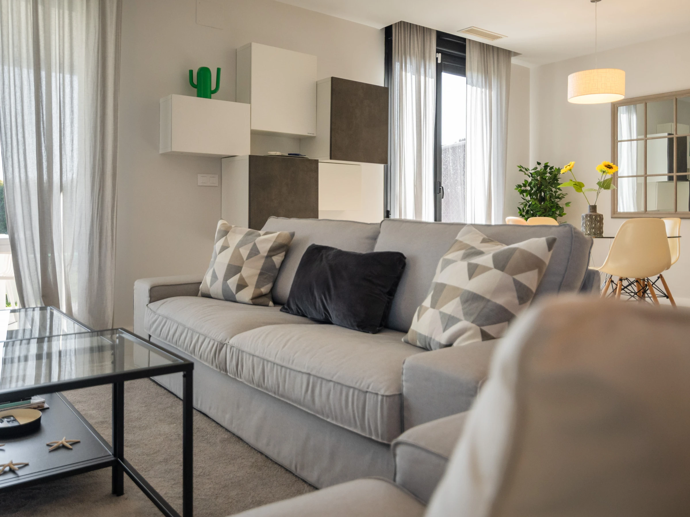 Logement de 135 m² meublé avec goût et totalement équipé, avec vue sur la mer et le jardin.